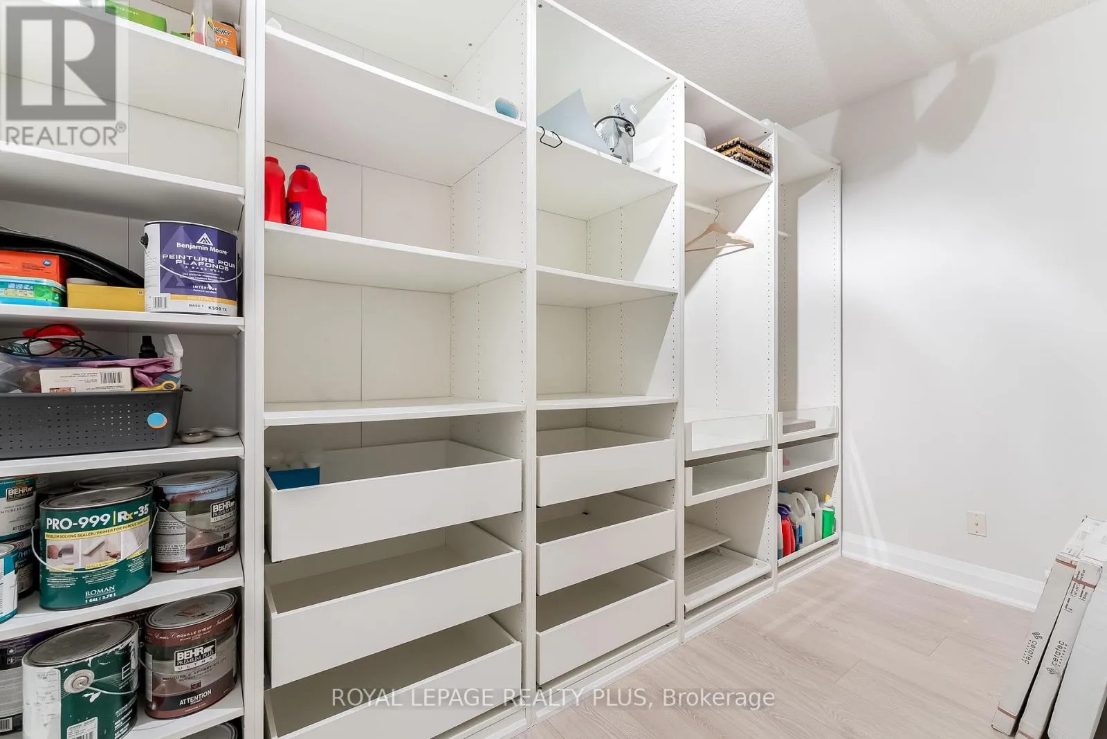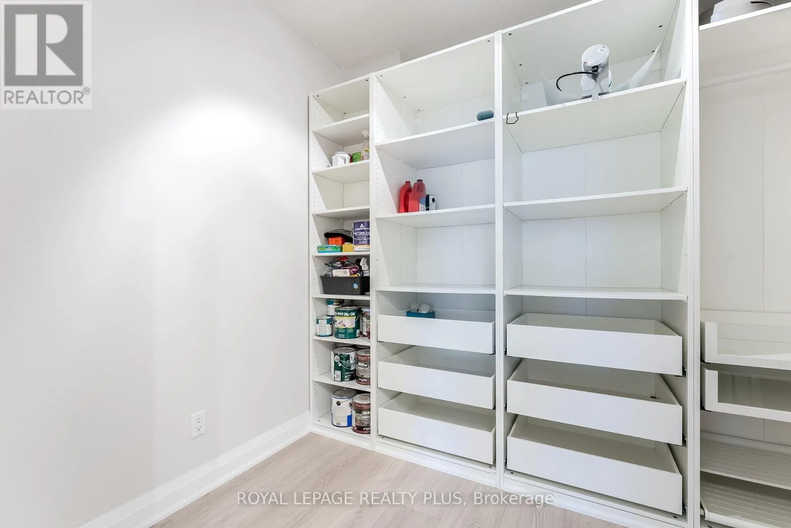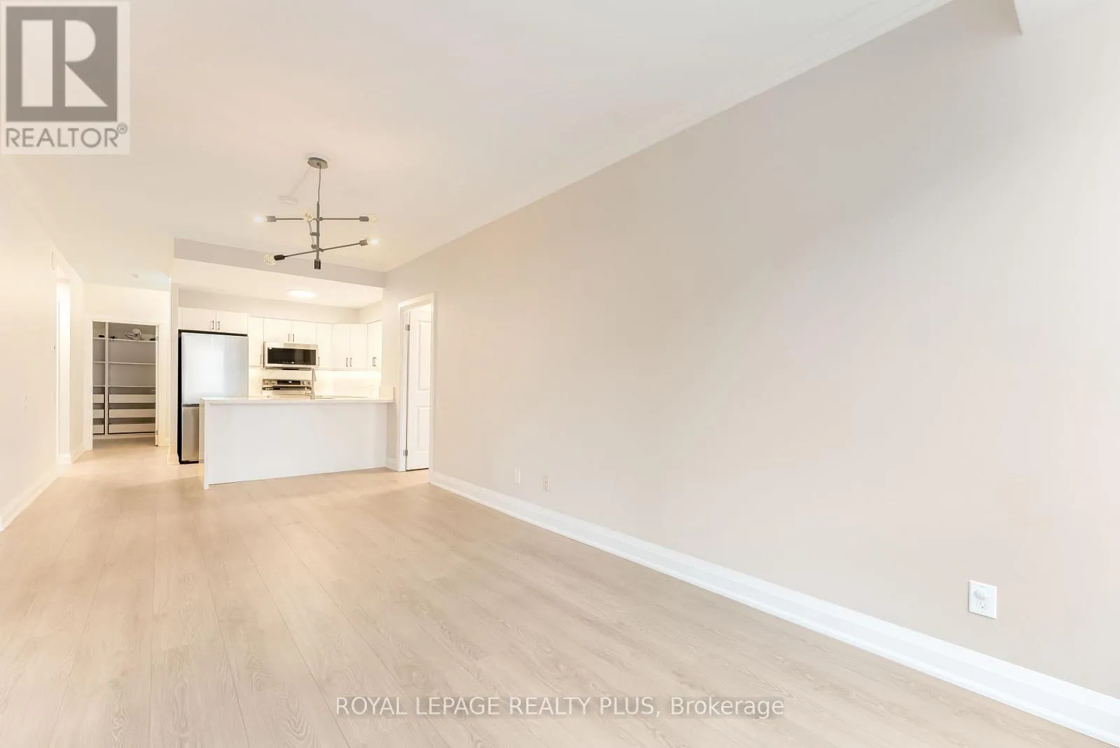 Cross Streets: Old Mill Road & Cornwall Road. ** Directions: Old Mill Rd & Cornwall Rd. Welcome to this exceptional fully renovated condo in the heart of prestigious Old Oakville. This highly sought-after unit has been completely updated from top to bottom, featuring a brand new custom kitchen with quartz countertops, sleek laminate flooring, and all-new stainless steel appliances. Both bathrooms have been fully renovated, including a luxurious primary ensuite with walk-in shower. An additional closet-style den or office space with built-in shelving offers exceptional convenience and organization. The second bedroom features frosted glass doors, providing enhanced privacy while maintaining a bright, modern aesthetic. Enjoy modern comfort with one parking space and a locker included. Ideally located just steps from the GO Station, downtown Oakville, and the waterfront. Building amenities include a pool, gym, party room, and outdoor BBQ area. Turnkey, sophisticated living in one of Oakville's most desirable neighbourhoods. (id:27476)
