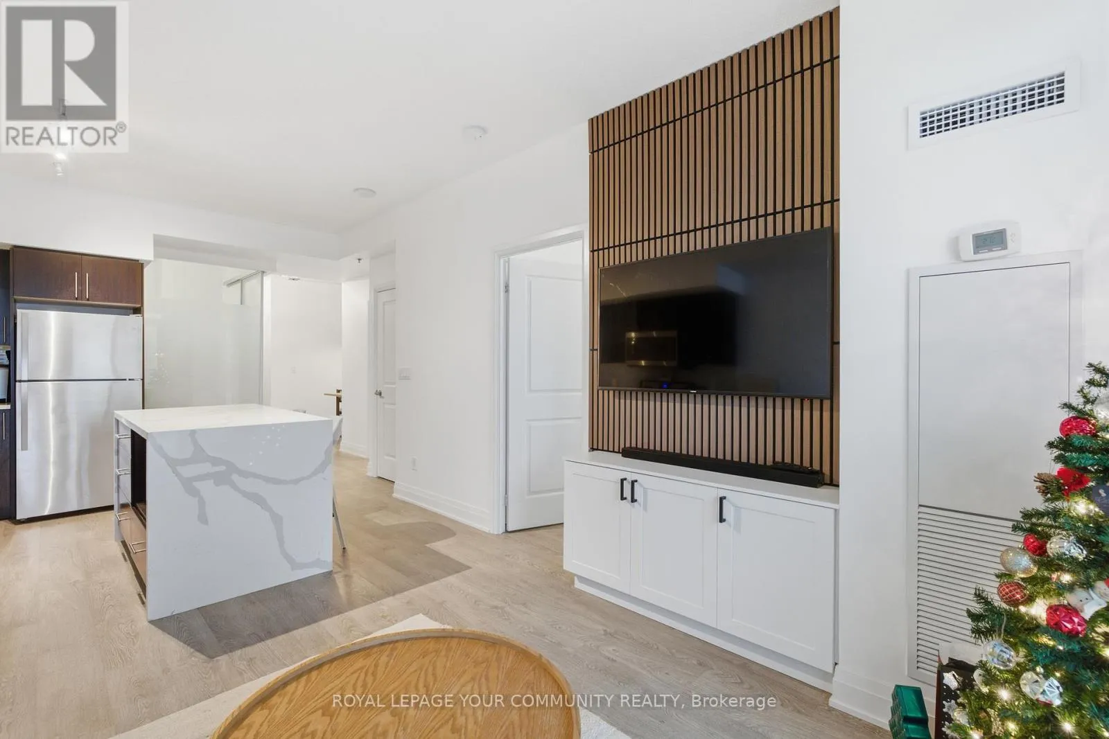Speers Rd/Kerr St This bright, modern suite showcases elevated finishes, highlighted by a waterfall-style kitchen island and thoughtfully designed accent walls that add warmth and character. The spacious layout offers two full bedrooms plus a sizeable den, and two full bathrooms providing excellent flexibility for your lifestyle. The second bedroom can function well as a home office, while the den is ideal for a dining area or versatile flex space. Located south of the QEW, close to the waterfront, less than five minutes from downtown Oakville, and a short distance to Oakville GO, this location is ideal for both commuters and those looking to stay connected to the Oakville core. Additional building amenities include: Bike Storage, Community BBQ, Rooftop Deck/Garden, Visitor Parking and Concierge! (id:27476)