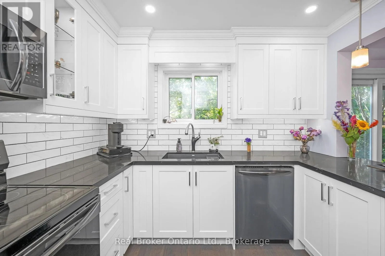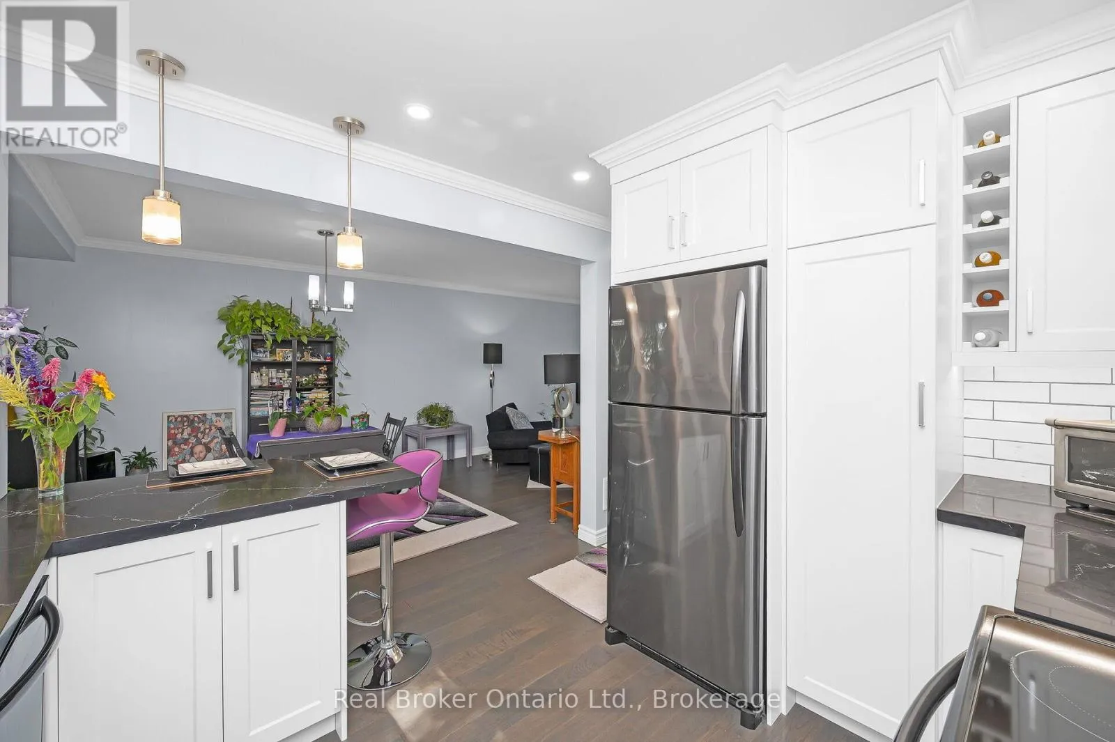 Towne Blvd / Ross lane Welcome to this charming 3-bedroom semi-detached home on a quiet, family-friendly street in sought-after River Oaks. Set on a rare 53 x 198 ft private lot. The main floor features a bright living and dining area with hardwood floors, and a renovated kitchen with granite countertops, a stylish backsplash, plenty of cabinetry, and a handy pull-out pantry. Beautiful patio doors lead to the expansive backyard-a true retreat with a gorgeous gazebo with waterproof curtains, and mature trees. Upstairs, you'll find 3 well-sized bedrooms and an updated 4-piece bathroom. The partially finished basement includes an updated powder room, laundry area, and lots of storage. Recent updates include new carpet (2025) on the stairs and upper level, plus a new front door (2025). The garage provides inside entry and a rear door with direct access to the backyard. Parking for up to 5 cars! Driveway made of aggregate concrete. This home is close to top-rated schools including River Oaks Public, White Oaks Secondary, Rotherglen, and several more, as well as parks, trails, and recreation centers. A perfect blend of convenience and community in a mature neighbourhood-don't miss this exceptional River Oaks gem! (id:27476)