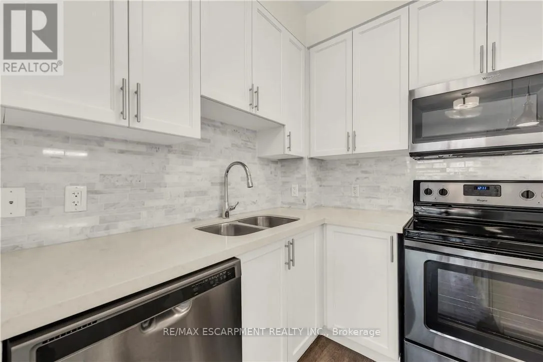 Dundas St CORNER UNIT! Fully upgraded, spacious and sun-filled 1 Bedroom 1 Bathroom condo comes with 1 underground parking spot, 1 storage locker, and a state of the art Geothermal heating and cooling system which keeps the hydro bills LOW!!! Featuring a 53 sqft private balcony, an open concept fully upgraded kitchen with Quartz countertops, stainless steel appliances, tiled backsplash, upgraded lighting, vinyl flooring, and a large chefs island with deep storage cabinets. The condo is complete with a spacious & bright bedroom with a walk-in closet, a fully upgraded 4-piece bathroom and in-suite laundry with full sized stackable washer & dryer. Enjoy the fabulous amenities including a modern fitness facility. party room and rooftop patio. Situated in the desirable West mount community in Oakville, with fabulous dining, shopping, schools and parks. Minutes away from the QEW/407, and a 15 minute commute to Mississauga, you don't want to miss this opportunity, book your showing today! (id:27476)