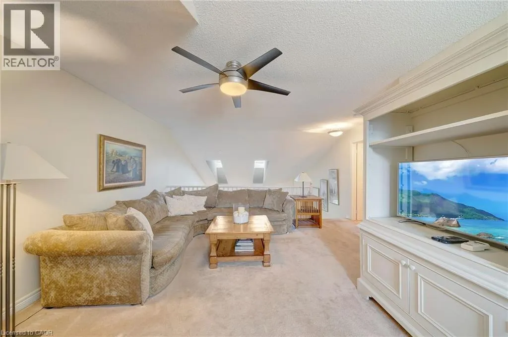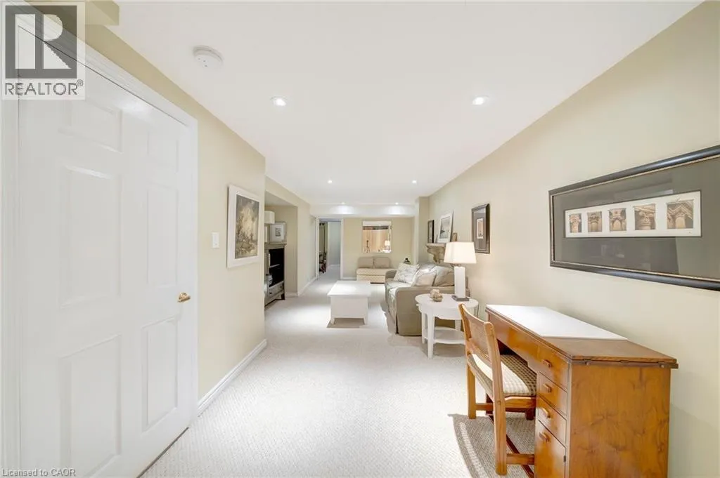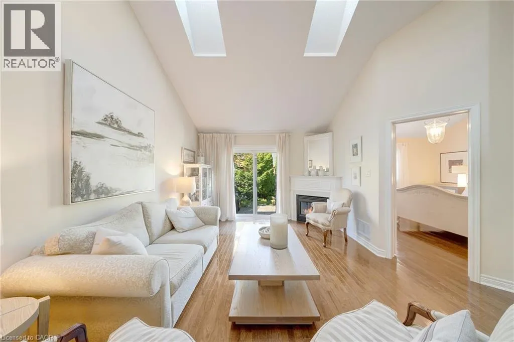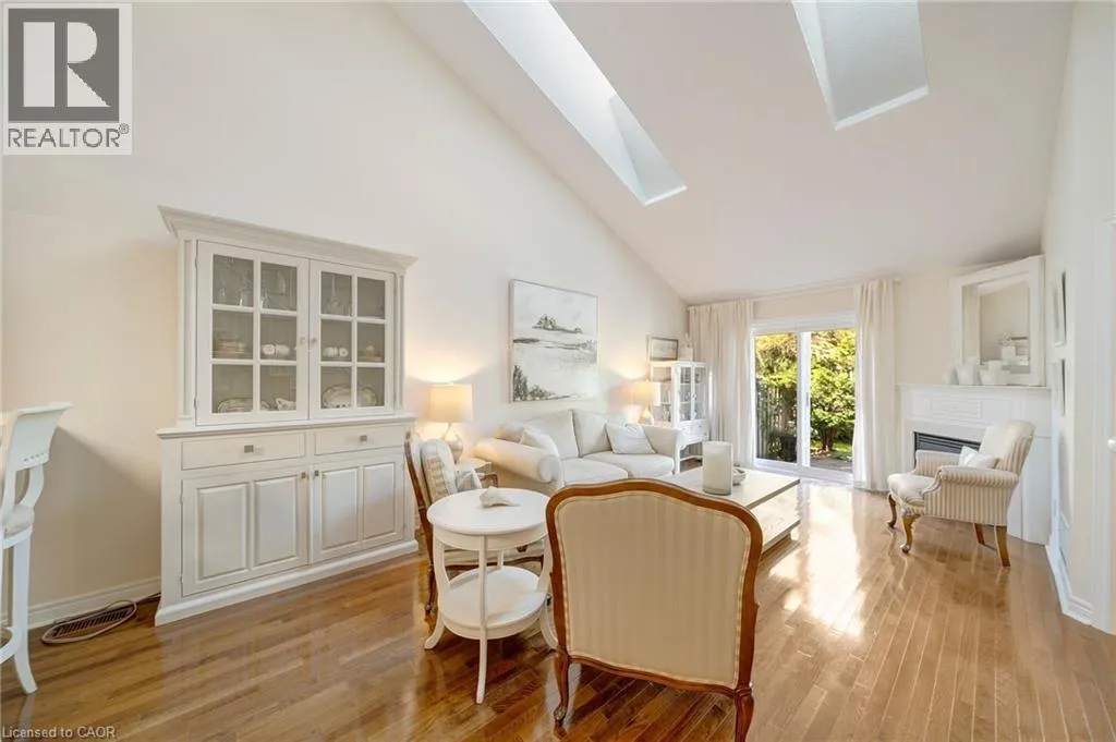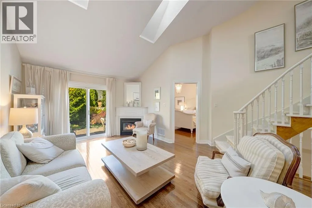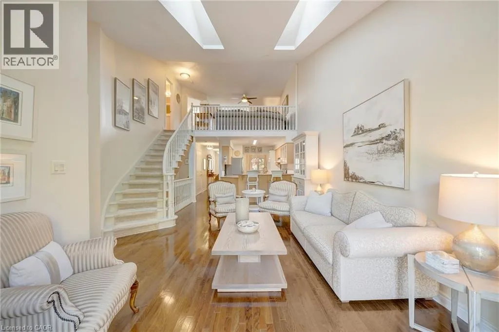 Dorval / Rebecca Thinking of Rightsizing, but want to keep the same level of luxury and close to everything location? Welcome to Barclay Square, an exclusive community of executive townhomes just steps away from Downtown Oakville! This impeccably maintained 3-bedroom unit features hardwood floors throughout and vaulted and stylized ceilings on the main floor which enhance the spacious ambiance, making a striking architectural statement. Oversized glass doors open up to a tranquil patio oasis with a gas line BBQ, perfect for Summer entertaining. Primary bedroom on the main floor with a 4pc ensuite bath. The second floor features a large, loft style sitting room overlooking the living room below and an additional bedroom and 4 pc bathroom. Over 2,100 sqft of finished living space, with a finished basement featuring an ample rec room and additional bedroom. This is the modern and comfortable Oakville lifestyle at its finest. Don't miss out on this highly sought after opportunity! (id:27476)