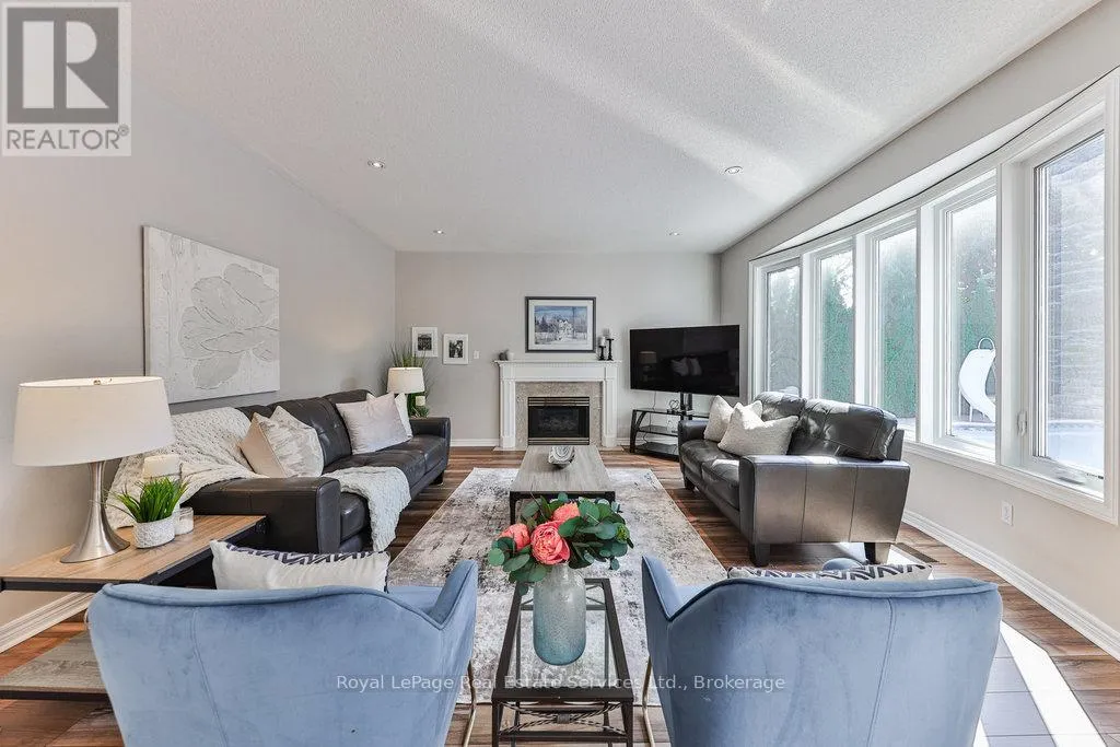 Upper Middle Road E/Grand Blvd/Valleybrook/Glenvista Nestled on one of Joshua Creek's most sought-after streets, this charming family home boasts 3,720 sq ft of elegant living space on a premium, mature pie-shaped lot adjacent to serene greenspace. The backyard is a private oasis featuring a luxurious spa-like ambiance with an inground pool, hot tub, expansive terrace and a charming cedar pool hut. Inside, you'll find a spacious great room, a main floor office and soaring vaulted ceilings. Recent updates include new stainless-steel appliances, a custom front door (2021), roof (2013), windows (2011), furnace (2017), garage doors (2022), pool pump (2025), pool heater (2025 demo model), pool liner (2018) and driveway (2021). Additional highlights include 9-foot ceilings on the main floor, hardwood flooring and two inviting fireplaces. Ideally situated near top-rated schools, parks, walking trails and transit. This is a must-see! (id:27476)