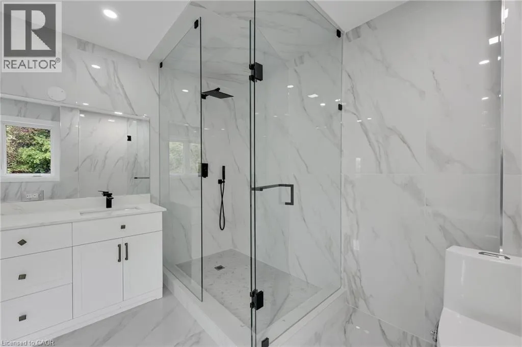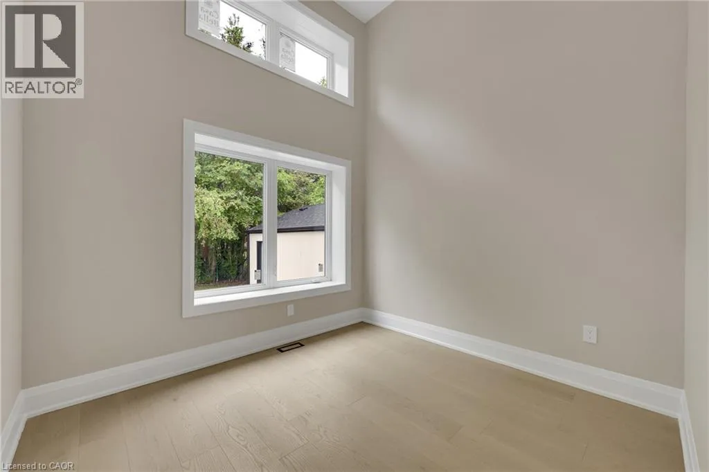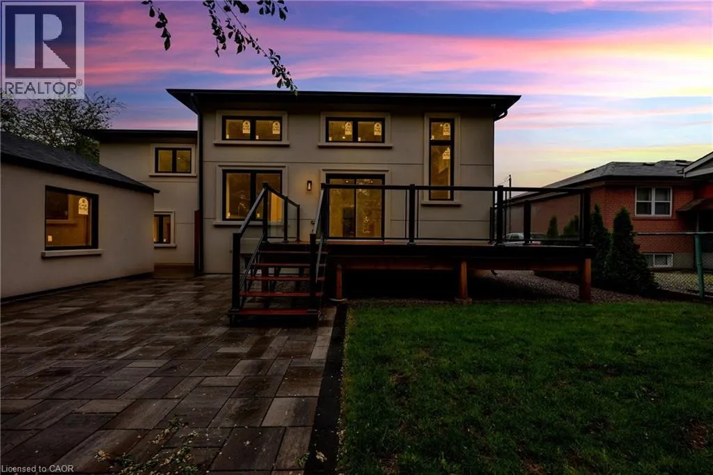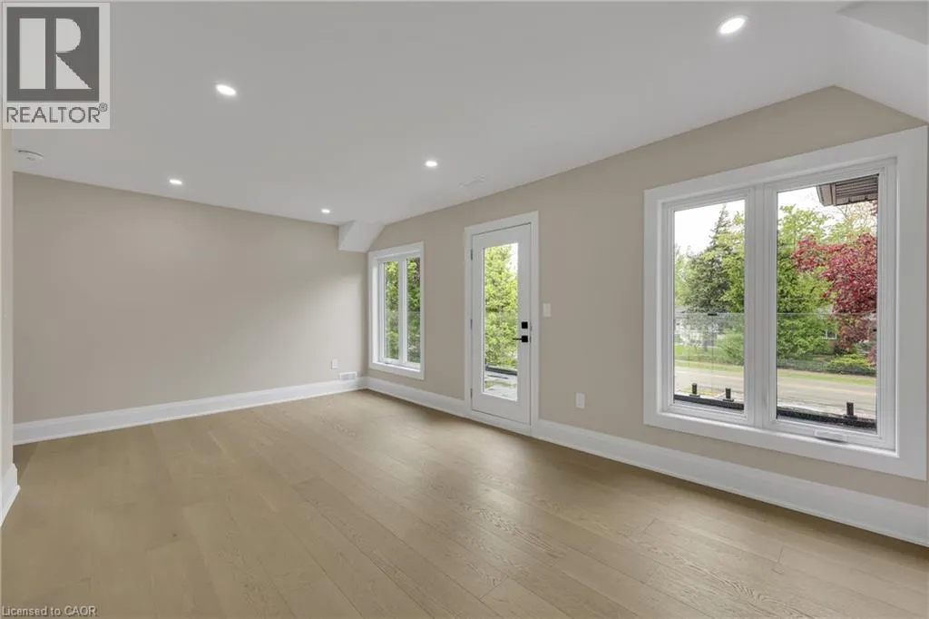 Third Line and Bridge Rd Never lived in after reconstruction home in the Bronte neighborhood available for immediate occupancy! Soaring 14' high ceiling throughout main floor, it has 4 bedrooms and 3 full washrooms on the main floor Primary BR on 2nd floor/ loft. Bright, well-ventilated open concept living, dining and kitchen area filled with abundant natural light throughout. The kitchen has built-in high-end Jenn Air appliances with white cabinets, quartz countertops, large center island, huge pantry cabinets and a computer niche. Upstairs has the large primary bedroom with a 5-piece ensuite, a large walk-in closet and a rare find walkout to balcony feature with glass enclosure, overlooking front yard. Extension of family room with Huge deck in back yard with glass railing, perfect for outdoor entertainment and relaxation. Additional well insulated storage/workshop shed in back yard perfect for a DIY/Hobby/Handyman. Close to QE community park and cultural center, schools, Bronte harbor and minutes away to Bronte GO and Highways. (id:27476)
