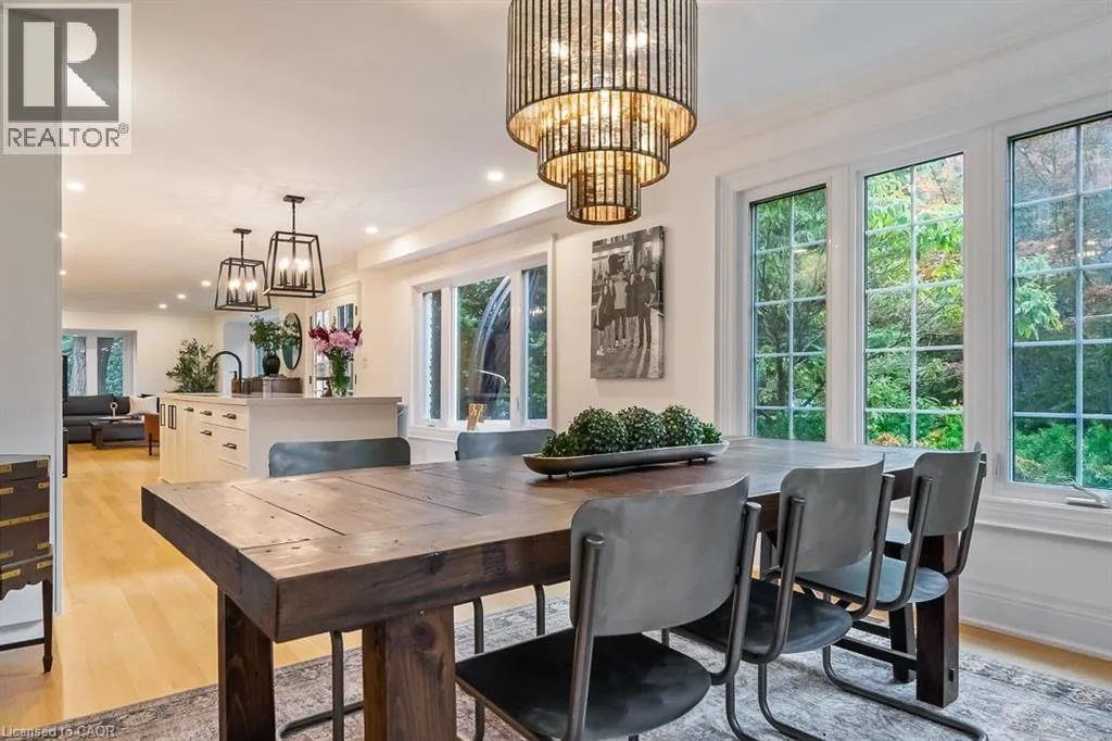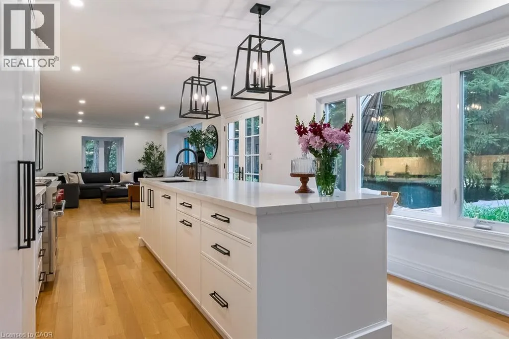 Lakeshore Rd E & Cavendish CT Welcome to 138 Cavendish Court, nestled in Oakville's coveted Morrison neighbourhood. Set on a private 0.42-acre lot at the end of a quiet cul-de-sac, this extensively updated residence combines refined style with everyday livability. Featuring 4+1 bedrooms, a 3-car garage, and nearly 4,500 sq. ft. of finished space, it represents a rare opportunity in this prestigious community. Thoughtfully renovated in 2019, the main level showcases a bright, free-flowing layout with natural oak flooring and oversized windows that flood the home with natural light. The Living Room with a gas fireplace feature wall opens to the Dining Room for formal or casual gathering. Ideal for culinary enthusiasts and entertainers alike, the designer kitchen showcases a beautiful quartz island, Wolf, Miele, and Sub-Zero appliances, along with custom cabinetry. The adjacent family room, framed by nearly full-height windows and a cozy built-in bench, overlooks the landscaped backyard and pool area. A private office, stylish powder room, and functional mudroom complete this floor. Upstairs, the primary retreat features a spa-inspired 5-piece ensuite and spacious walk-in closet. Three additional bedrooms and two updated bathrooms (one bedroom with a private ensuite) provide convenience for families' busy lives. The finished lower level offers exceptional versatility, with an industrial design flair including a 5th bedroom, 3-piece bath, recreation/media room, and billiards/fitness space. Outdoors, enjoy your own backyard haven featuring a luxurious saltwater lounge pool with integrated spa, surrounded by professionally designed landscaping completed in 2020. Mature trees provide ultimate privacy, bringing a Muskoka feel to the city. Ideally located near the lake, parks, shopping, top-rated schools, and only minutes to downtown Oakville, the GO Train, and highways, this home delivers an unmatched blend of luxury and privacy for family living. (id:27476)