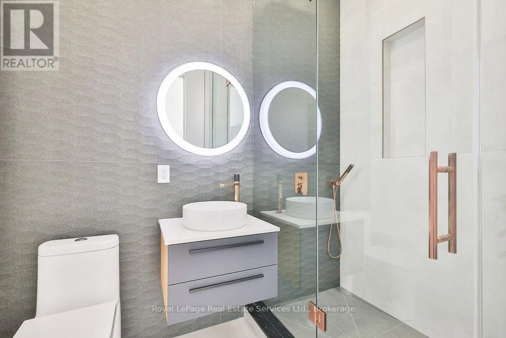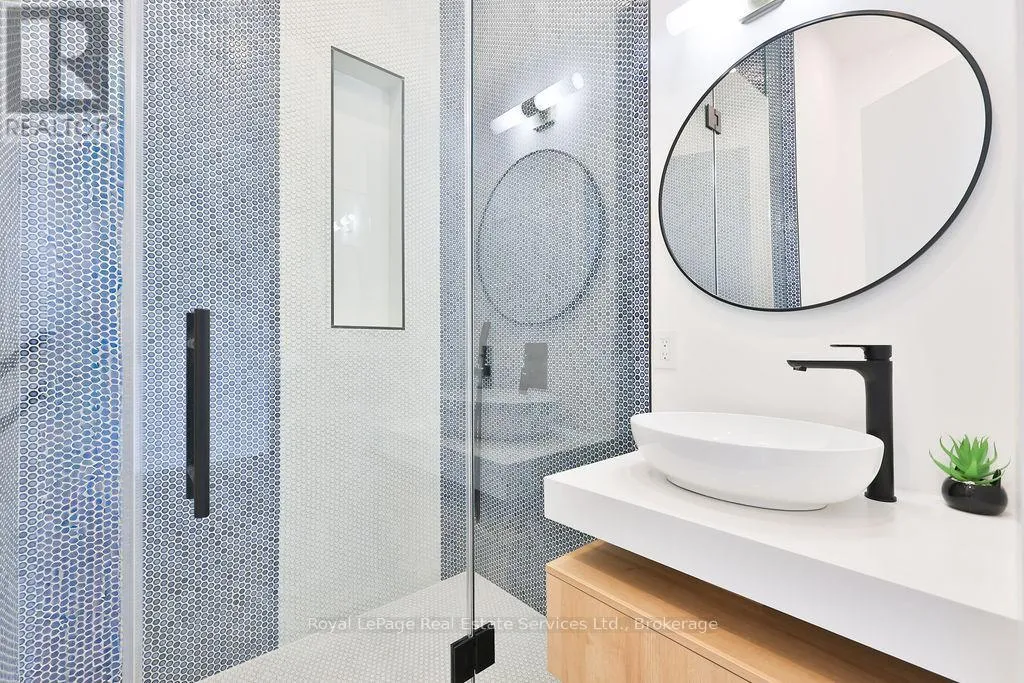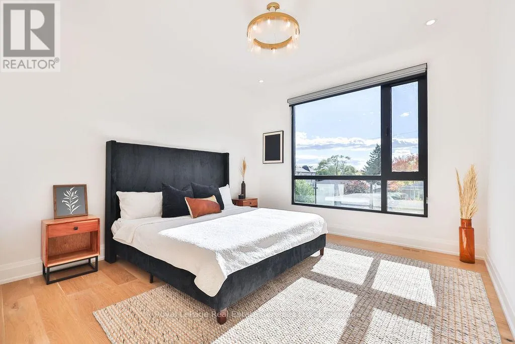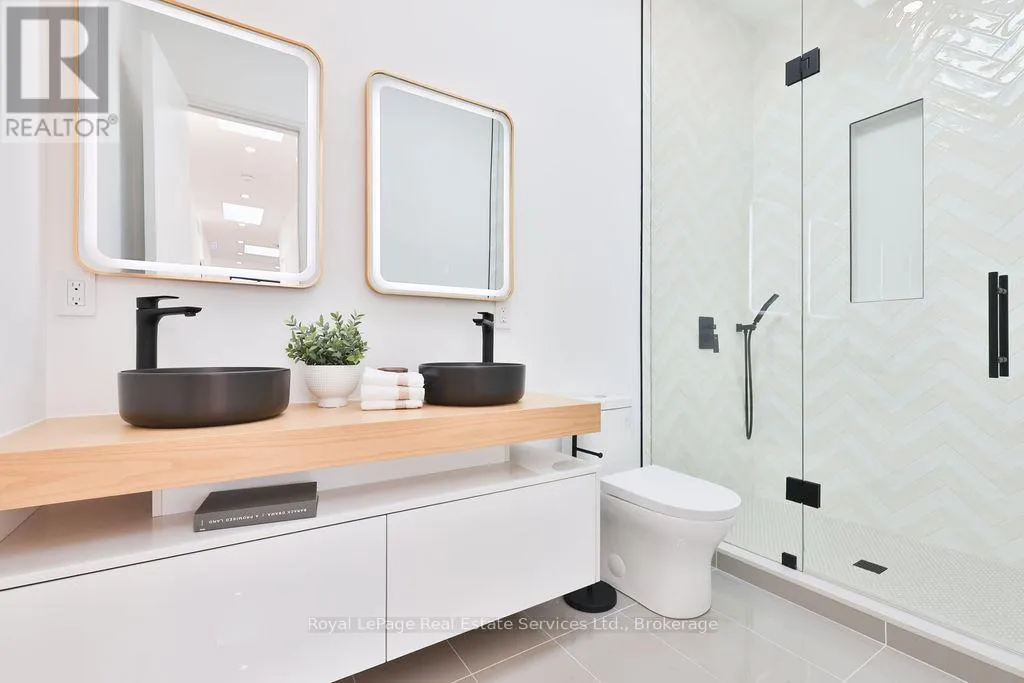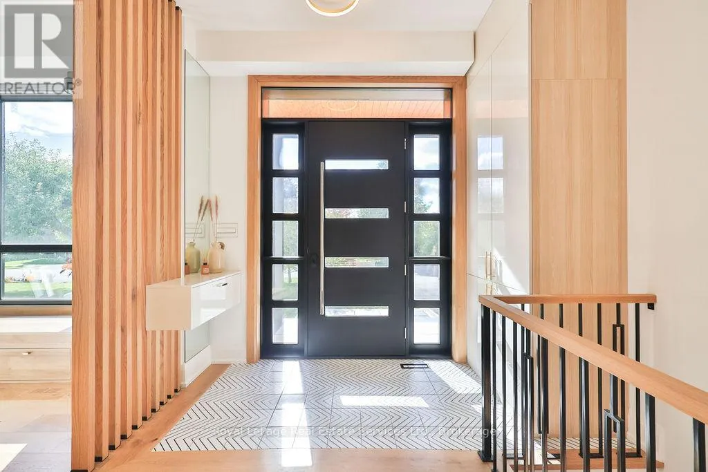 Cross Streets: Rebecca St and Stanfield Dr. ** Directions: Rebecca St to Stanfield Dr to Sandlewood Rd. Spectacular custom home, combining West-coast & Scandinavian influences. Over 3300 sqft above grade, light-filled 5 bed, 6 bath with 10' ceilings and salt water pool, set on a quiet street in West Oakville. Appointed with high end & stylish materials throughout including HOPO aluminum windows, doors & steel screens, wide plank hardwood, custom tile work, and upscale modern light fixtures. Impressive white stone + aluminum panel exterior. Custom front door leads to expansive open concept main floor. Living room features gas fireplace set into salvaged looking wooden beams, massive oversized windows and large seating bench with built-in storage. Designer kitchen includes oversized island with quartz counters & integrated Miele appliances. Kitchen & dining room walk out to back deck & pool. Glass walled office includes floor to ceiling windows, custom B/I cabinets & feature ceiling. Floating staircase with aluminum railing leads to the upper level with 10' ceilings, hallway skylights & Polaris chandelier. Primary bedroom features Juliette balcony, accent wall with custom wood paneling, walk-in closet with extensive organizers and ensuite. 5pc primary ensuite with double floating vanity, walk-in glass shower with rain-head & Victoria & Albert soaker tub. Large 2nd & 3rd bedrooms with double closets with extensive organizers, and oversized windows. Main bath features wood accented double vanity, walk-in glass shower & skylight. 4th bed boasts ensuite bath, walk-in closet and walk out to enormous balcony with privacy & shade screens. 5th bedroom features ensuite, Juliette balcony and double closet. Basement includes bar with built-in storage & wine fridge, electric fireplace, large windows, walkout & bathroom. Heated salt water pool (liner & heater 2022), surrounded by stone patio & overlooked by composite back deck with privacy screen and aluminum railings. Double car garage with epoxy floors. Close proximity to lovely Downtown Bronte & Lake, Go train, Schools & Parks. (id:27476)