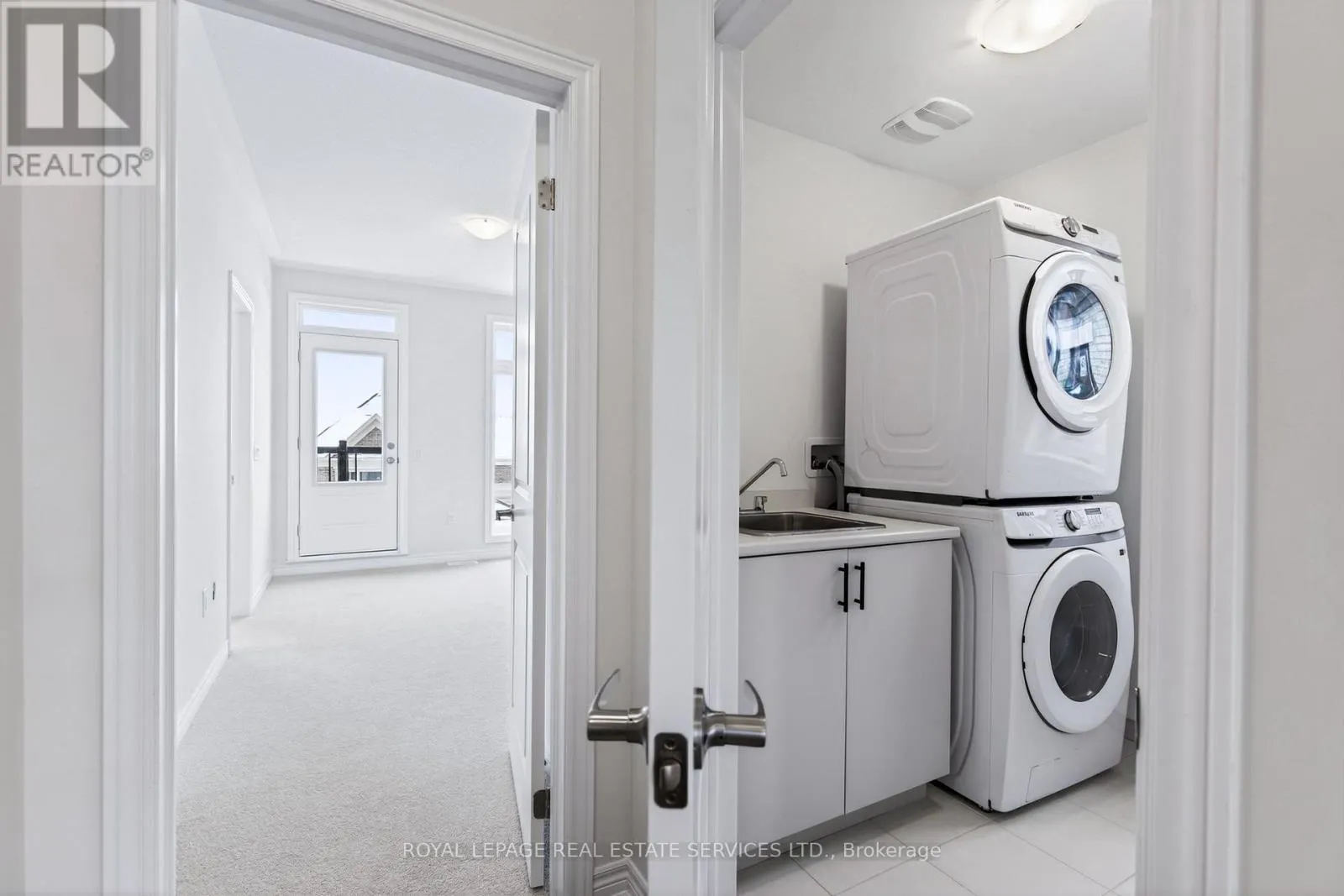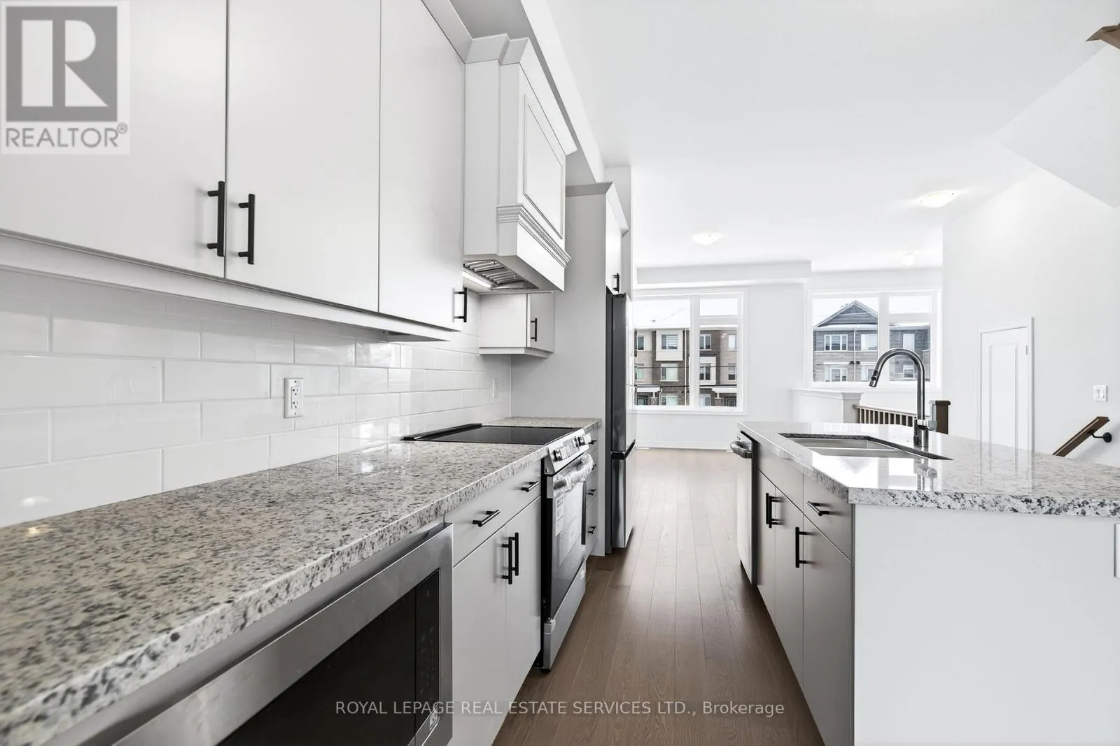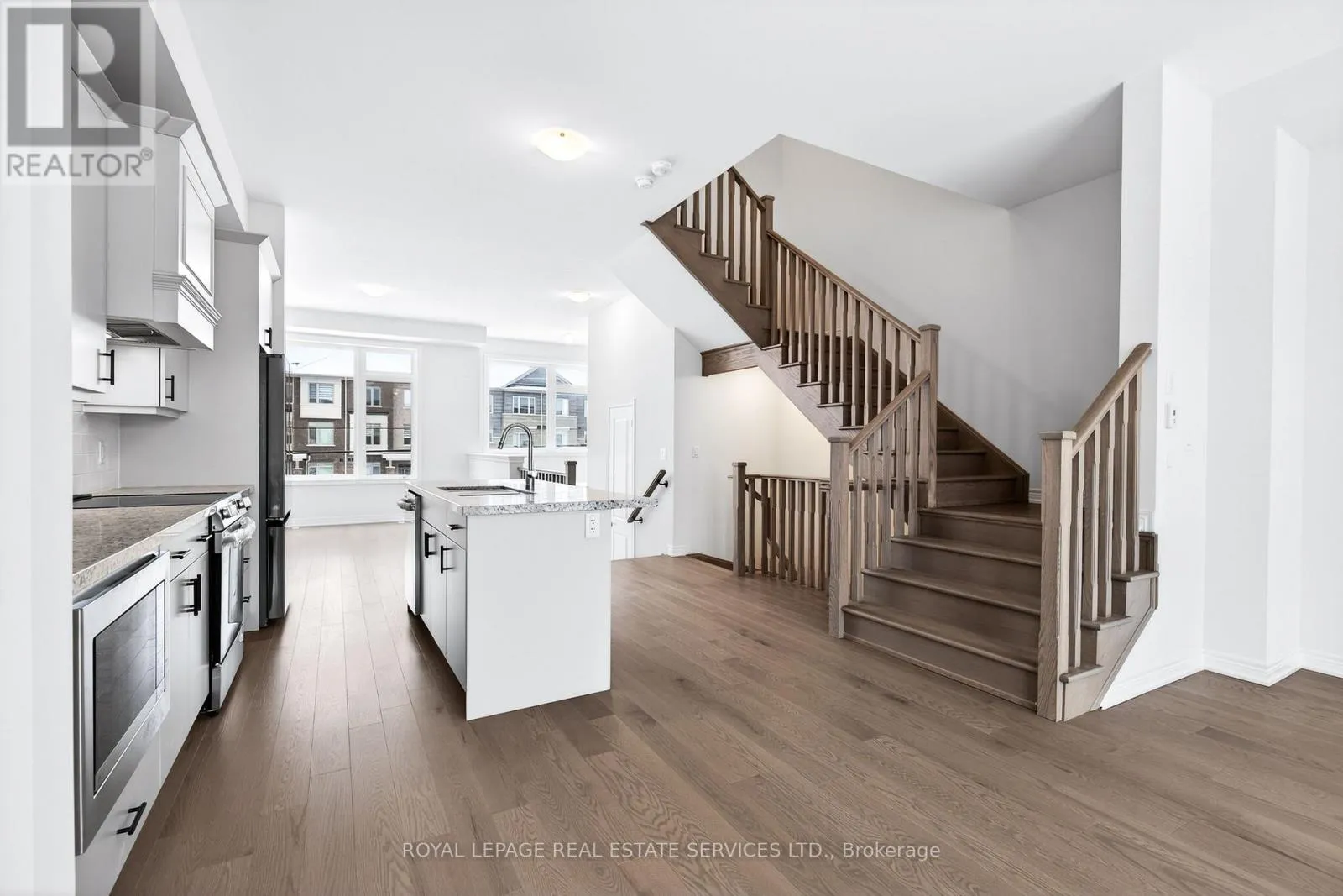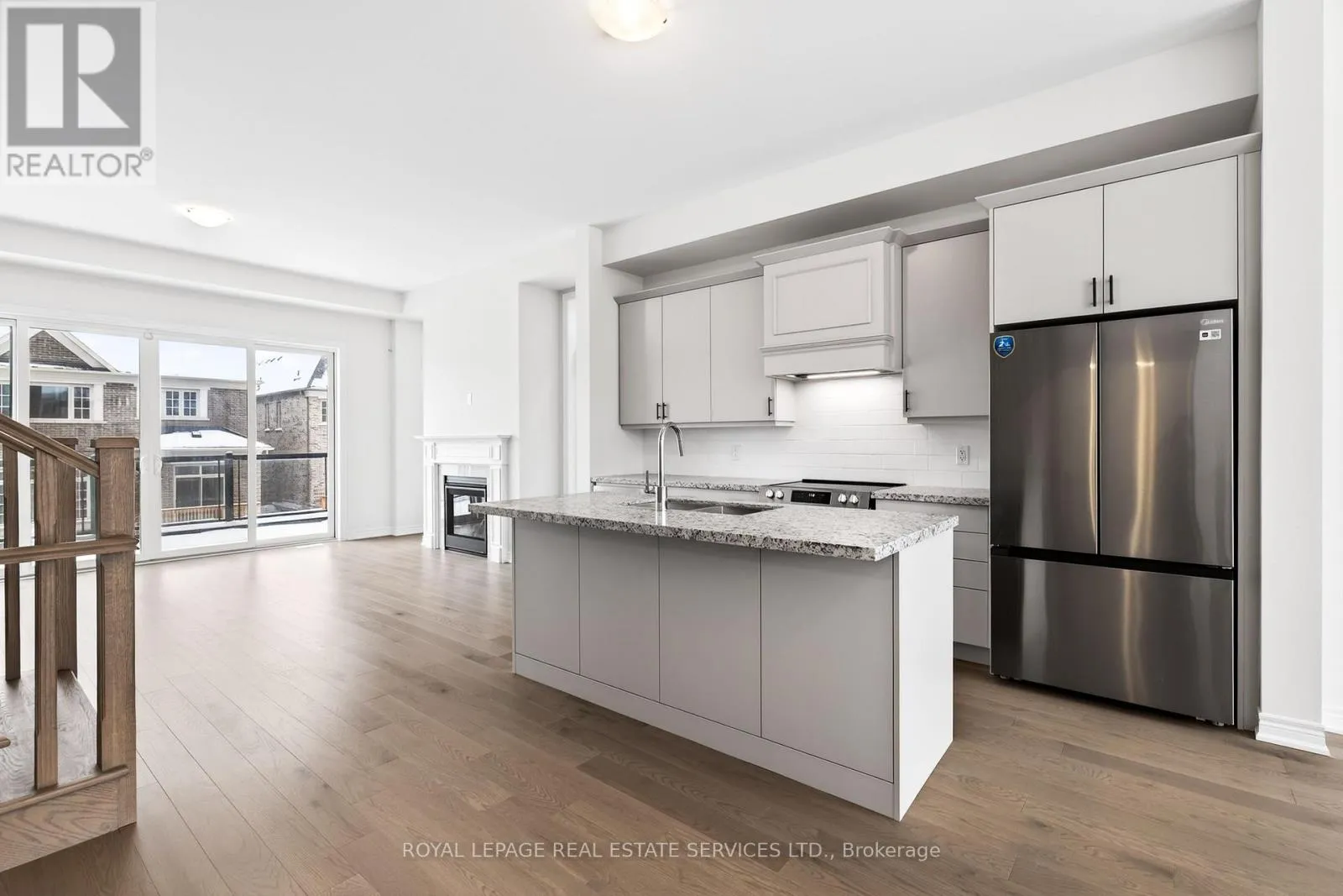 Sixth Line/Dundas Be the first to live in this spectacular, newly built end-unit Fernbrook townhome! Offering over 2,000 sq. ft. of thoughtfully designed living space in a welcoming neighbourhood. This home features 3 bedrooms, 2.5 bathrooms, and 2 parking spaces (garage & driveway) plus exclusive use of the additional space in the garage. Tall ceilings and expansive windows fill the home with natural light, creating a bright and airy atmosphere throughout.The main level offers a highly functional open-concept layout centered around a sleek modern kitchen with backsplash and a large island providing storage on both sides. The living area is highlighted by a cozy fireplace and flows seamlessly to an inviting outdoor space, ideal for both everyday living and entertaining. Upstairs, you'll find three generously sized bedrooms, two full bathrooms, and a spacious laundry room complete with a sink. A fenced front yard patio adds another outdoor retreat. Located close to excellent public and Catholic schools, scenic parks, and a large commercial plaza featuring Walmart and Real Canadian Superstore, with easy access to major commuter routes. Exceptional finishes throughout, a fantastic neighbourhood, and a truly move-in-ready home - this one is not to be missed. (id:27476)