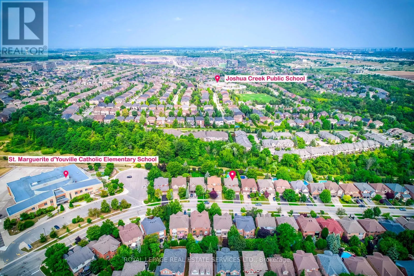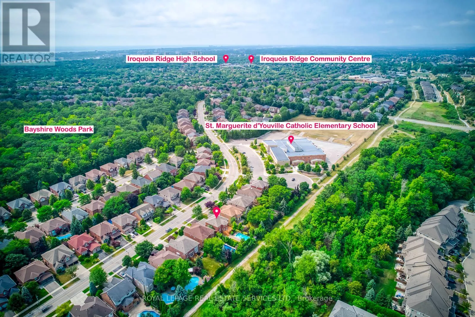Upper Middle/Grand/Bayshire Dr Stunning 4 Bedroom Family Home Backing onto Ravine in Prestigious Joshua Creek! This beautifully maintained 3,079 sq ft detached home offers 4 bedrooms and 4 bathrooms, situated on a premium ravine lot with breathtaking views. Enjoy spectacular sunsets from your private deck overlooking a beautifully landscaped backyard oasis with a pool, mature trees, and complete privacy. The main level is thoughtfully designed for comfortable family living-featuring a spacious dining room perfect for gatherings, a bright living room with vaulted ceilings and impressive windows, and a dedicated office for working from home.Upstairs, the large primary bedroom retreat offers a walk-in closet and a relaxing atmosphere, complemented by three additional spacious bedrooms and a beautifully renovated main bath.The walk-out basement provides fantastic extra living space with a generous rec room, bar, game area, full bath, and ample storage-ideal for entertaining or relaxing after a summer swim. Recent upgrades include stylish new flooring and upgraded stair finishes (2022), an owned hot water heater (2022). Located in the highly desirable Joshua Creek community, within top-rated school zones (Joshua Creek PS & Iroquois Ridge HS), and complete with a double garage, this home is the perfect blend of space, comfort, and location. (id:27476)