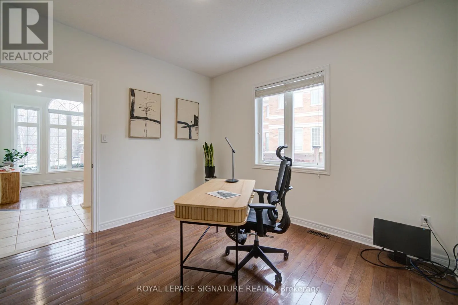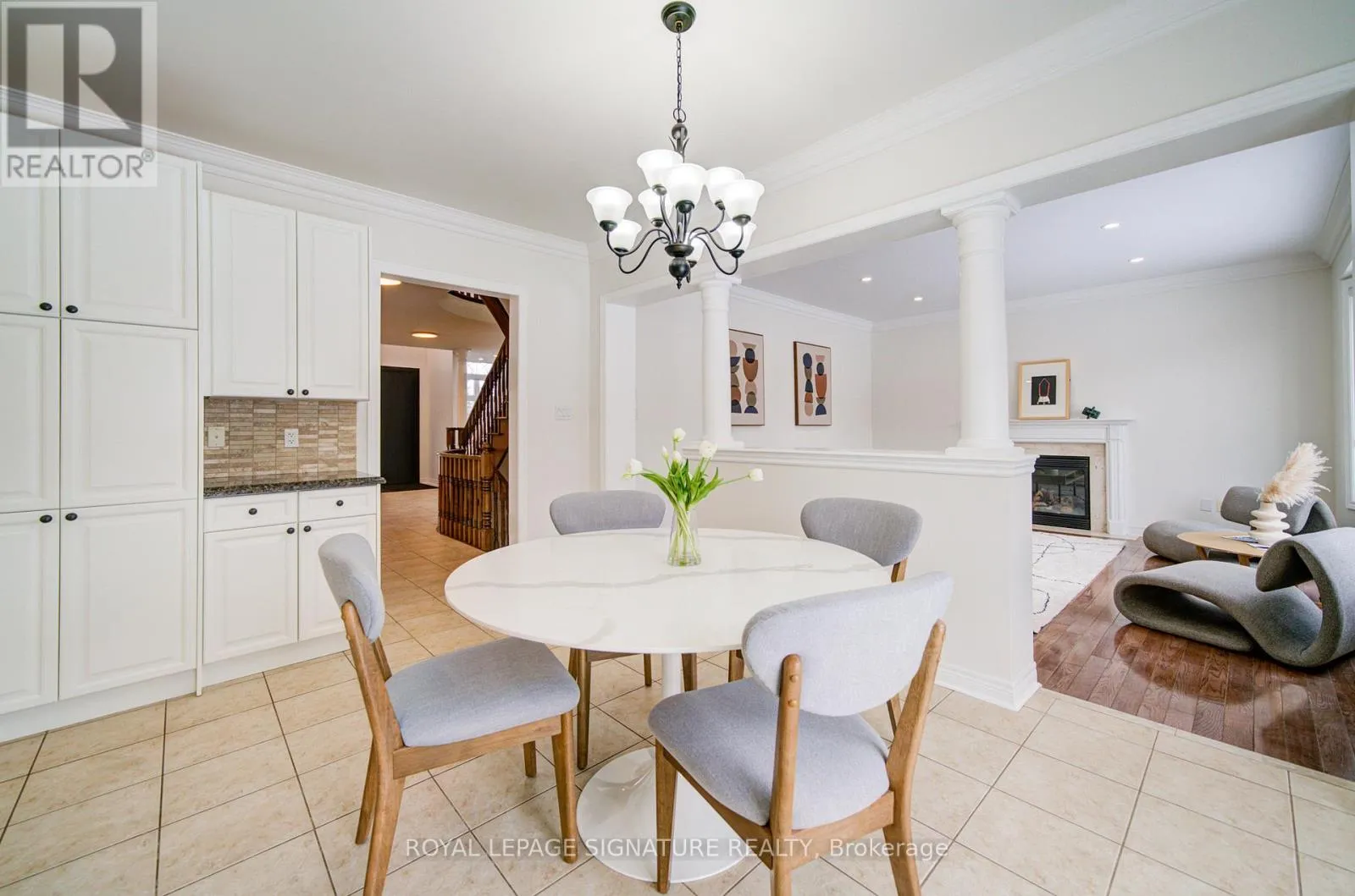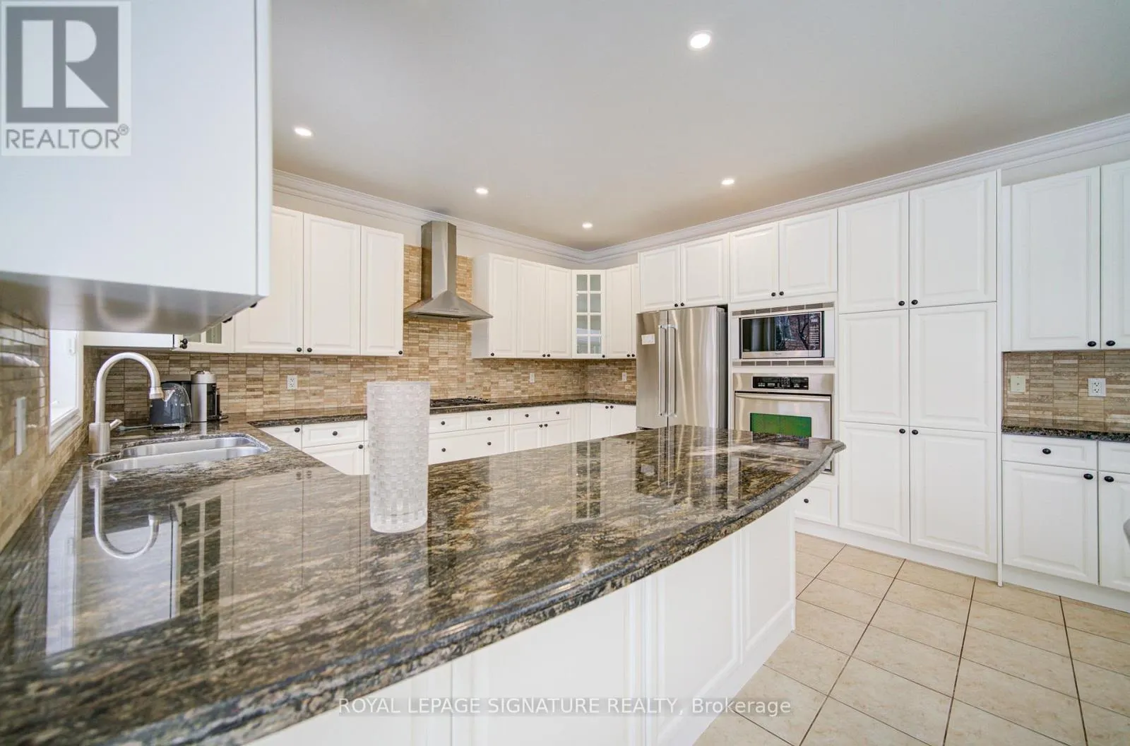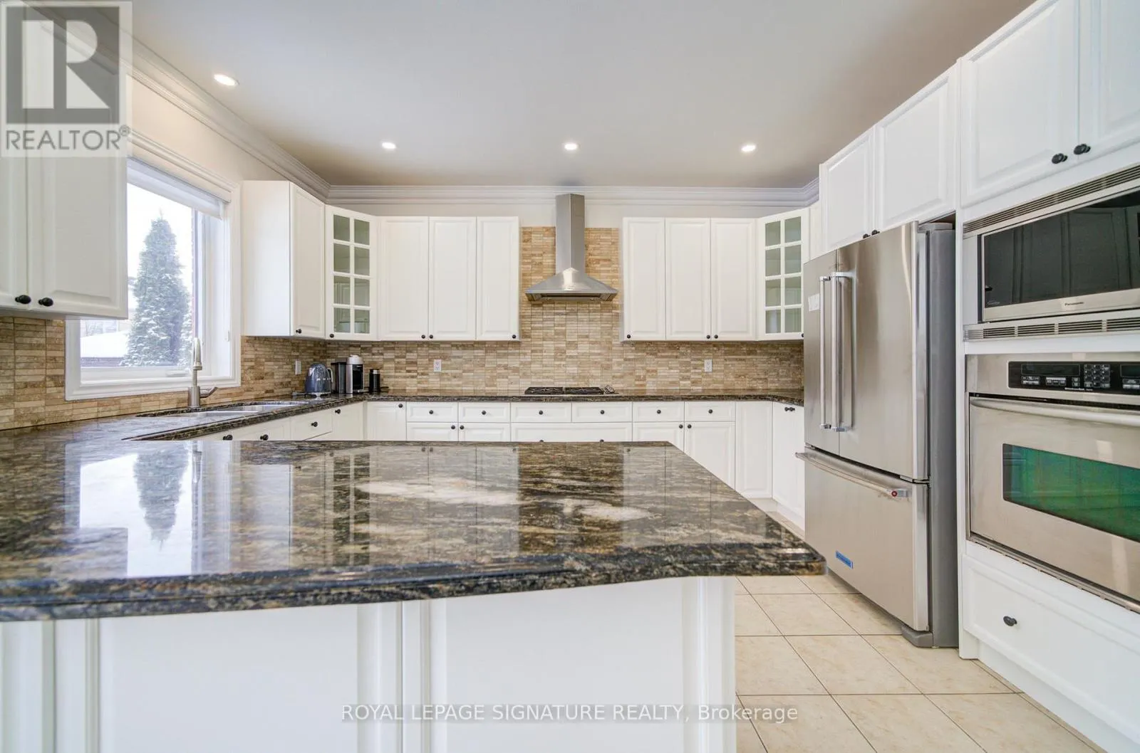 MEADOWRIDGE-E ON CRAIGLEITH Welcome to Oakville's prestigious Joshua Creek community, where convenience, luxury, and top-rated schools come together. This stunning Ballantry-built home sits on a premium deep lot with approximately 60' width across the rear, offering exceptional privacy and a professionally landscaped backyard with cobblestone-style patio, towering 28' Blue Spruce trees, maple, ornamental pear trees, and large cedars. Approximately 3,540 sq. ft. of luxurious living space features an upgraded fiberglass front entry door, hardwood flooring throughout the home, 9' main floor ceilings, crown mouldings, and a curved oak staircase. The main floor features a private office, a sunken formal living room with tapered columns, crown mouldings, and pot lights, and an elegant dining room with coffered ceiling and hardwood floors. The extensively upgraded and modified kitchen boasts maple cabinetry, extended-height upper cabinets, granite countertops, travertine backsplash, stainless steel appliances, a breakfast bar, and a walk-out to the breakfast area. The open-concept family room, anchored by a gas fireplace, completes this level, providing a perfect space for family gatherings and entertaining. The second floor features a spacious primary suite with a spa-inspired ensuite, including a luxurious soaker tub and a large walk-in closet. Three additional bedrooms include one with a private ensuite, providing comfort and convenience for family or guests. An exceptional home offering outstanding location, privacy and quality craftsmanship. (id:27476)