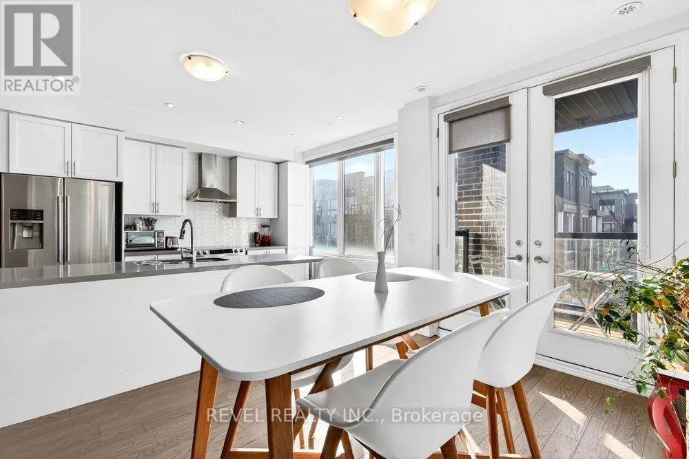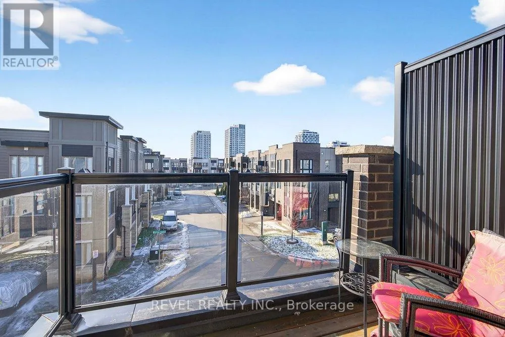 Cross Streets: Dundas St E And Trafalgar Rd. ** Directions: Dundas St E to Postridge Dr to Cascade Com to Blacktusk Com. Bright & modern 2-bedroom, 2+1 bath freehold townhome in sought-after North Oakville offering 1,430 sq ft plus an incredible 450 sq ft rooftop terrace with BBQ gas line-perfect for entertaining, summer gatherings, or simply relaxing outdoors. The bright main living area features an open-concept kitchen with quartz countertops, stainless steel appliances, sleek modern cabinetry, designer backsplash, large windows, and pot lights. Wide-plank hardwood floors flow through the family and dining rooms, creating a stylish and inviting space ideal for hosting. The spacious primary suite is filled with natural light and includes his-and-hers closets and a spa-like ensuite with glass shower and quartz vanity. The second and third bedrooms both enjoy access to the rooftop terrace, providing a seamless indoor-outdoor lifestyle rarely found in townhomes. Conveniently located steps to Longo's, Starbucks, parks and everyday amenities, and just minutes to Walmart, major shopping, the GO Train, and highways 403, QEW and 407-this home offers the perfect blend of modern living, outdoor space, and unbeatable convenience. (id:27476)
