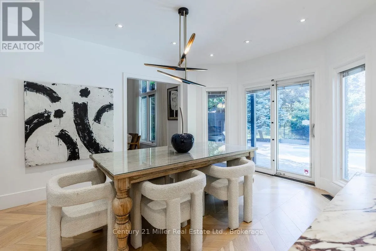 Cross Streets: Masters Green / The Links Drive. ** Directions: Dorval Drive to Fairway Hills Blvd. Welcome to 1031 Masters Green, a beautifully maintained executive home tucked away on a quiet, family-friendly street in Oakville's sought-after community Glen Abbey and the enclave of Fairway Hills. With exceptional curb appeal, this 4+1-bedroom, 3.5-bathroom residence offers nearly 5,000 sq. ft. of elegant living space throughout, perfect for family living and entertaining. Step inside to a bright, open-concept layout featuring hardwood floors, large principal rooms, and timeless finishes. The spacious living and dining rooms flow seamlessly for hosting, while the updated kitchen boasts quartz counters, high-end stainless-steel appliances, a breakfast area, and a walkout to your backyard oasis. A cozy family room with stunning open gas fireplace creates a warm gathering space. Upstairs, the primary suite impresses with a walk-in & double closets and spa-like ensuite complete with soaker tub and glass shower. Three additional generous bedrooms and a stylish full bath provide ample space for the entire family. The finished lower level extends the living area with a large elegant recreation room designed and created by Montana Labelle is ideal for a tranquil yoga or art studio, large bedroom, gym or home office, 4-pc bathroom and plenty of storage. Outdoors, enjoy a private, landscaped backyard with a saltwater pool, garden shed, pool house, storage shed and mature trees and a stone patio ideal for summer evenings and weekend barbecues. Located within walking distance to top-ranked schools, parks, trails, golf, and minutes from shopping, restaurants, transit, and highways, this home checks every box. 1031 Masters Green offers the perfect blend of comfort, style, and location in one of Oakville's most desirable neighbourhoods. (id:27476)
