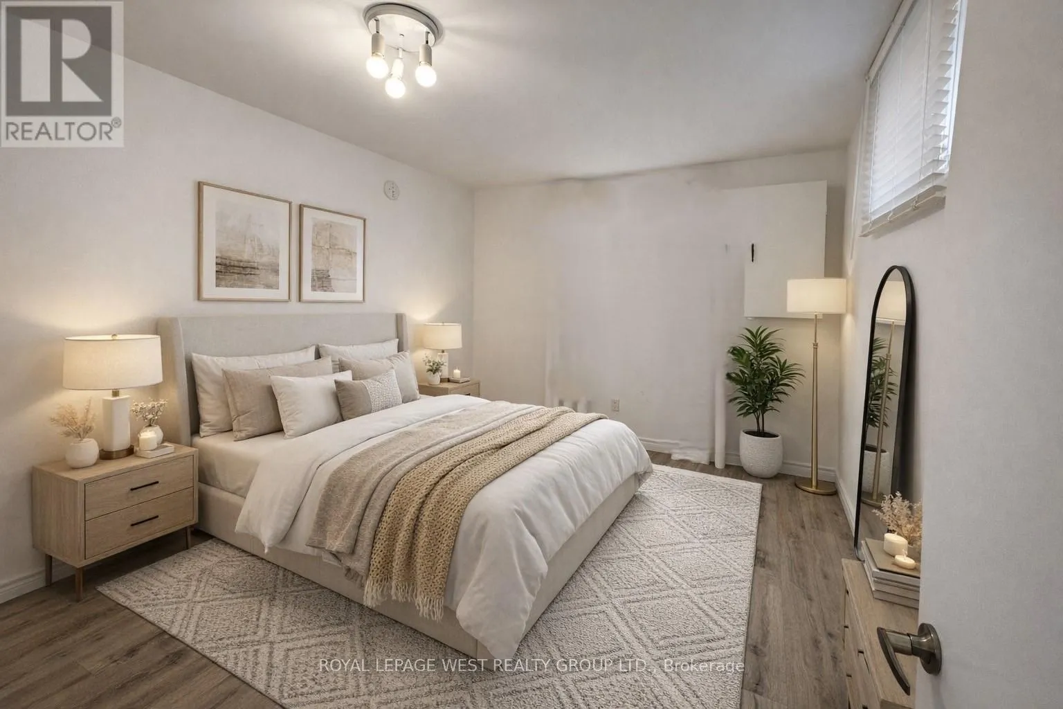 Cross Streets: W of Trafalgar, S of Upper Middle. ** Directions: QEW Exit North on Trafalgar. Conveniently located by Oakville Town Hall, Oakville Place Mall and Sheridan. This 2 Bedroom unit has over 860 SqFt and 8 Ft High Ceilings. The Renovated Kitchen features Quartz Counters and a new S/S Fridge, Stove, Fan. No extra cost with your very own side by side Washer/Dryer. A Renovated Bathroom with a Quartz Vanity and Tall Shower. The Huge Living Room has a Fireplace Feature Wall and a Window that expands the entire width of the room. Good Size Bedrooms with a Double Closet. Storage under Staircase. Recently Painted and Newly Installed Window Coverings, Modern Grey Plank Vinyl Floors. A Surface Parking Spot is Included. Shared Backyard Space (restrictions apply). 2 Entry/Exit Staircases and 1 Garage Exit Door. See Floorplan as last picture. (id:27476)