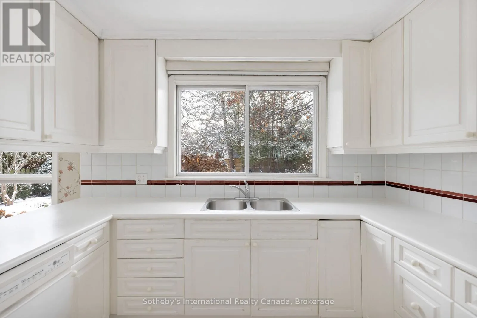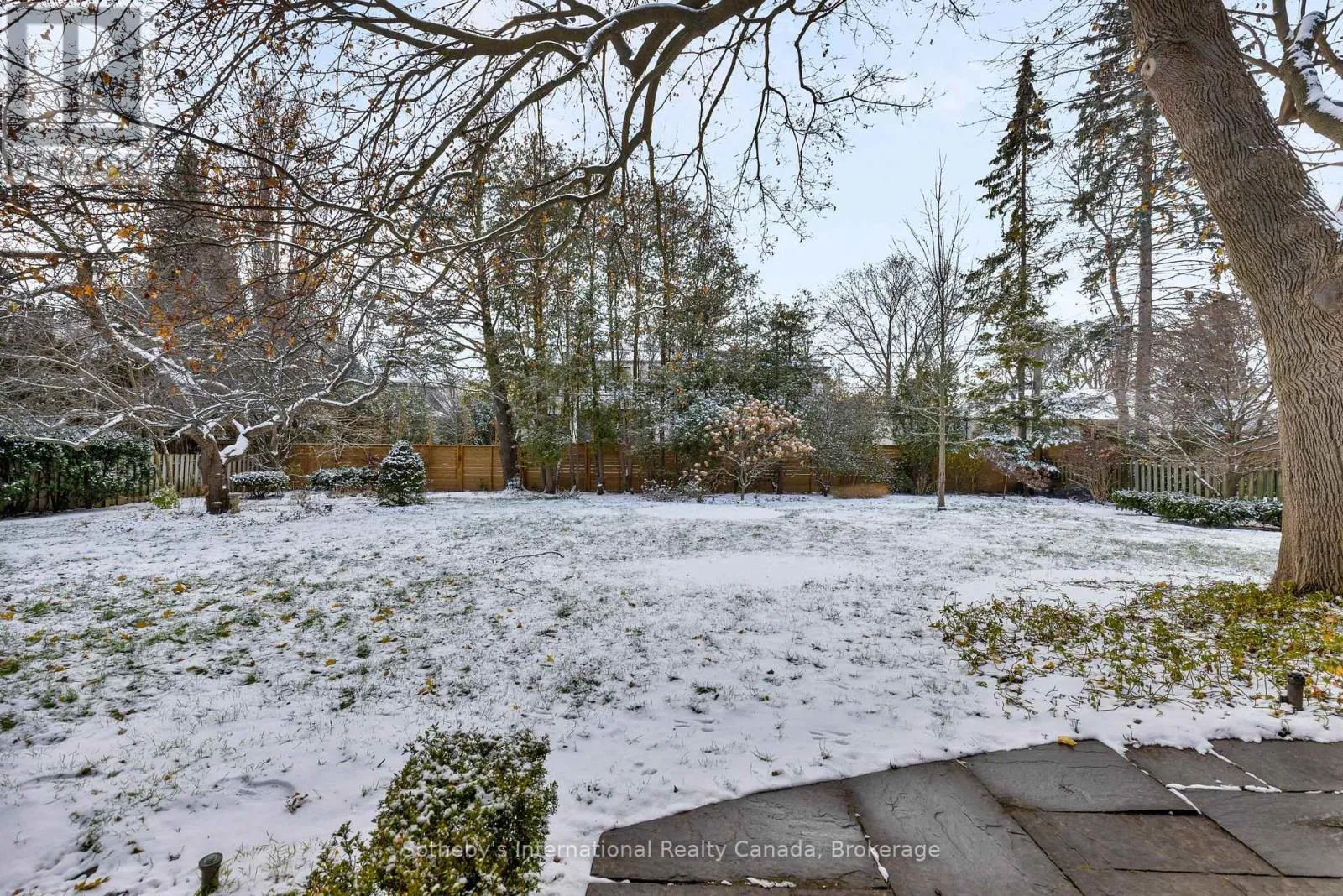 Lakeshore Road and Cairncroft Nestled in the heart of the coveted Morrison neighbourhood, this classic residence sits on an expansive, mature 100 x 150 foot lot within the prestigious Ennisclare Park pocket. Steps from the lake and Gairloch Gardens, this impeccably maintained 1960s home still makes a statement. The interior exudes quiet elegance, featuring a wood-panelled family room and a breathtaking sun-room with cathedral ceilings and floor-to-ceiling windows that overlook a lush, private garden oasis. Whether you choose to enjoy its timeless charm, renovate to your taste, or build your dream estate, this is a rare opportunity in one of Oakville's finest school districts. (id:27476)
