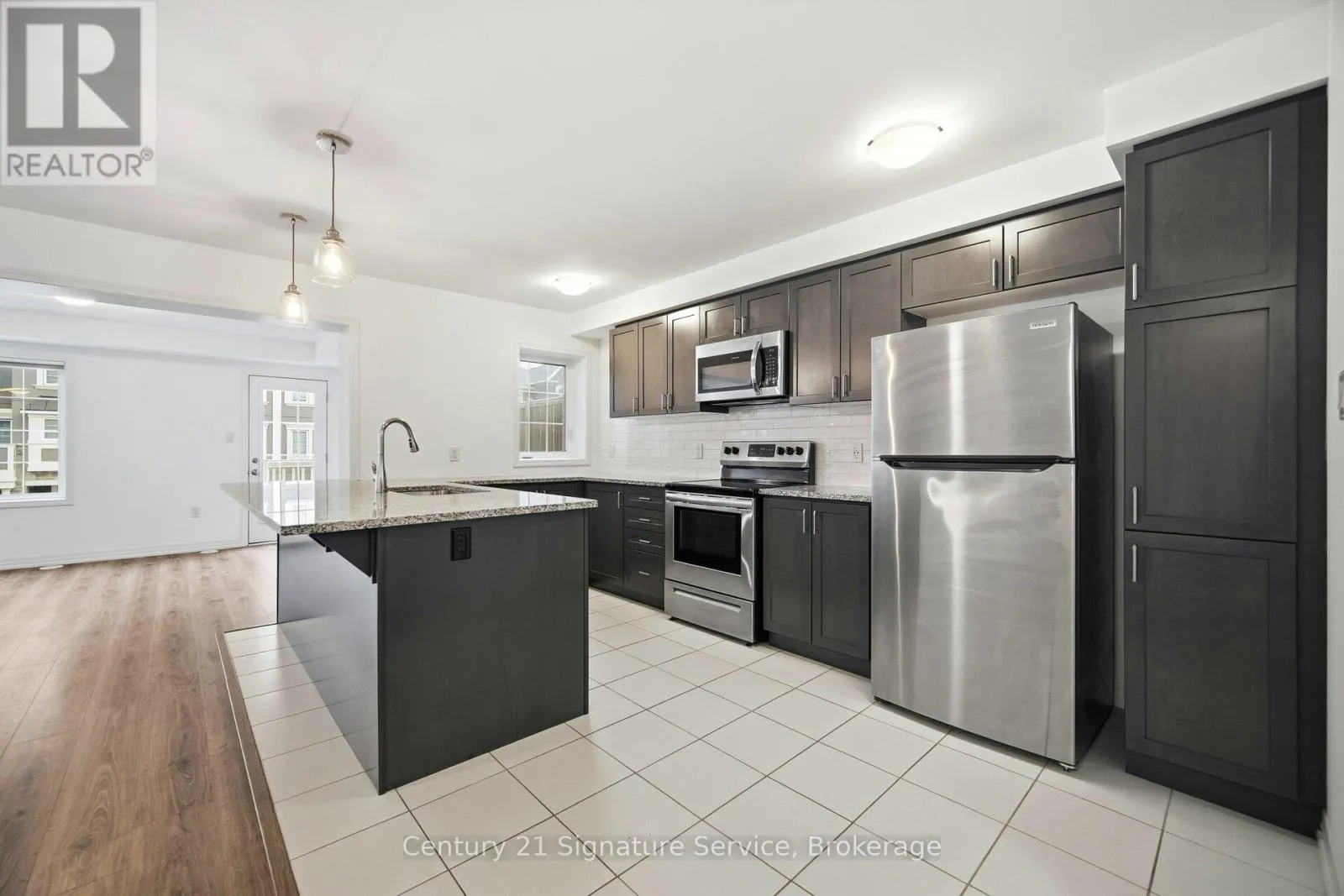 Burnhamthorpe Rd East And Sixth Line Newly built in North Oakville, this stylish freehold townhome offers 3 bedrooms and 3 bathrooms with beautifully upgraded living space perfect for young families, couples, and first-time buyers seeking modern comfort in a prime location. The home features floating engineered hardwood floors throughout (upper level 2026) and an open-concept layout with an eat-in kitchen complete with stainless steel appliances, granite countertops, a newly installed backsplash, and a center breakfast bar ideal for entertaining. Step out to a spacious balcony for effortless outdoor enjoyment. The entire home was freshly painted (2026). Upstairs, the private primary suite includes a walk-in closet and 4pc ensuite, complemented by two additional bedrooms and a full bathroom. Convenient garage access from the main level adds everyday practicality. Located steps from the Sixteen Mile Creek Trail and minutes to Bronte Creek Provincial Park, Glen Abbey Golf Club, Oakville Place, and the GO Station. This is modern Oakville living at its best just move in and enjoy. (id:27476)