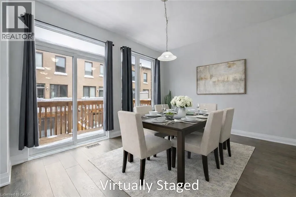 Welcome to this Great Gulf freehold modern end-unit town home in Oakville, featuring extra windows adding an abundance of natural light. This 1990 sqft unit is stunningly move-in ready. The Main floor includes added convenience with inside entry from the garage, having updated epoxy flooring. A 2-piece bathroom, plenty of storage space, and a family room complete this level, with a walkout to the private backyard where you can host outdoor gatherings. The second floor features a modern kitchen with quartz countertops and an upgraded custom backsplash. With a spacious dining room opening to a balcony, perfect for enjoying your morning coffee or entertaining in the evening with a second gas-hookup for your next family barbecue. Completing this floor with a 2-piece bathroom and a spacious living room featuring an upgraded stone wall. The third floor consists of a primary bedroom with a spacious walk-in closet and 5-piece ensuite. As well as two additional bedrooms, another 4-piece bathroom and added convenience with the laundry just steps away on the same level. Luxury exterior upgrades include an exposed aggregate driveway, front porch and landscaping, a side gate access to a fully fenced backyard featuring artificial grass for year-round beauty and comfort. With both exterior and interior upgrades done throughout, all thatâs left to do is turn the key and enter this luxury unit. Smart home features include a brand-new Nest thermostat, an alarm system, and security system. Each floor consists of a wall mounted flat-screen TV. Donât forget to check out our extended list of upgrades. Located in a vibrant community close to parks, schools, shopping, and transit. (id:27476)