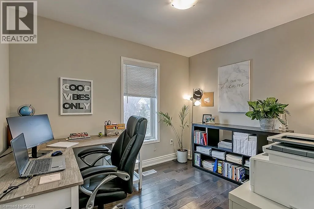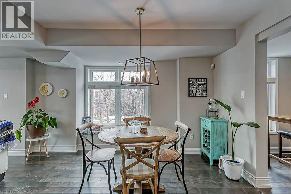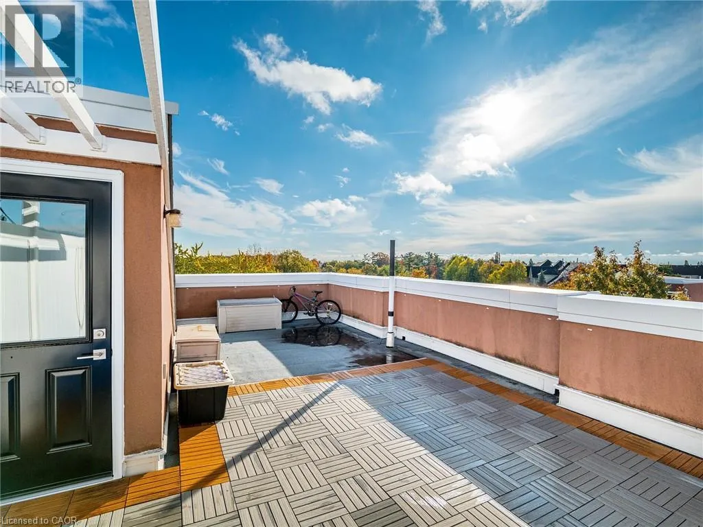 Sixth Line & Minn's Ave Welcome to this stunning townhome offering over 1200 sqft of modern living space. Enjoy an abundance of natural light through large windows showcasing beautiful views of the creek and ravine. This home features two private balconies, plus a bonus rootop terrace, perfect for relaxing or entertaining outdoors. Located in a highly walkable neighbourhood- steps to shops, restaurants, schools, the recreation centre and scenic walking trails right at your doorstep. Commuting is a breeze with easy access to the Q.E.W, 407, 403 and the Go Train all just minutes away. Experience comfort, convenience and contemporary living all in one exceptional home! Many upgrade including: Professionally painted, New smooth flat ceilings, New pot lights, New washer / dryer 2025, New roof top door 2025, New sliding door 2025, New window in bedroom 2025, all other windows upgraded, New front door on order, New deck terrace tiles, Roof terrace insulation, Updated appliances, Carpet free. (id:27476)