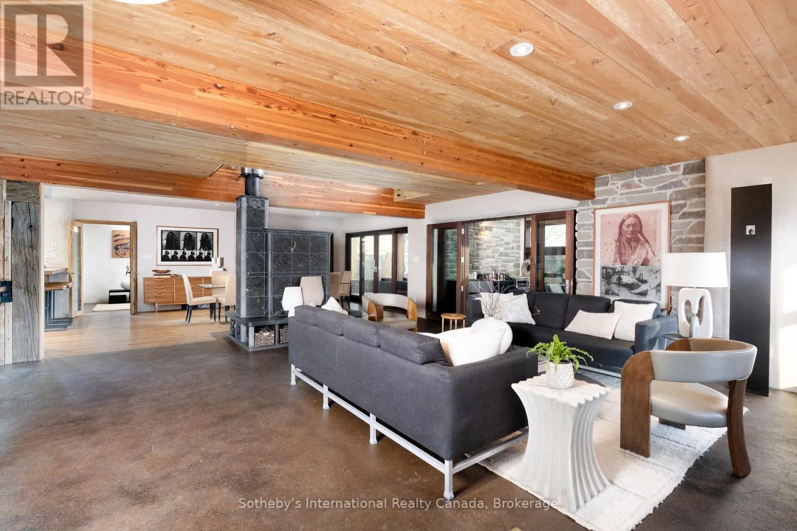 Lakeshore Rd W / Chisholm St Set within Oakville's West Harbour, 55 Chisholm Street is defined by originality and intent. Located steps from Tannery Park and Lake Ontario, this home was conceived as a work of art for those who value architecture, sustainability, and livability in equal measure. Inside, innovation drives the home as much as artistry geothermal heating and cooling, energy-recovery ventilation, and rainwater harvesting provide modern sustainability without sacrificing comfort. Natural plaster walls, custom ironwork, and a sculptural three-dimensional stairwell create moments of discovery at every turn. A dramatic soapstone fireplace anchors the main level, where open living and dining spaces frame views of the landscaped grounds and flow around a Scavolini kitchen with Miele appliances. The second floor offers three bedrooms and two bathrooms, including a primary suite that opens to a private terrace overlooking the property. Above, a treetop lookout provides a quiet, elevated perspective above the neighbourhood canopy, marking an unexpected and compelling architectural moment. The lower level thoughtfully integrates the home's original stone foundation with contemporary function, housing a den, guest suite, full bath, gym, laundry, and a cedar-lined wine cellar. Outdoors, nine distinct gathering spaces await, designed for both relaxation and entertaining. A cedar sauna and outdoor shower invite quiet unwinding, while a fire pit and full outdoor kitchen create an effortless setting, surrounded by lush landscaping. With access to the lake, trails, and the shops and restaurants of Downtown Oakville 55 Chisholm Street offers a rare balance of privacy and connection. This is a home for those who value craftsmanship over convention, restraint over excess, and design that reveals itself slowly. Every material, surface, and hidden detail reflects a life lived with intention. Singular in vision and execution, it stands apart for the few who recognize extraordinary design when they see it. (id:27476)