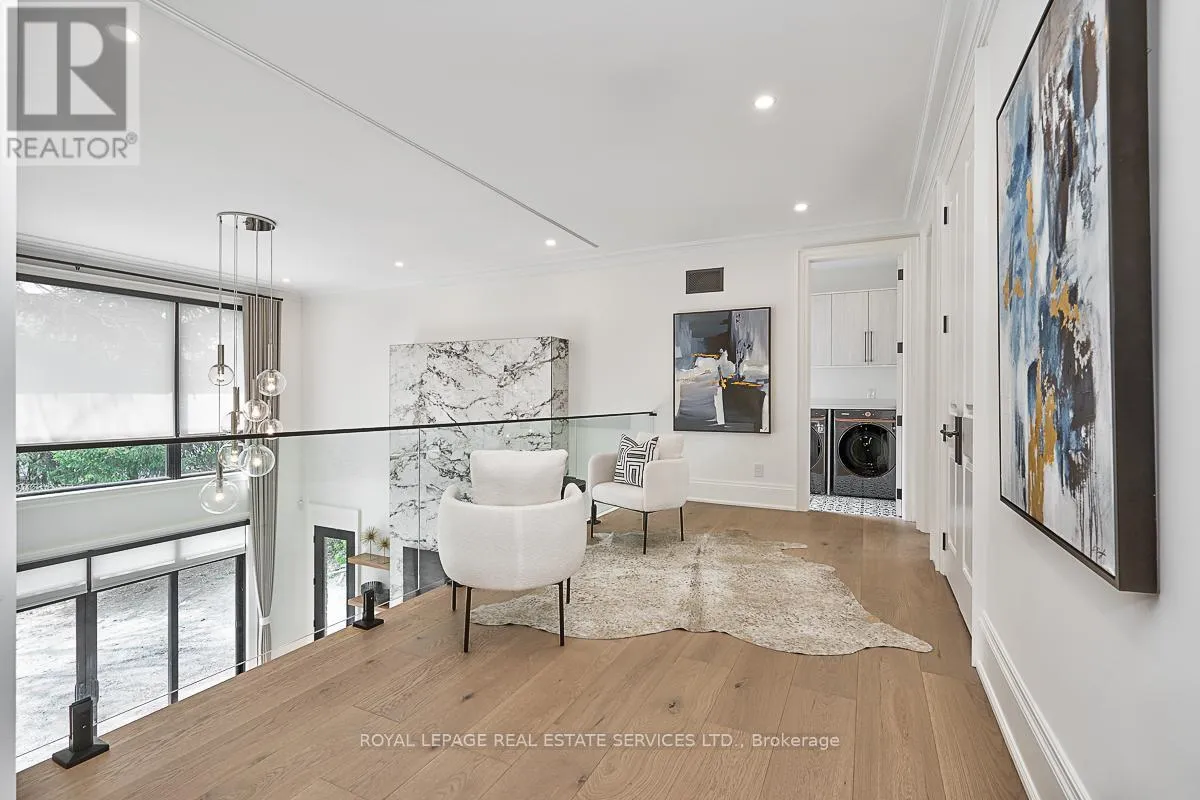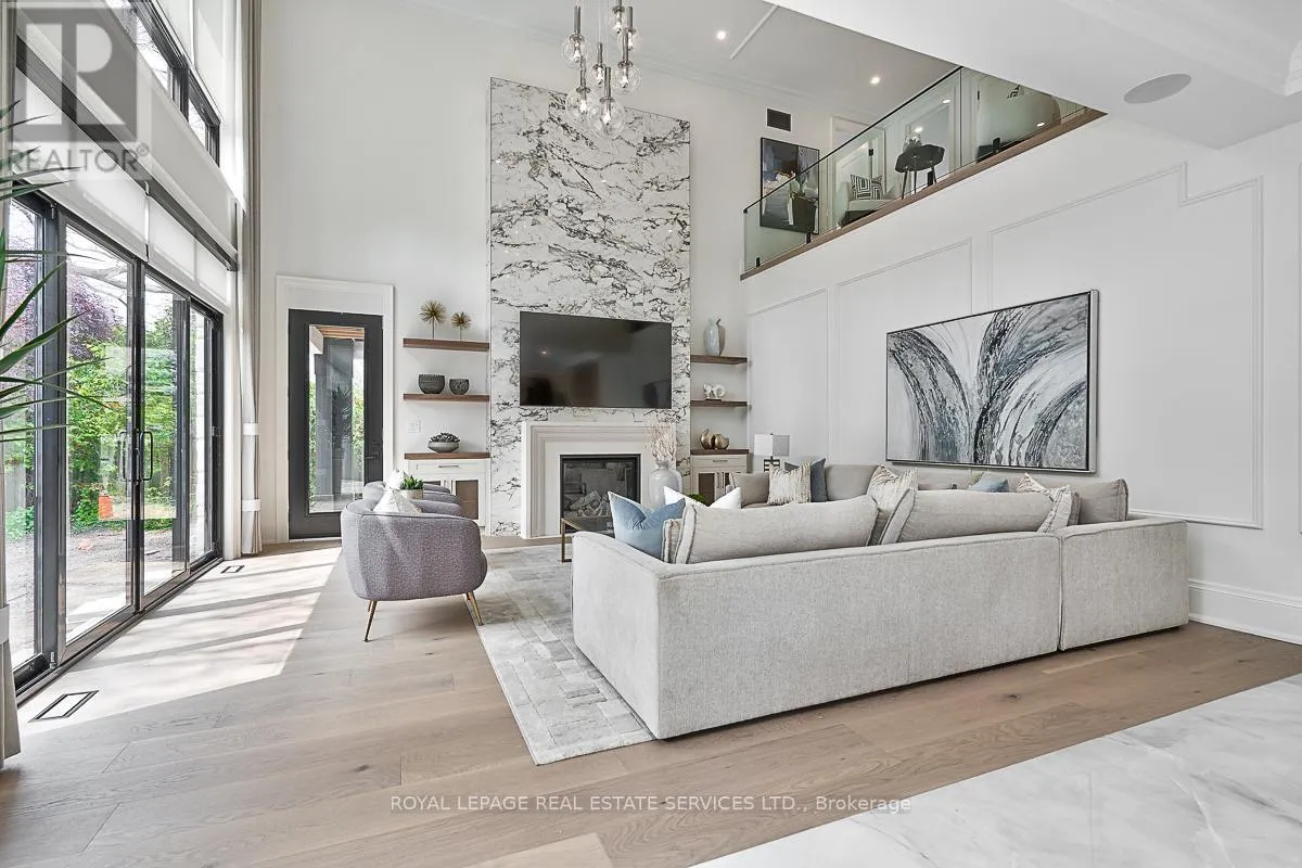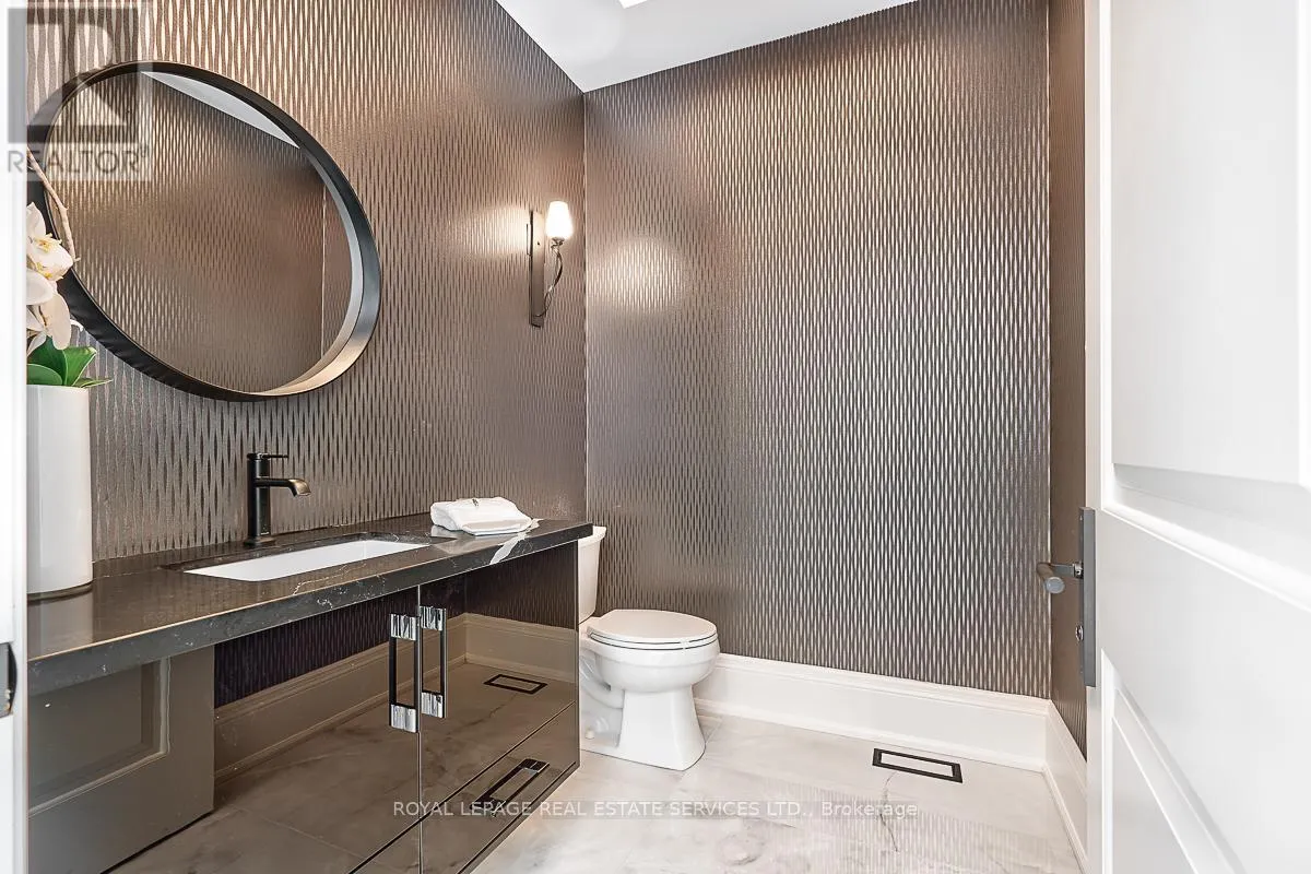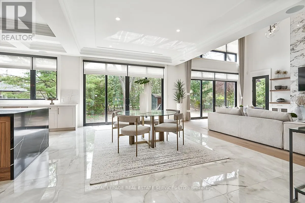 Cross Streets: Lakeshore Road East AND Maple Grove Drive. ** Directions: Lakeshore Road East to Maple Grove Drive. CUSTOM EXECUTIVE MASTERPIECE IN PRESTIGIOUS SOUTH-EAST OAKVILLE! Presenting 204 Maple Grove Drive, an almost new luxury residence by OBG Design Group with architectural design by Lima Architects Inc., set on an exceptional 115' x 138' mature, treed lot just north of Lakeshore Road. Offering over 6,000 square feet of finished living space, this home was impeccably crafted for refined everyday living and grand scale entertaining. A circular driveway with parking for up to 12 vehicles creates a commanding first impression, complemented by a rare three-car garage featuring heated floors and sleek glass doors. Inside, 10' ceilings, expansive windows, and abundant natural light highlight the home's elevated finishes, including coffered ceilings, electric window blinds, and dramatic staircase accent lighting. The transitional modern layout offers 4+1 bedrooms, 7 spa-inspired bathrooms with heated floors, and five fireplaces. The spectacular chef's kitchen anchors the main level, showcasing quartz countertops, an oversized centre island, and commercial-grade Wi-Fi enabled Thermador appliances. The adjoining living room stuns with a 20' ceiling, gas fireplace, and seamless walkout to the backyard. The lower level is a true retreat, complete with radiant heated floors, a theatre room with 180" projection screen, full bar, games area, gym, nanny suite, and a glass-enclosed wine cellar. Outdoors, enjoy a 400 square foot covered living area with gas fireplace, ideal for year-round enjoyment. Additional highlights include a whole-home audio system with 8 speakers, central security with 8 cameras, upgraded central vacuum, 7-zone inground sprinkler system, rough-in for Tesla charger, and rough-in for security gates. Ideally located near the lake, top-rated schools, major highways, and every essentials, this exceptional residence delivers a rare combination of luxury, functionality, and timeless design - the ultimate South-East Oakville lifestyle. (some images have virtual staging) (id:27476)