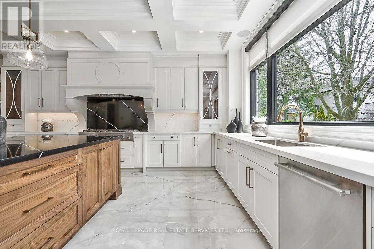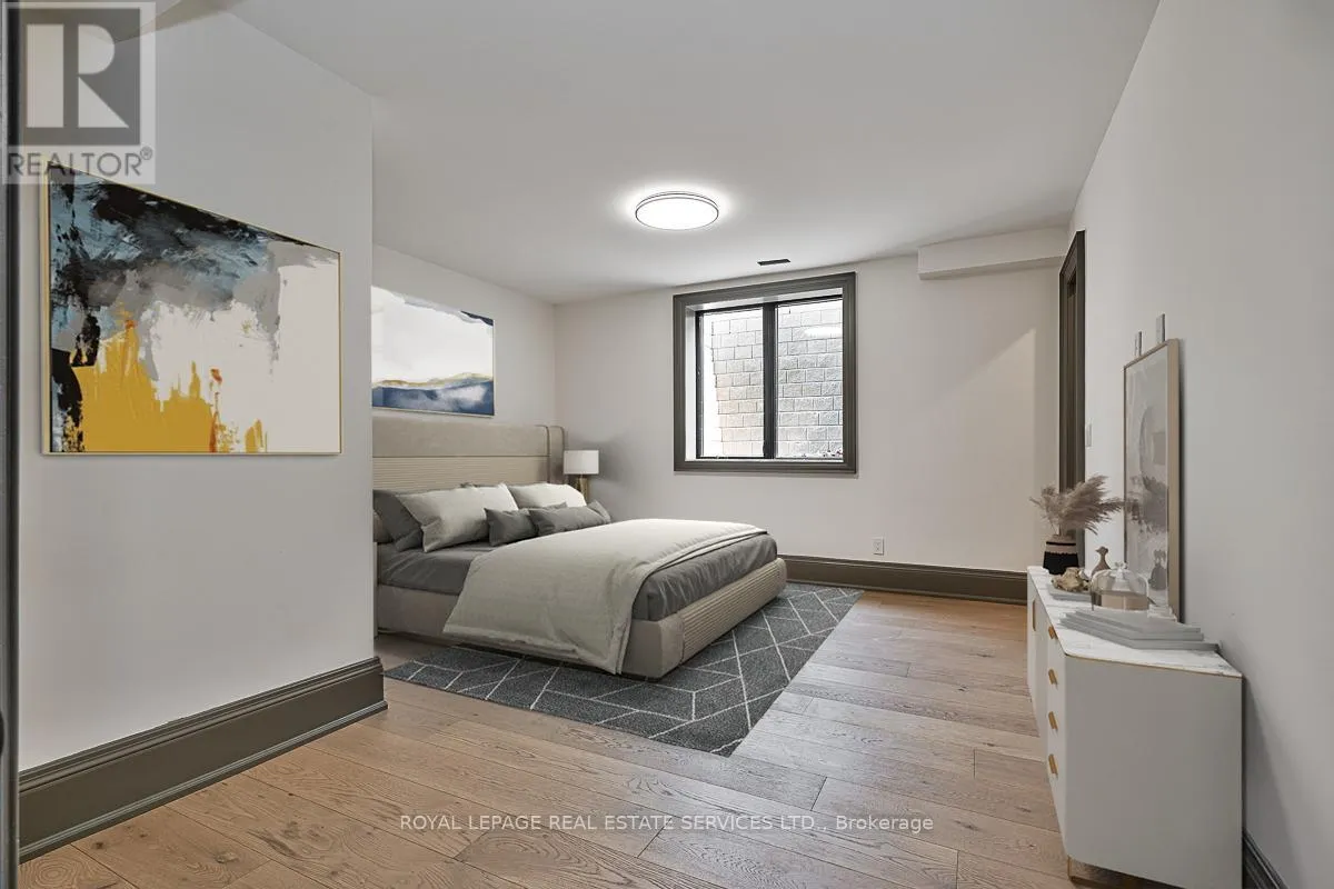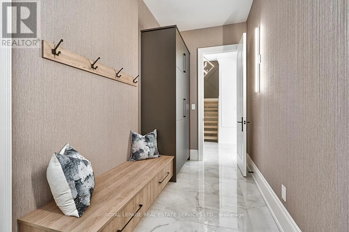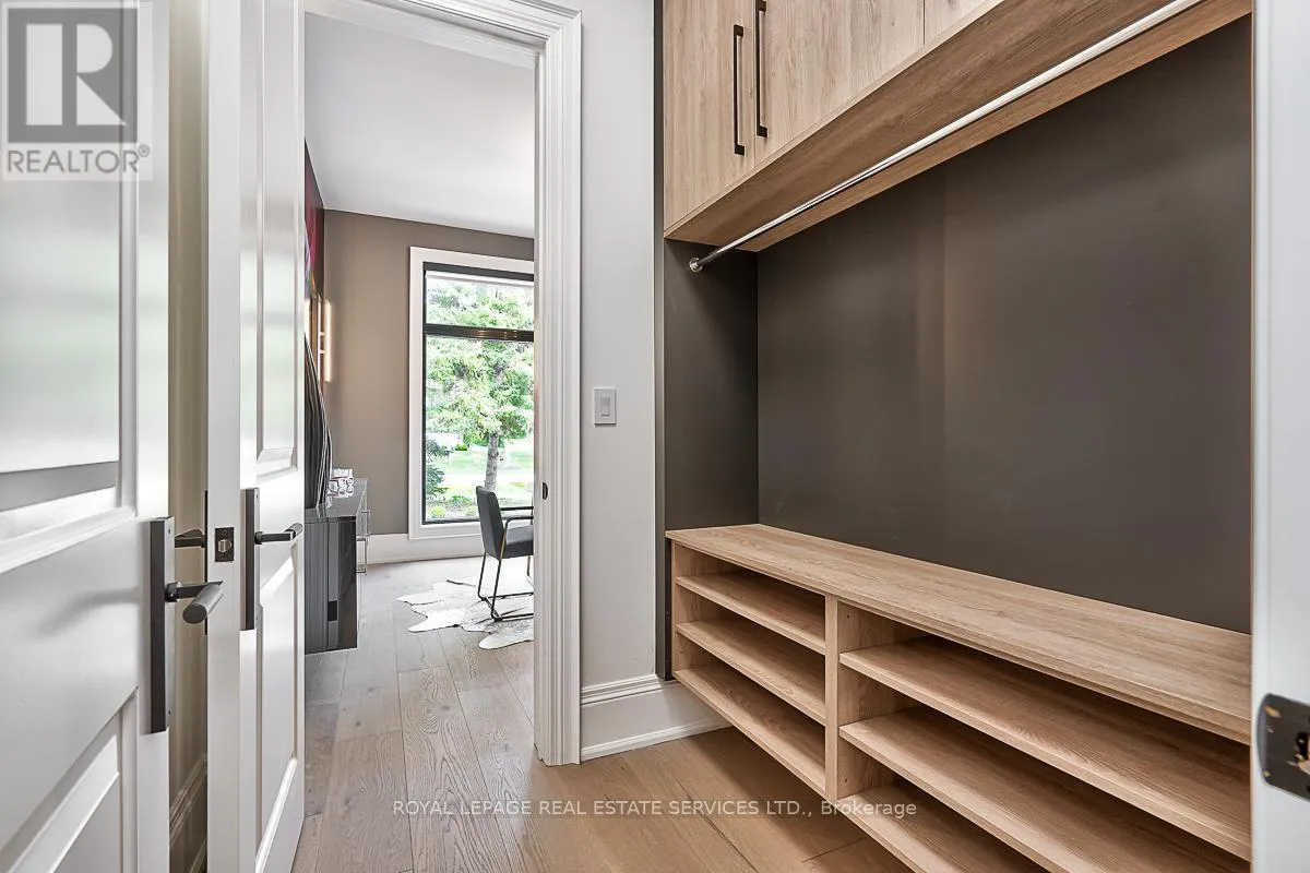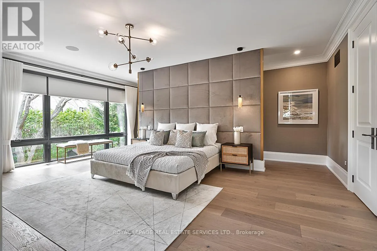 Cross Streets: Lakeshore Road East AND Maple Grove Drive. ** Directions: Lakeshore Road East to Maple Grove Drive. CUSTOM EXECUTIVE MASTERPIECE IN PRESTIGIOUS SOUTH-EAST OAKVILLE! Presenting 204 Maple Grove Drive, an almost new luxury residence by OBG Design Group with architectural design by Lima Architects Inc., set on an exceptional 115' x 138' mature, treed lot just north of Lakeshore Road. Offering over 6,000 square feet of finished living space, this home was impeccably crafted for refined everyday living and grand scale entertaining. A circular driveway with parking for up to 12 vehicles creates a commanding first impression, complemented by a rare three-car garage featuring heated floors and sleek glass doors. Inside, 10' ceilings, expansive windows, and abundant natural light highlight the home's elevated finishes, including coffered ceilings, electric window blinds, and dramatic staircase accent lighting. The transitional modern layout offers 4+1 bedrooms, 7 spa-inspired bathrooms with heated floors, and five fireplaces. The spectacular chef's kitchen anchors the main level, showcasing quartz countertops, an oversized centre island, and commercial-grade Wi-Fi enabled Thermador appliances. The adjoining living room stuns with a 20' ceiling, gas fireplace, and seamless walkout to the backyard. The lower level is a true retreat, complete with radiant heated floors, a theatre room with 180" projection screen, full bar, games area, gym, nanny suite, and a glass-enclosed wine cellar. Outdoors, enjoy a 400 square foot covered living area with gas fireplace, ideal for year-round enjoyment. Additional highlights include a whole-home audio system with 8 speakers, central security with 8 cameras, upgraded central vacuum, 7-zone inground sprinkler system, rough-in for Tesla charger, and rough-in for security gates. Ideally located near the lake, top-rated schools, major highways, and every essentials, this exceptional residence delivers a rare combination of luxury, functionality, and timeless design - the ultimate South-East Oakville lifestyle. (some images have virtual staging) (id:27476)