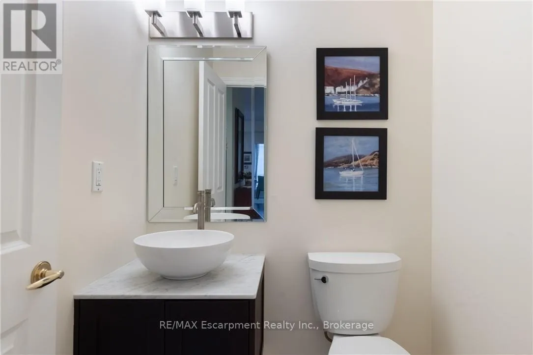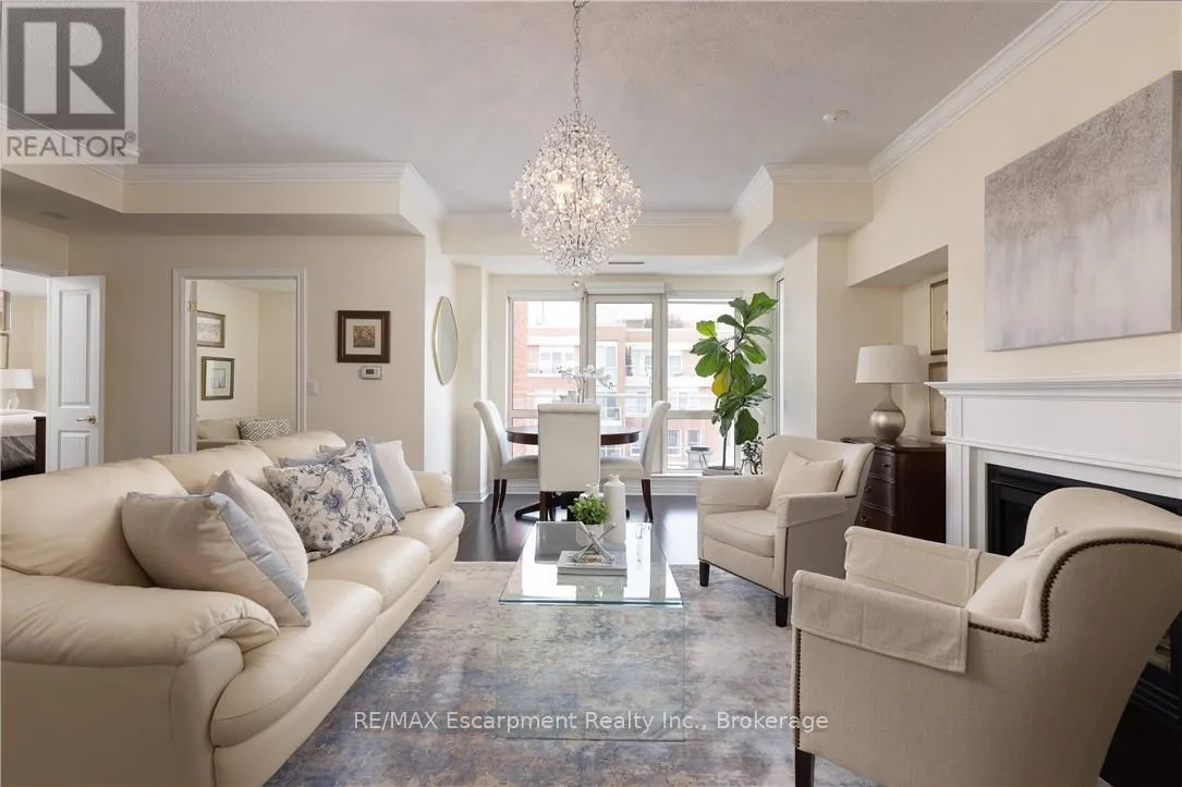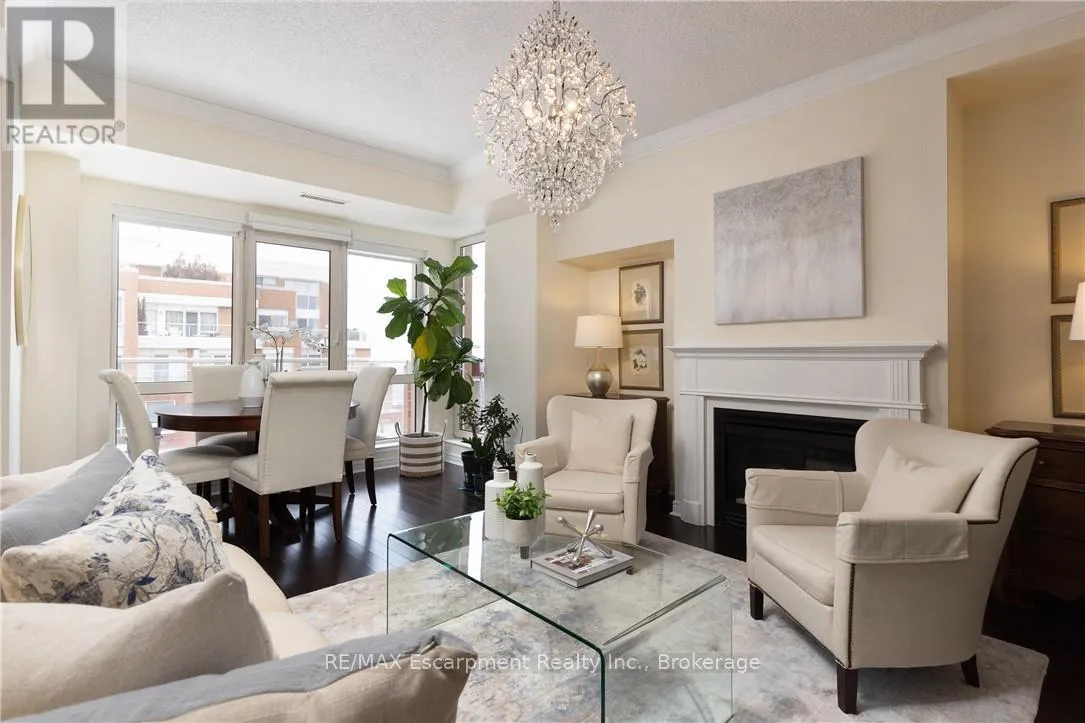 Cross Streets: SPEERS RD / OLD MILL. ** Directions: Trafalgar Road, W on Speers Road to Old Mill Rd. Wake up to tranquil water views in this refined penthouse,where comfort, craftsmanship, and location come together seamlessly.Overlooking the serene waters of Sixteen Mile Creek and views of Lake Ontario,this renovated residence has been thoughtfully redesigned to create a warm and inviting home with timeless finishes and a smooth flow. Inside,elegant engineered hardwood flooring runs throughout the space along with travertine marble in the foyer and kitchen.The updated kitchen is both beautiful and functional,featuring custom cabinetry with under-cabinet lighting,a new updated backsplash,and high end SS appliances.The Great Room and Dining Area boast soaring 9-ft ceilings and a cozy gas fireplace,creating an atmosphere that truly feels like home.With access to two balconies, you can step outside to enjoy uninterrupted views of Sixteen Mile Creek,an ideal setting for morning coffee or quiet evenings.Just off the living area, a versatile den offers flexibility for a home office, gym,or playroom w/ doors for privacy.This thoughtfully designed unit includes a two bedroom split floor plan.The spacious primary suite features a generous walk-in closet and a five-piece ensuite bathroom.The second bedroom also offers a walk-in closet, 4 pc ensuite bathroom, and a walkout to the balcony-perfect for unwinding before bed while enjoying peaceful views. A 2 pc powder room, laundry closet with stackable Bosch W/D & plenty of storage complete the Suite. Offering over 1,400 sq ft of living space,this penthouse includes two premium parking spaces, a locker, and access to outstanding building amenities,incl. an indoor pool, gym, hobby room, & party space-completing this exceptional lifestyle. Ideally positioned in Old Oakville, it's just steps from the Go Train and a 30-minute commute to downtown Toronto and easy access to the highway. Plus, you're just a short stroll away from Whole Foods and downtown Oakville's shops and restaurants. Move in and enjoy! (id:27476)