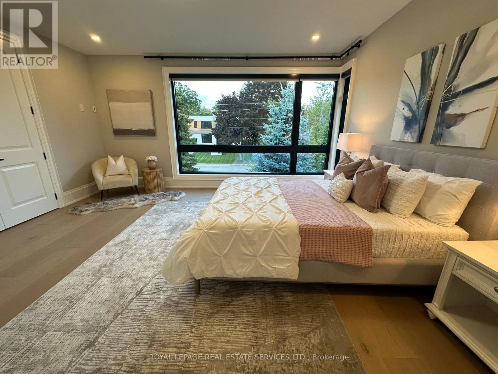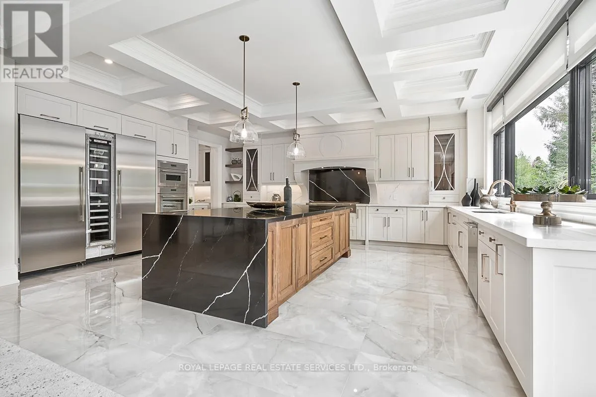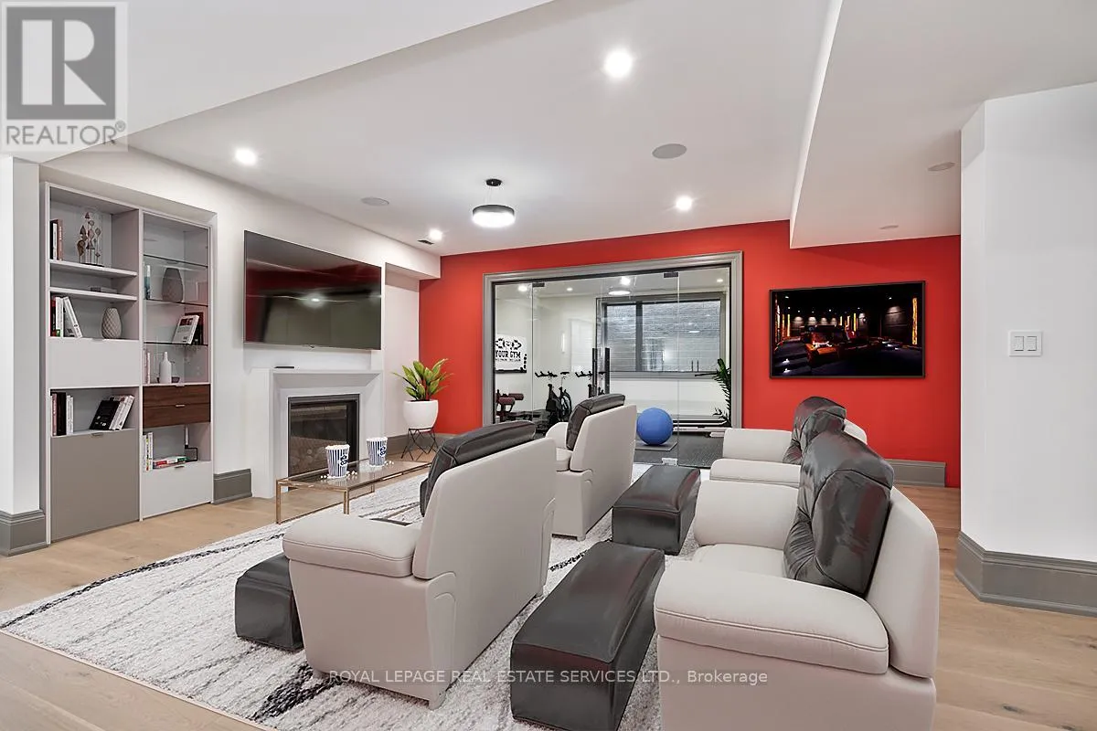 Cross Streets: Lakeshore Road East AND Maple Grove Drive. ** Directions: Lakeshore Road East / Maple Grove Drive. EXECUTIVE RENTAL OPPORTUNITY IN PRESTIGIOUS SOUTH-EAST OAKVILLE! Presenting 204 Maple Grove Drive, an almost new luxury residence by OBG Design Group with architectural design by Lima Architects Inc., set on an exceptional 115' x 138' mature, treed lot just north of Lakeshore Road. Offering over 6,000 square feet of finished living space, this home was impeccably crafted for refined everyday living and grand scale entertaining. A circular driveway with parking for up to 12 vehicles creates a commanding first impression, complemented by a rare three-car garage featuring heated floors and sleek glass doors. Inside, 10' ceilings, expansive windows, and abundant natural light highlight the home's elevated finishes, including coffered ceilings, electric window blinds, and dramatic staircase accent lighting. The transitional modern layout offers 4+1 bedrooms, 7 spa-inspired bathrooms with heated floors, and five fireplaces. The spectacular chef's kitchen anchors the main level, showcasing quartz countertops, an oversized centre island, and commercial-grade Wi-Fi enabled Thermador appliances. The adjoining living room stuns with a 20' ceiling, gas fireplace, and seamless walkout to the backyard. The lower level is a true retreat, complete with radiant heated floors, a theatre room with 180" projection screen, full bar, games area, gym, nanny suite, and a glass-enclosed wine cellar. Outdoors, enjoy a 400 square foot covered living area with gas fireplace, ideal for year-round enjoyment. Additional highlights include a whole-home audio system with 8 speakers, central security with 8 cameras, upgraded central vacuum, 7-zone inground sprinkler system, rough-in for Tesla charger, and rough-in for security gates. Ideally located near the lake, top-rated schools, major highways, and every essentials, this exceptional residence delivers a rare combination of luxury, functionality, and timeless design - the ultimate South-East Oakville lifestyle. (some images have virtual staging) (id:27476)