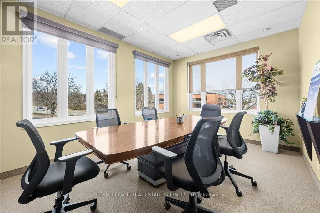 Cross Streets: Trafalgar Road and Iroquois Shore Road. ** Directions: Trafalgar Road / Iroquois Shore Road / North Service Road East. LIGHT-FILLED OFFICE CONDO IN A PREMIUM OAKVILLE CORPORATE HUB! A rare opportunity to own in one of Oakville's most desirable and well-maintained professional complexes. This highly visible second-floor end unit offers approximately 2,250 square feet with a smart, versatile layout that can be reimagined or used as-is. With its bright south-east corner orientation, the space is wrapped in windows, creating a natural light-filled setting that supports productivity and collaboration. The current design includes four private offices (with potential for a fifth), an open-concept bullpen, a large boardroom, two in-suite bathrooms, a kitchenette, and a dedicated storage area - ready to support a wide range of professional uses. The complex itself is professionally managed and provides abundant on-site surface parking for staff and visitors. Surrounded by a strong mix of medical, professional, and corporate tenants, the setting fosters credibility and connection. Strategically located minutes from the QEW, Oakville Place, the GO Train, and countless amenities - with public transit at the door - this property combines visibility, convenience, and long-term value. Whether you're an owner-occupier seeking move-in ready space or an investor looking to reposition and add value, this office condominium stands out as a flexible and future-proof opportunity. (id:27476)