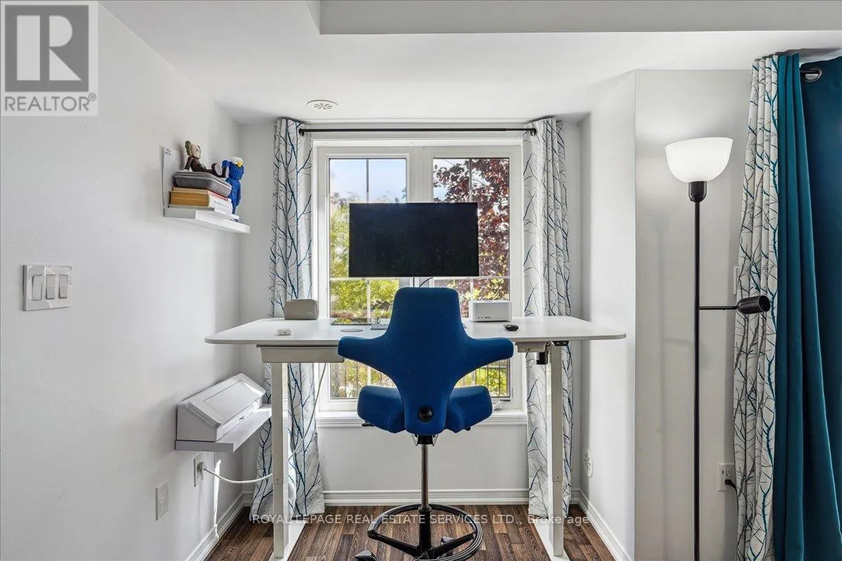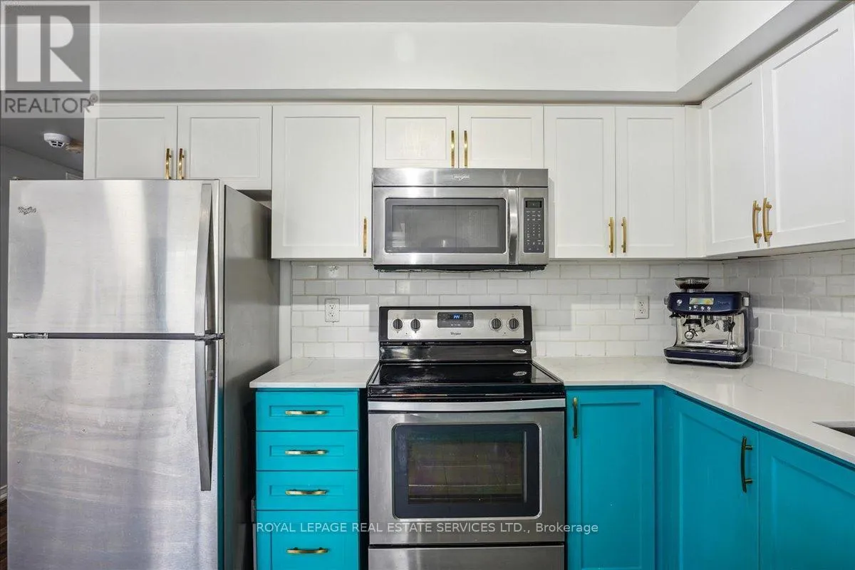 Cross Streets: Post and Sixth. ** Directions: Post Road and Sixth Line. Exceptional 2 bedroom and 2 bath condo located in the prestigious community of Uptown Oakville. This Beautifully updated and rarely offered south facing END UNIT is located on the ground floor, (unlike many that are for sale located below ground level) which provides amazing natural light and resides beside the pond and walking trail, making it one of the most private and quiet units in the complex. However, you are still walking distance to any and all shops, restaurants including Wal-Mart, the Superstore and the River Oaks Community Centre. With No carpet and no stairs, this turn key home comes with recent upgrades including freshly painted walls, kitchen cabinets, backsplash and new Caesar stone counter tops. The unit comes with underground parking (with plenty of visitor parking), which makes those snowy winter days a thing of the past, and a lovely patio where you can relax beside greenspace and enjoy your BBQ while entertaining friends and family. (id:27476)