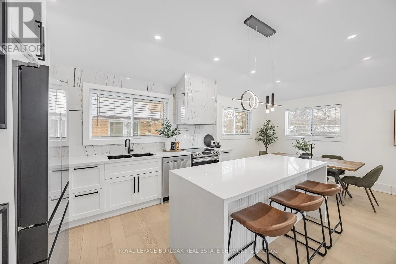 Cross Streets: Hixon Street/Wales Crescent. ** Directions: South on Third Line, right on Hixon Street, right on Wales Crescent. Beautifully upgraded detached home, fully renovated in 2023, situated on a premium 117 x 60 corner lot. This stunning residence showcases luxury finishes throughout, including engineered hardwood flooring and soaring 9.5-ft ceilings that enhance the bright, open-concept main floor layout. Flooded with natural light from numerous new thermal windows (2023) and beautiful stone fireplace, the home invites you in. The gourmet kitchen is a showstopper, featuring a marble range hood, expansive center island with abundant storage, and seamless flow into the living and dining areas-perfect for both everyday living and entertaining. Offering 4 bedrooms above grade, and three renovated full bathrooms (2023), there's room for everyone. The fully finished lower level includes a spacious mudroom, large laundry room, and additional living space, ideal for family or guests. Additional highlights include a one-car garage, two-car driveway, and a fully fenced yard with (new fence 2023) providing privacy and outdoor enjoyment. A rare pool-sized lot opportunity combining modern luxury, thoughtful design, and turnkey convenience. (id:27476)