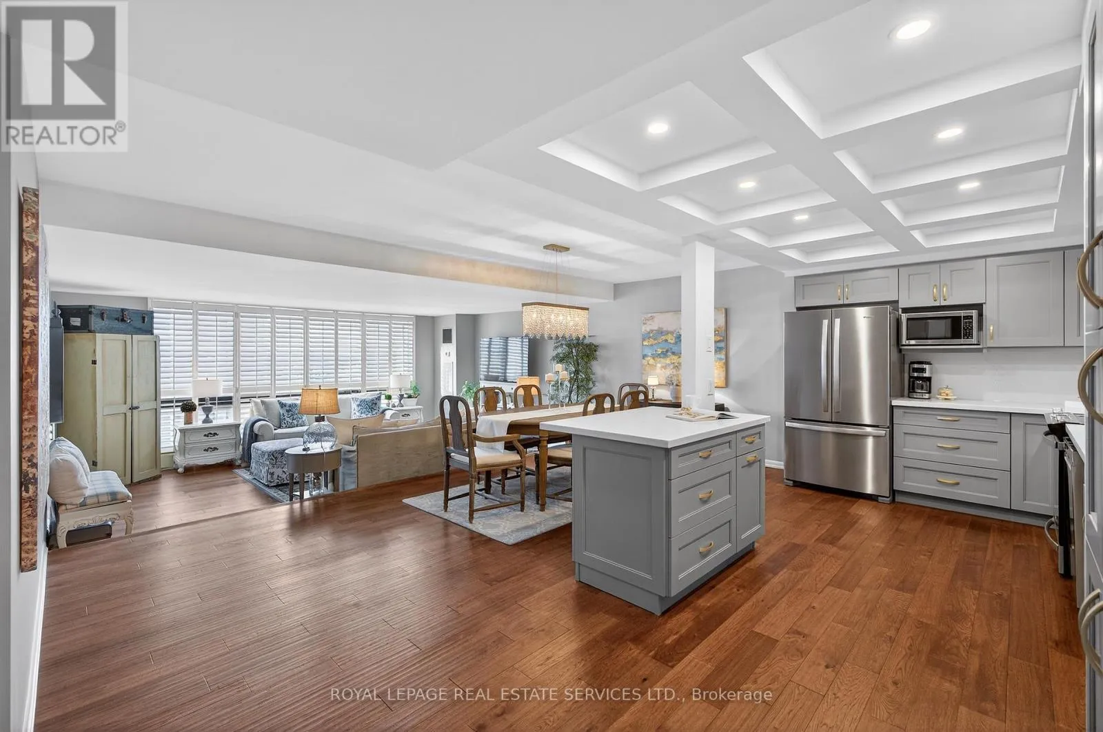 Cross Streets: Third Line and Marine Drive. ** Directions: Lakeshore Road West to Third Line to Marine Drive. Enjoy elevated living in this impeccably updated luxury suite, showcasing sweeping views of Lake Ontario & the Niagara Escarpment. Offering approximately 1,538 sq ft of well-designed living space, this two-bedroom plus den residence boasts a bright, open-concept layout. Featuring hand-scraped, wire-brushed hardwood flooring, upgraded light fixtures & ceiling fans, California-style shutters, floor-to-ceiling windows, smooth ceilings, tasteful neutral décor & much more! Three separate walkouts lead to a generous 160 sq ft balcony, creating seamless indoor-outdoor living with tranquil lake vistas. The heart of the home is the well-appointed designer kitchen boasting a coffered ceiling with pot lights, solid maple cabinetry with pull-out drawers, pantry storage, quartz counters & backsplash, stainless steel appliances & a centre island with breakfast bar. The open dining area flows effortlessly into the oversized living room while the versatile den offers flexibility as a home office or guest space. The primary suite hosts a sitting lounge, a spa-inspired four-piece ensuite & multiple closets. A bright second bedroom with balcony access, gorgeous three-piece guest bathroom & spacious laundry/storage room complete this outstanding condo. Heating & cooling systems updated in 2022. Included are one owned underground parking space & an exclusive-use storage locker. Enjoy extensive building amenities, including an indoor pool, exercise room, saunas, lounge/library, party room, billiards, indoor golf range, woodworking shop, ping pong room, darts & crafts room, social activities & more. Outdoor amenities include stunning gardens with seating areas & a tennis/pickleball court. Dogs not permitted. Situated in the desirable "Ennisclare on the Lake" complex in Bronte Village just steps away from the lake, Bronte Harbour, trails, shopping, amenities, cafes & restaurants. Luxury adult lifestyle living by the lake! VIEW THE 3D IGUIDE VIRTUAL TOUR FOR MORE PHOTOS, FLOOR PLAN & VIDE (id:27476)
