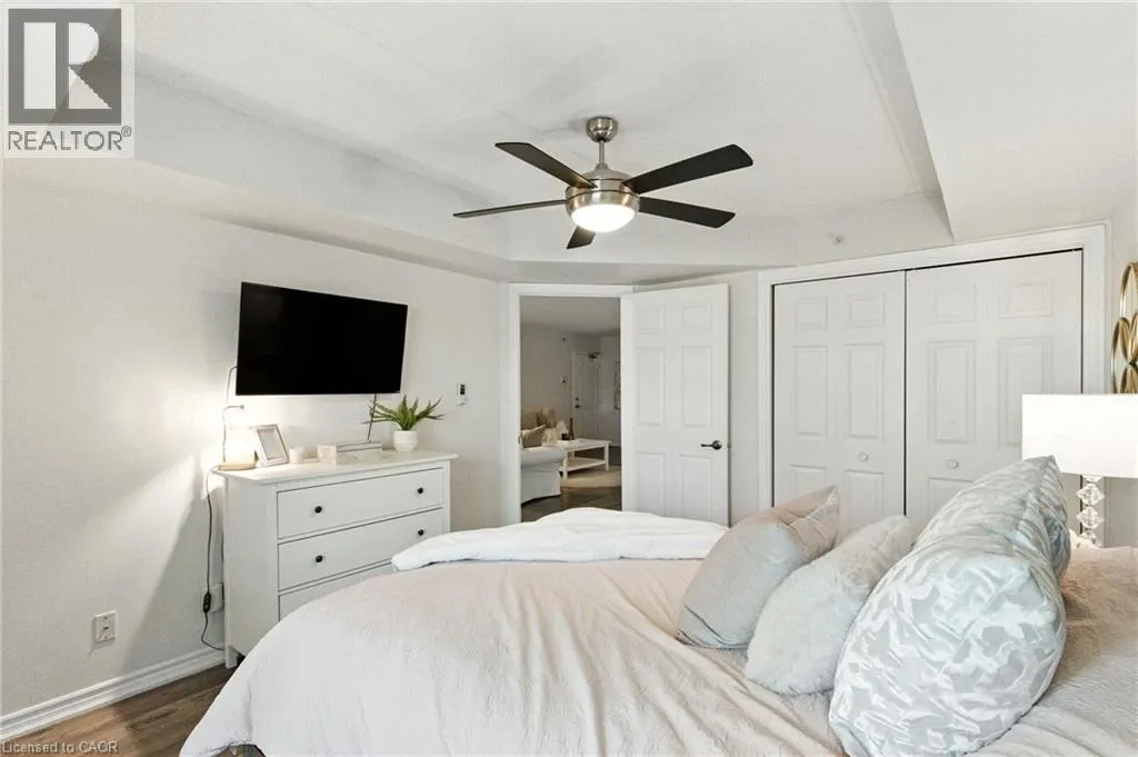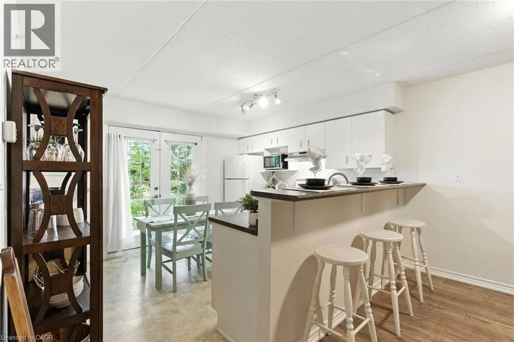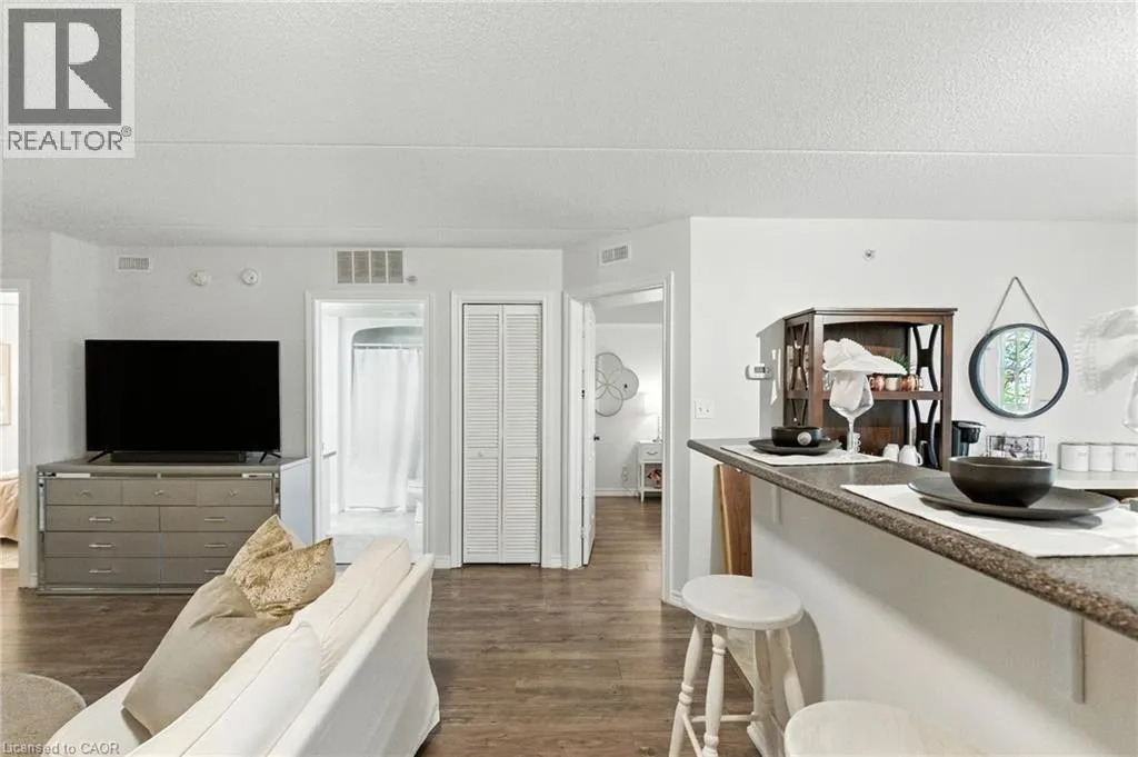 Upper Middle to Bishops Gate Welcome to your serene retreat in the heart of Glen Abbeyâa beautifully updated 2-bedroom, 1-bath condo that blends comfort, style, andeffortless living. Bathed in natural light, this 895 sq. ft. home invites you in with its airy open-concept design. The spacious living and dining areaflows gracefully onto a private balconyâyour own peaceful haven for sunrise coffees or golden-hour evenings under the sky. The modern kitchen,with its generous cabinetry and seamless connection to the main living space, makes every meal feel easy and inspired. Enjoy the everydayluxuries that make life simpler: in-suite laundry, secure underground parking, and a separate storage locker. Indulge in the buildingâs thoughtfulamenitiesâa fitness centre for morning energy, a sauna for evening relaxation, a recreation room for connection, and even a cozy car wash bayready for winter days. Perfectly situated in the sought-after Glen Abbey community, youâre surrounded by parks, trails, top-rated schools, andcharming local shopsâwith easy access to transit and major highways. A turnkey, pet-friendly home where modern convenience meets timelesstranquilityâready for you to fall in love and move right in. (id:27476)
