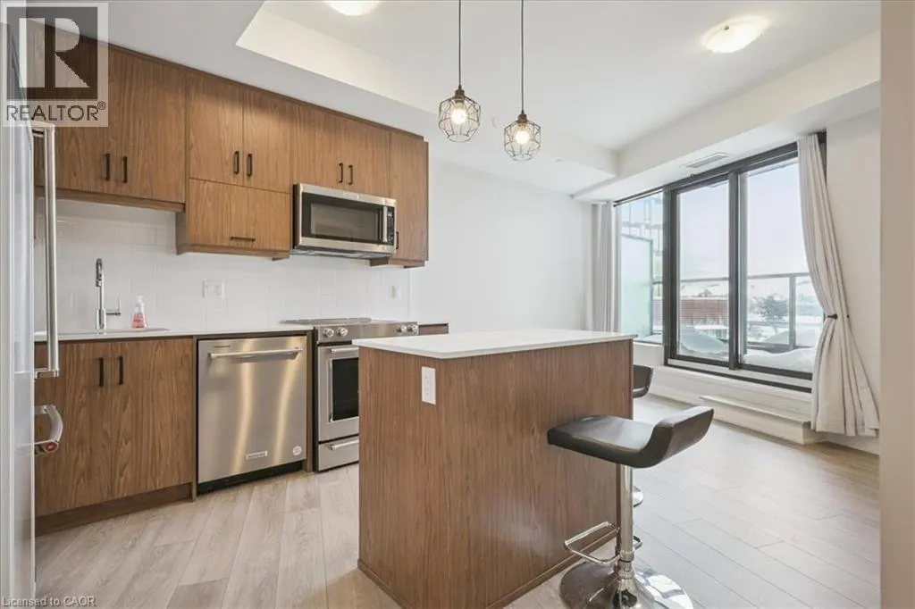 Experience modern living in this brand new luxury 1-bedroom plus den condominium located in the sought-after Upper Joshua Creek neighbourhood of Oakville. The south-facing unit boasts a spacious balcony, providing ample sunlight and an inviting outdoor space. Its excellent open-concept layout is complemented by 9-foot smooth ceilings and stylish laminate flooring throughout. Bedroom: Generously sized with a large closet for ample storage and 4pc ensuite; Kitchen: Equipped with granite countertops, a decorative backsplash, a centre island, and plenty of storage for your culinary needs; Den: Ideal for a home office or study area. Main Bathroom: Contemporary four-piece bath; Laundry: Convenient in-suite laundry with stacked washer and dryer. Located in the heart of Oakville, this residence offers unparalleled convenience. It is close to restaurants, shops, public transit, and major highways such as Highway 403. The property is ideally situated near the Mississauga border and GO Transit, ensuring easy commuting. Upscale shopping and fine dining are just moments away, making this an exceptional place to call home. Additional features: Internet included. One parking space (P2 36) and one locker (P2 279) provided. (id:27476)