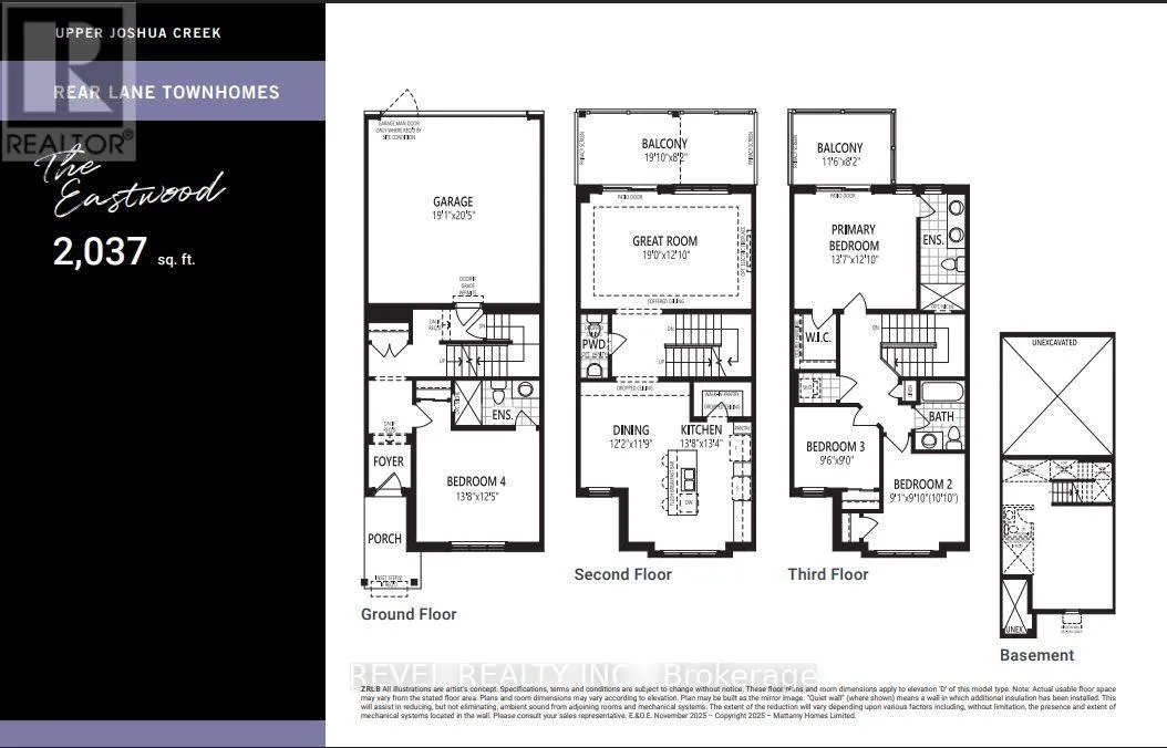 Meadowridge Dr & Wrybill Path Welcome To 3388 Wrybill Path, A Stunning Pre-Construction Rear Lane Townhome Built By Mattamy Homes And Located In The Newly Developed And Highly Sought-After Community Of Joshua Meadows In Oakville. This Eastwood Model With Elevation F Offers 2,037 Sq. Ft. Of Thoughtfully Designed Living Space Spanning Three Levels, Featuring Geothermal Energy Technology In This 4 Bedroom, 3.5 Bathrooms Home. The Main Level Includes A Convenient Bedroom With A 3-Piece Ensuite, Ideal For Guests Or In-Laws, While The Second Level Showcases A Bright, Open-Concept Layout With A Dining Area Overlooking The Modern Kitchen Complete With A Centre Island And Walk-In Pantry. The Spacious Great Room Provides The Perfect Setting For Entertaining, Offering A Walkout To The Balcony And A Convenient 2-Piece Bathroom To Complete The Level. Upstairs, The Primary Suite Features A Walk-In Closet And A 4-Piece Ensuite, Accompanied By Two Additional Well-Appointed Bedrooms, A 4-Piece Main Bathroom, And Upper-Level Laundry For Added Convenience. The Unfinished Basement Presents A Blank Canvas To Create Additional Living Space Tailored To Your Needs. Ideally Situated In An Up-And-Coming Neighbourhood Close To Parks, Schools, Shopping, And All Of Oakville's Amenities, With Easy Access To Major Highways For A Seamless Commute, This Is A Fantastic Opportunity To Own In One Of Oakville's Most Desirable New Communities. **Eligible First Time Home Buyers may be able to receive up to an additional 13% savings on the purchase of this home through the proposed Government FTHB Rebate Program** (id:27476)