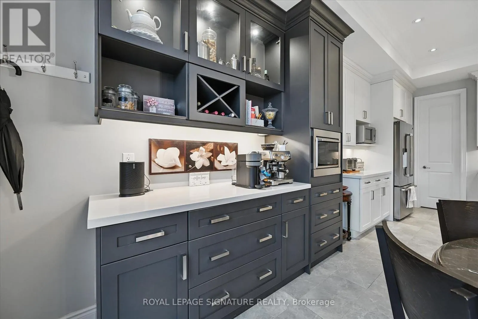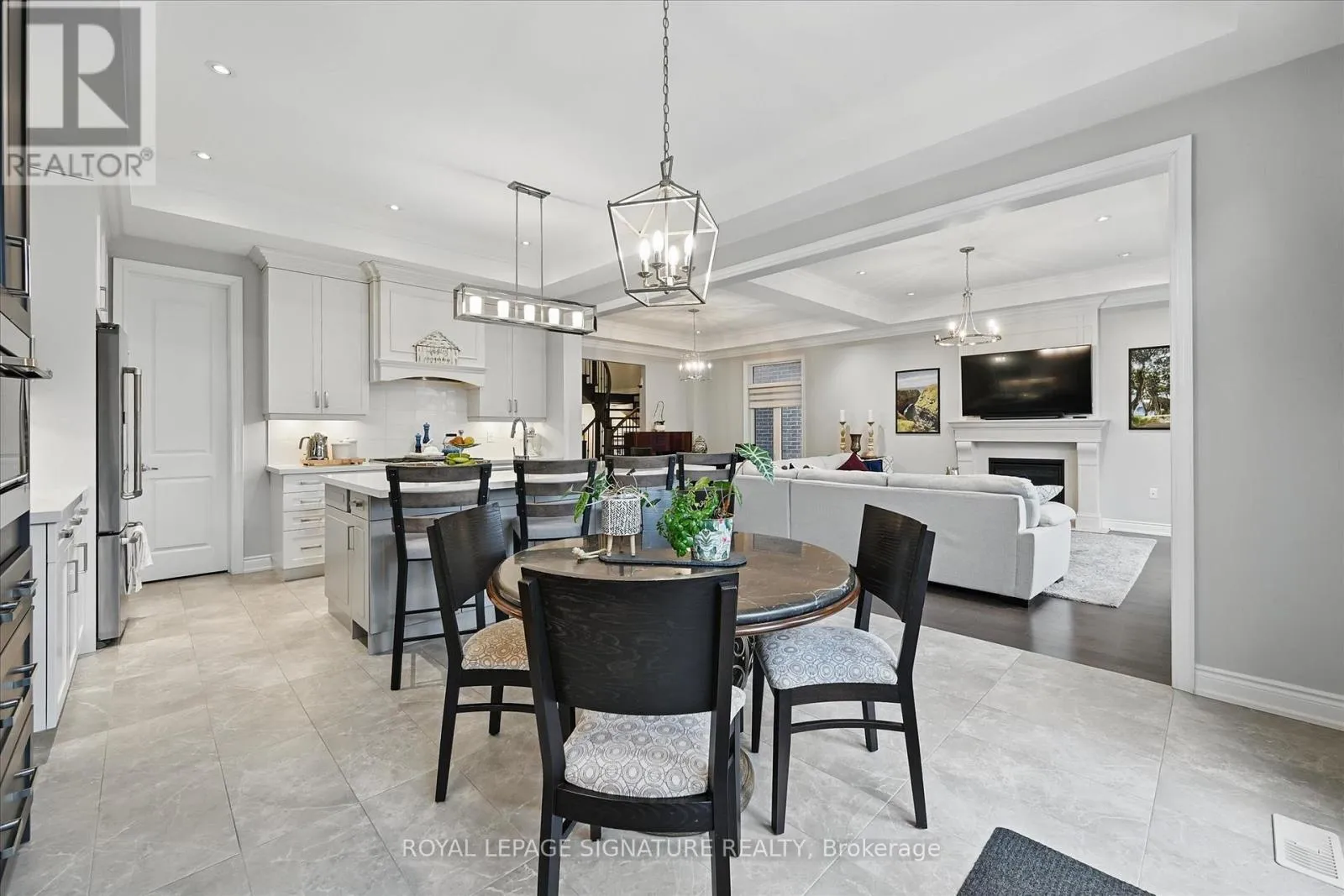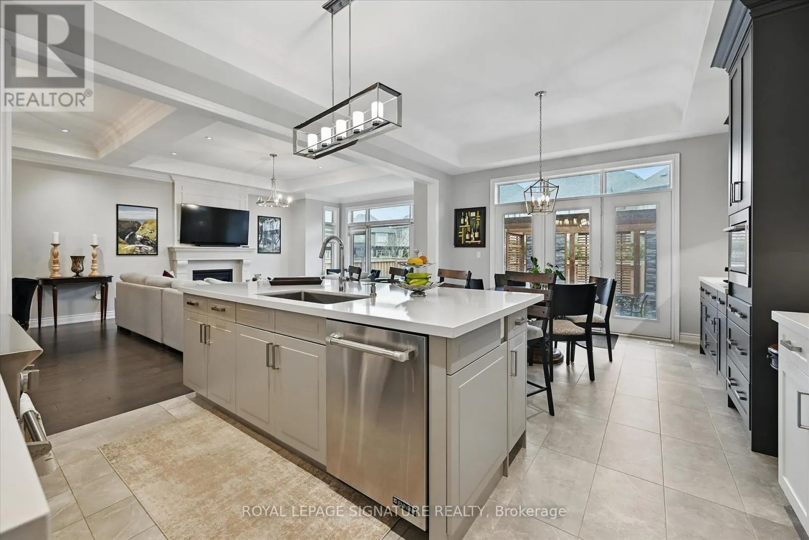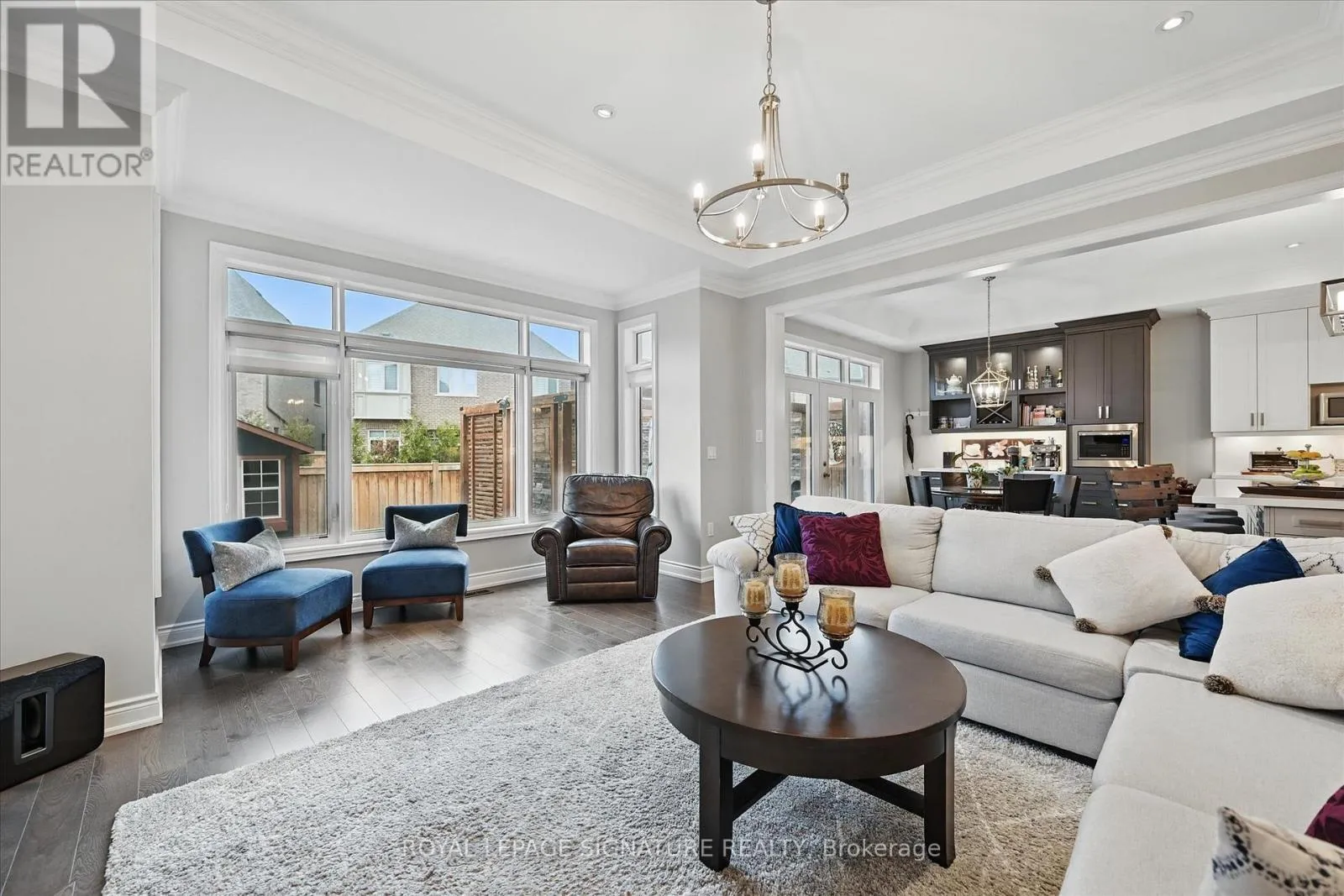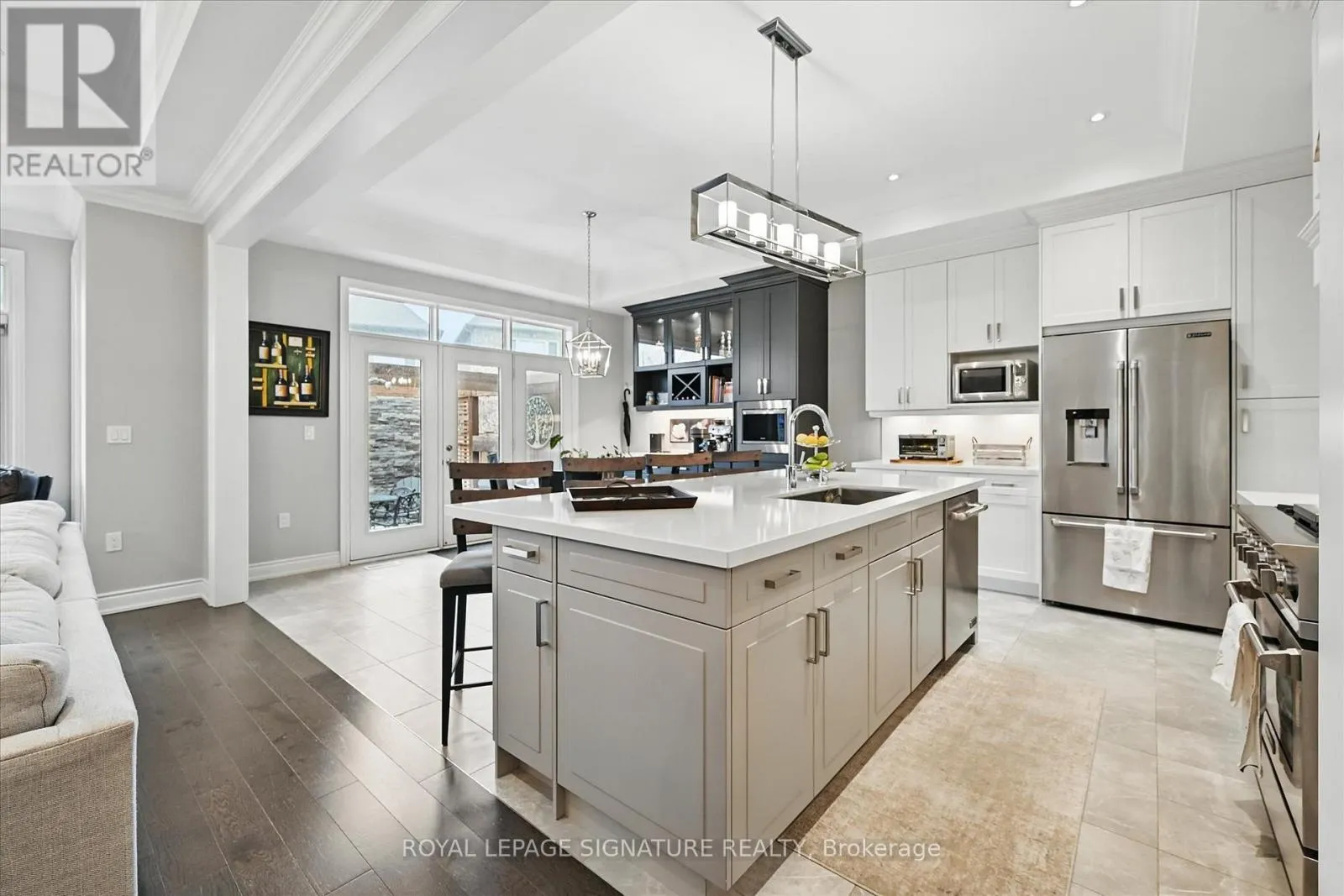 Post Rd/Dundas St An Exceptional Fernbrook Carnegie Model in the Prestigious Glenorchy Community, ideally situated across from a beautiful park. This elegant 4+1 bedroom, 5-bath residence offers 2,963 sq. ft. of refined living space above grade, plus a professionally finished basement. Built in 2018, the home showcases a striking stone and stucco exterior and premium upgrades throughout. The open-concept design features 10-foot ceilings on the main level, coffered ceilings, and a chef-inspired kitchen with quartz countertops, high-end appliances, a large island, and custom coffee bar. The upper level offers four spacious bedrooms with ensuite or semi-ensuite access, including a luxurious primary suite with spa-like ensuite and walk-in closet. The finished basement includes a recreation area, fireplace, bar, additional bedroom, and full bath. Enjoy a beautifully landscaped backyard with a custom pergola, all in a sought-after location close to top schools, trails, shopping, and transit. (id:27476)