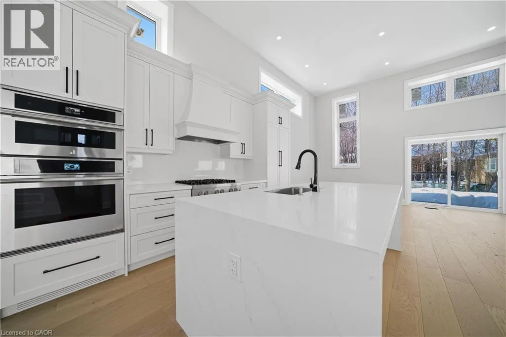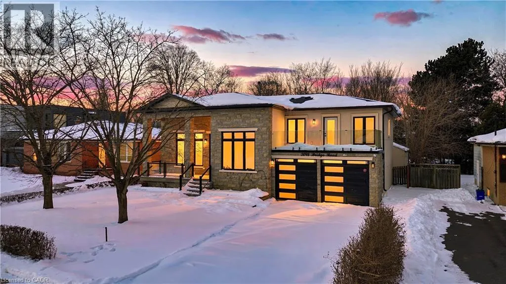 Third Line and Bridge Road Welcome to an exceptional and spectacular home in the prestigious sought-after Bronte neighbourhood, where architectural elegance meets modern luxury. Soaring 14-foot ceilings on the main level create a striking sense of grandeur, complemented by expansive windows that flood the home with natural light. The thoughtfully designed main floor offers three spacious bedrooms and two full bathrooms, while the private primary retreat is elevated on a second-floor loft. The open-concept living, dining, and kitchen spaces are ideal for both everyday living and upscale entertaining. The designer kitchen features premium built-in JennAir appliances, crisp white cabinetry, quartz countertops, an oversized centre island, custom pantry storage, and a discreet computer niche. The primary suite is a true sanctuary, showcasing a spa-inspired 5-piece ensuite, a generous walk-in closet, and a rare walkout to a glass-enclosed balcony overlooking the front yard. A fully finished basement enhances the homeâs versatility, offering two bedrooms, two full bathrooms, Stainless Steel Appliances, separate laundry, and a private entrance. Step outside to a beautifully extended family room leading to a large deck with sleek glass railingsâperfect for refined outdoor entertaining. A well-insulated workshop/storage shed completes the backyard retreat. Ideally located near QE Community Park, top schools, Bronte Harbour, Bronte GO Station, and major highways.**Virtually Staged Pictures** (id:27476)