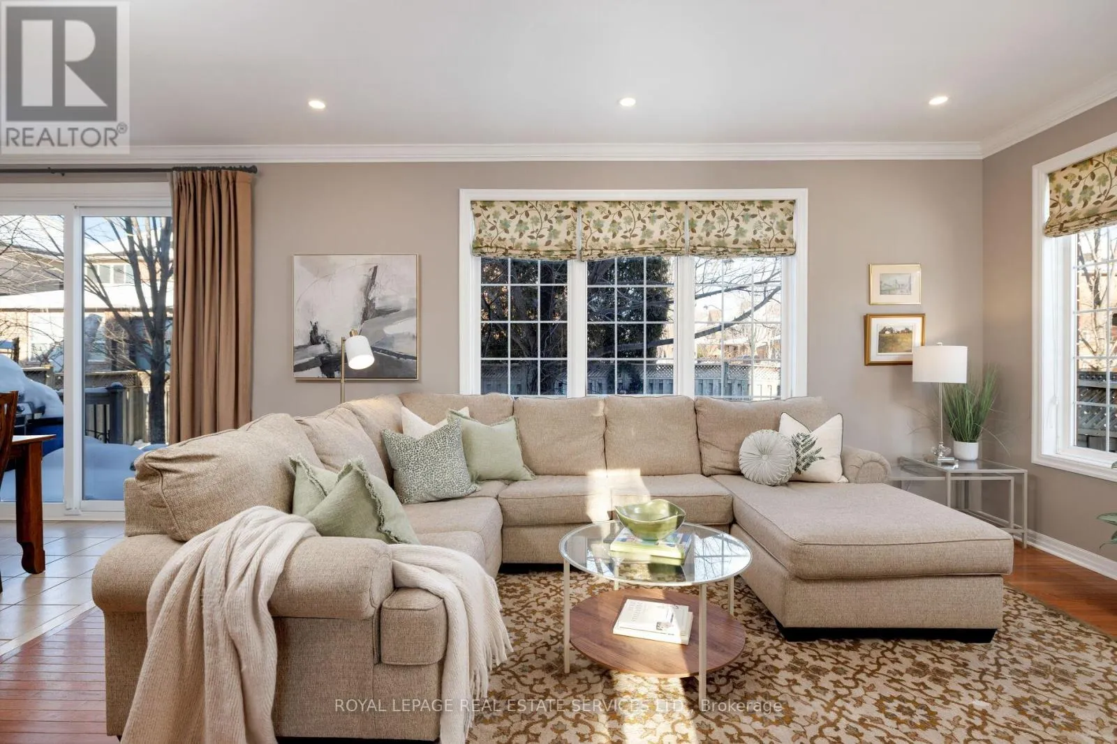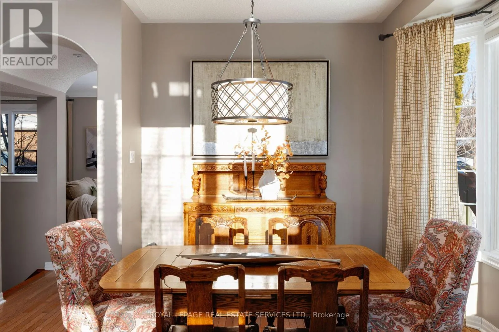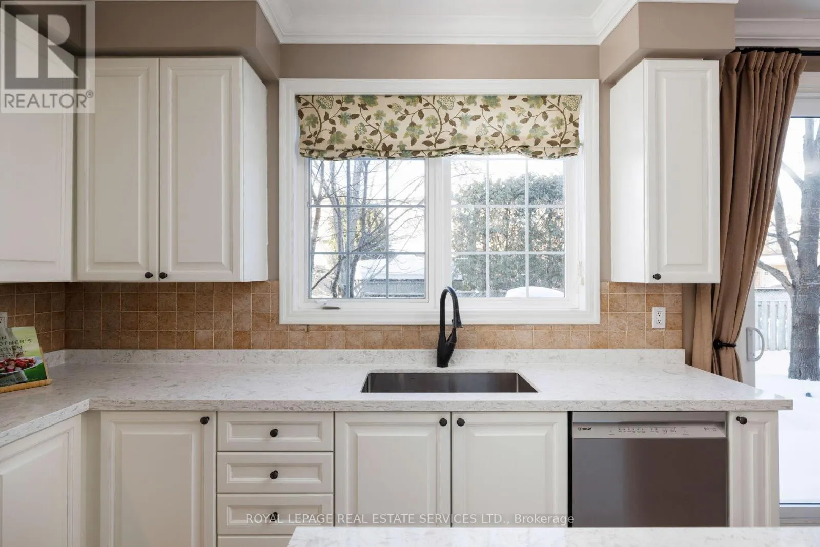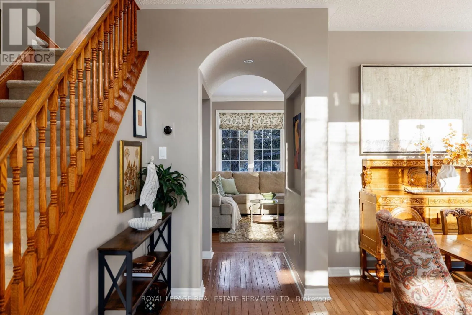Third Line-Pine Glen Rd- Oakhaven Dr Beautifully maintained and updated Mattamy-built 'St Andrews' model home for sale in Oakville, ideally located on a private, pool-sized corner lot in the highly sought-after West Oak Trails community. Set within a top-rated school catchment with several schools within walking distance, and surrounded by parks, playgrounds, and scenic trails, this is an ideal family-friendly neighbourhood. Minutes to Oakville Trafalgar Memorial Hospital, shopping, dining, and everyday amenities, with quick access to the QEW, 407ETR and GO Station for commuters. Professionally landscaped grounds feature mature trees, lush gardens, an interlocking stone walkway (2017), and a fully fenced backyard oasis with landscape lighting, a large deck and lower patio-perfect for outdoor entertaining. This bright home offers 4 bedrooms, 2.5-bathrooms and an elegant, yet functional floor plan with oversized wi 9-foot ceilings, hardwood flooring, crown mouldings, and added pot lights. Upgraded model with dining room bay window, Palladian window in loft plus 6 additional south facing windows. A dramatic two-storey living room flows into the dining area, while the redesigned family room (2017) features a gas fireplace, custom built-ins, and serene backyard views. The updated kitchen (2025) showcases refaced cabinetry, quartz countertops, stainless steel appliances, pull-out organizers, and a generous breakfast area with a walkout. Upstairs includes a loft with a cathedral ceiling, four spacious bedrooms, and two luxurious bathrooms, including the primary suite with a renovated 5-piece ensuite (2020) featuring a freestanding soaker tub and glass shower. The immaculate lower level offers potential for additional living space and has a rough-in for a future bathroom. The list of improvements is extensive, making this home move-in ready with exceptional long-term value in one of Oakville's most desirable neighbourhoods. (id:27476)