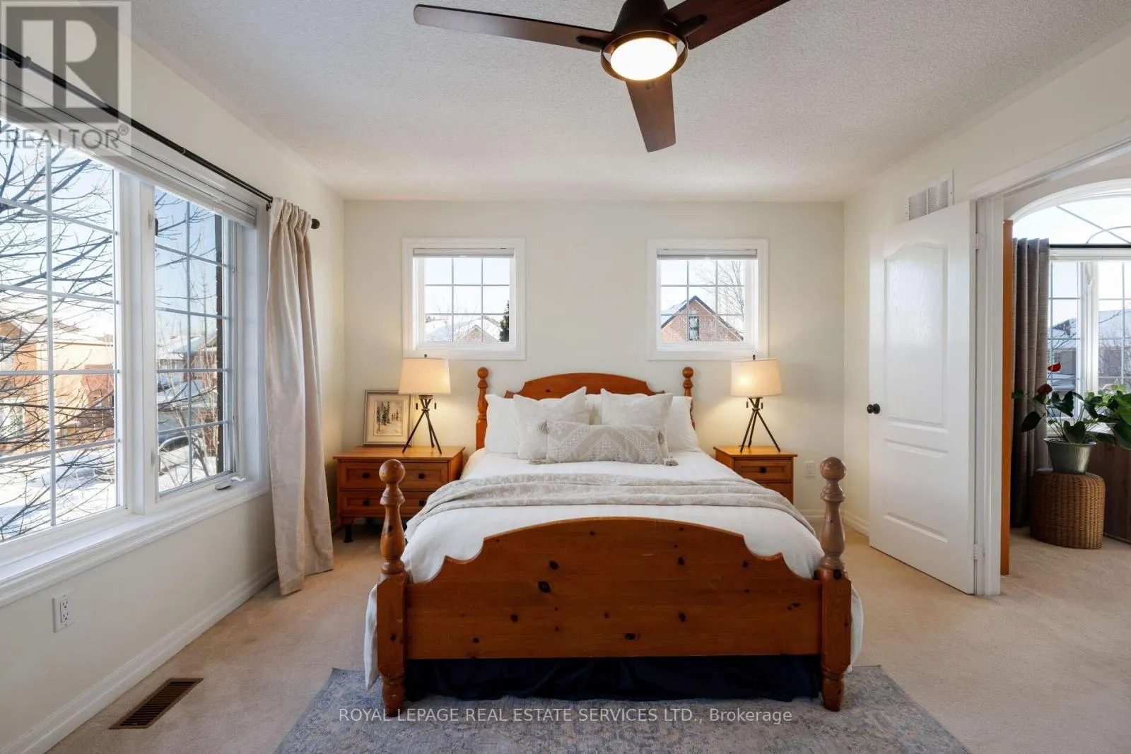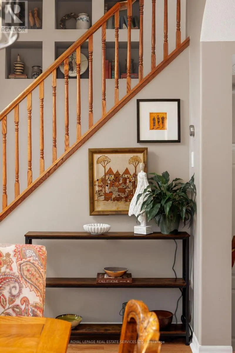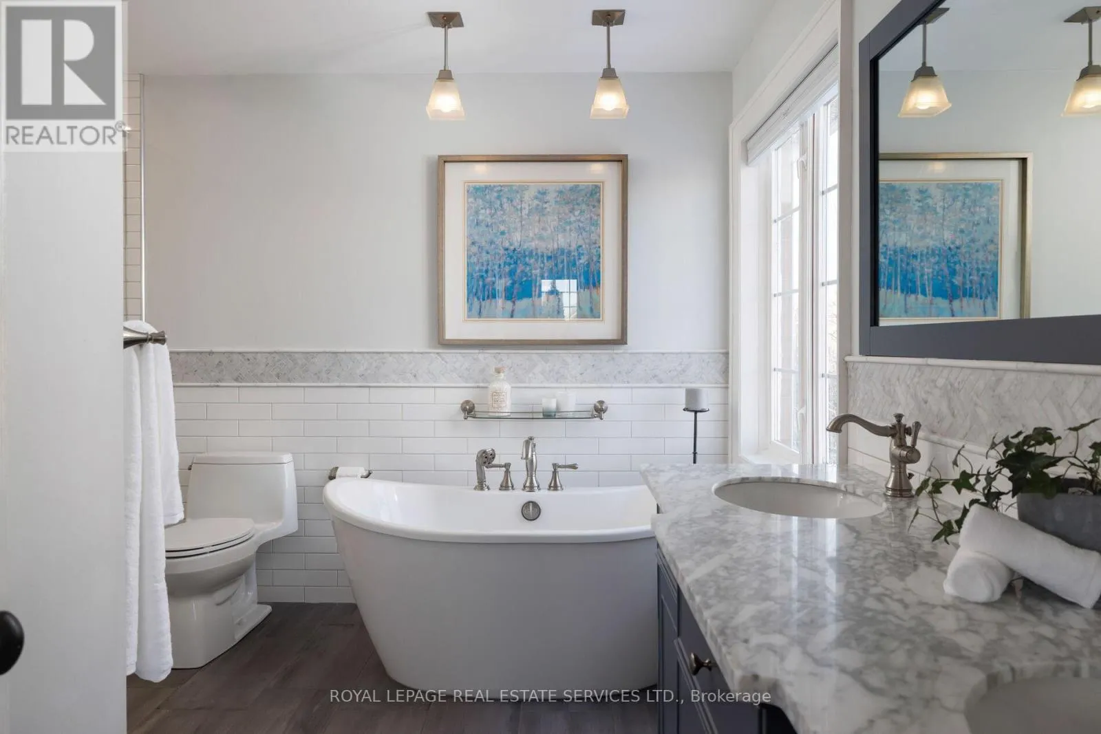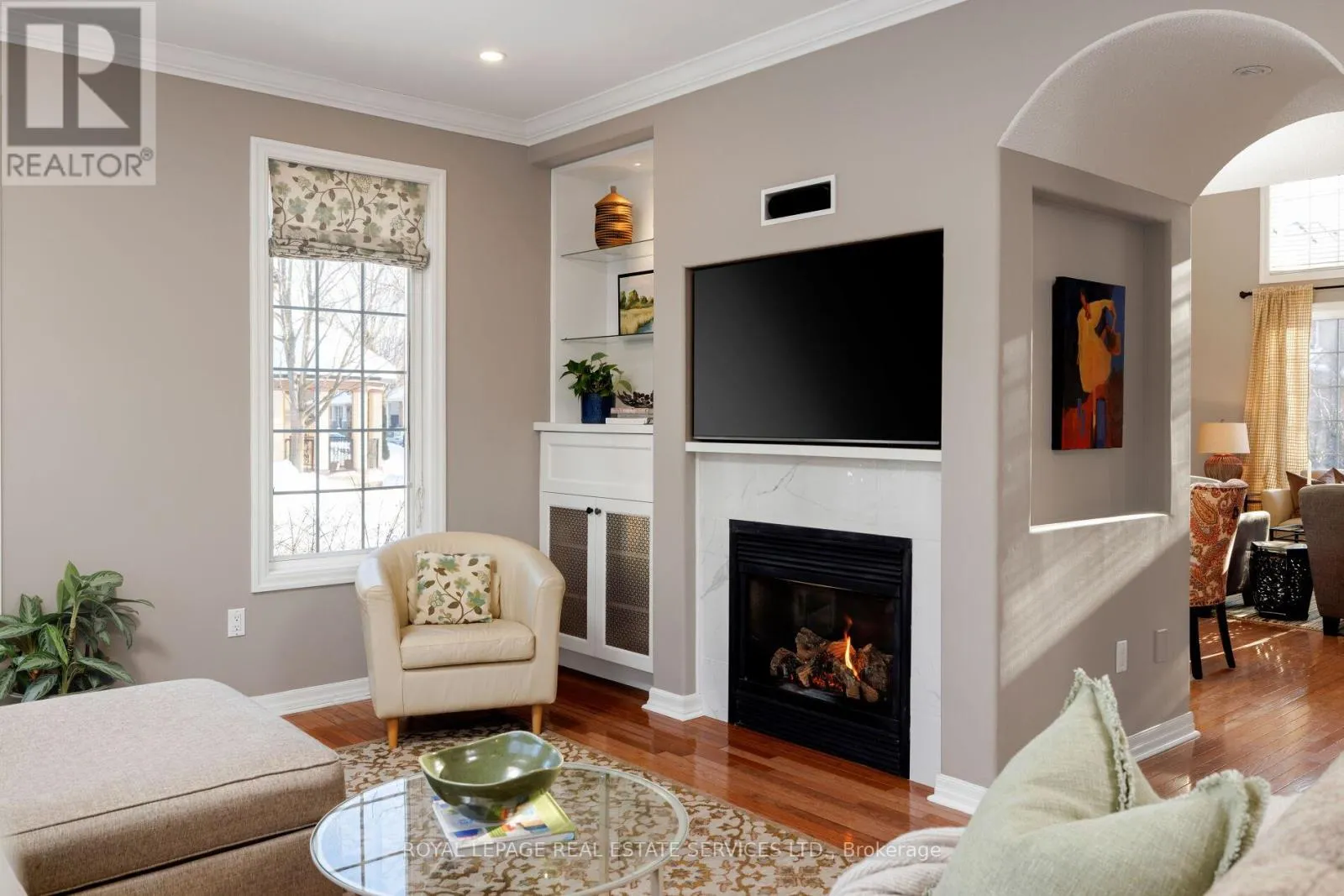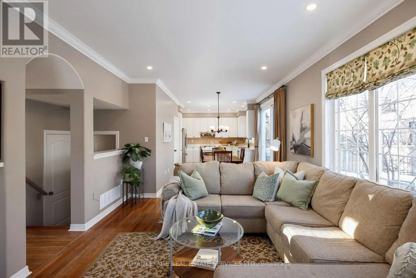 Third Line-Pine Glen Rd- Oakhaven Dr Beautifully maintained and updated Mattamy-built 'St Andrews' model home for sale in Oakville, ideally located on a private, pool-sized corner lot in the highly sought-after West Oak Trails community. Set within a top-rated school catchment with several schools within walking distance, and surrounded by parks, playgrounds, and scenic trails, this is an ideal family-friendly neighbourhood. Minutes to Oakville Trafalgar Memorial Hospital, shopping, dining, and everyday amenities, with quick access to the QEW, 407ETR and GO Station for commuters. Professionally landscaped grounds feature mature trees, lush gardens, an interlocking stone walkway (2017), and a fully fenced backyard oasis with landscape lighting, a large deck and lower patio-perfect for outdoor entertaining. This bright home offers 4 bedrooms, 2.5-bathrooms and an elegant, yet functional floor plan with oversized wi 9-foot ceilings, hardwood flooring, crown mouldings, and added pot lights. Upgraded model with dining room bay window, Palladian window in loft plus 6 additional south facing windows. A dramatic two-storey living room flows into the dining area, while the redesigned family room (2017) features a gas fireplace, custom built-ins, and serene backyard views. The updated kitchen (2025) showcases refaced cabinetry, quartz countertops, stainless steel appliances, pull-out organizers, and a generous breakfast area with a walkout. Upstairs includes a loft with a cathedral ceiling, four spacious bedrooms, and two luxurious bathrooms, including the primary suite with a renovated 5-piece ensuite (2020) featuring a freestanding soaker tub and glass shower. The immaculate lower level offers potential for additional living space and has a rough-in for a future bathroom. The list of improvements is extensive, making this home move-in ready with exceptional long-term value in one of Oakville's most desirable neighbourhoods. (id:27476)