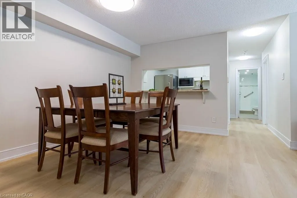 Third Line to Glen Abbey complex on Right Welcome to unit 913-1450 Glen Abbey Gate, a beautifully renovated condo nestled in the vibrant community of Oakville, ON. This property is the epitome of elegance and comfort, offering 1,098 square feet of living space featuring 3 bedrooms and 1.5 bathrooms. From the moment you enter, professionally curated updates shine-anchored by stunning light hardwood flooring that brings effortless sophistication to every corner of the home. The ensuite laundry offers convenience for everyday living. The kitchen boasts new shaker style cabinets fronts and ceramic flooring which perfectly complements the stylish aesthetic of the entire house. Both bathrooms are thoughtfully designed with accessibility features such as lever faucets, a custom shower, grab bars and Bluetooth mirrors adding modern touches while ensuring ease-of-use for all. Enjoy the warmth from the wood-burning fireplace during cool evenings or relax on your private patio overlooking a lovely green space-an ideal spot for outdoor relaxation or entertaining guests. This home also comes with an exclusive parking spot right in front of the building with a ramp to the automatic front door. Additional parking available for a small monthly fee. Plenty of guest parking is just across from the building make it easy for family and friends it visit. A private storage locker beside the exclusive patio provides additional room for your belongings. Every corner of this home is filled with light thanks to new window blinds throughout-paired with fresh paint and all-new light fixtures, it creates a bright and welcoming atmosphere. The location further enhances the appeal of this home. Oakville is known for its great schools and robust selection of amenities. From shopping centers to parks, local eateries to entertainment venues-everything you need is within reach. Whether you're looking to enjoy a meal out or spend time in nature at one of the nearby parks, there's something for everyone in Oakville. RSA (id:27476)