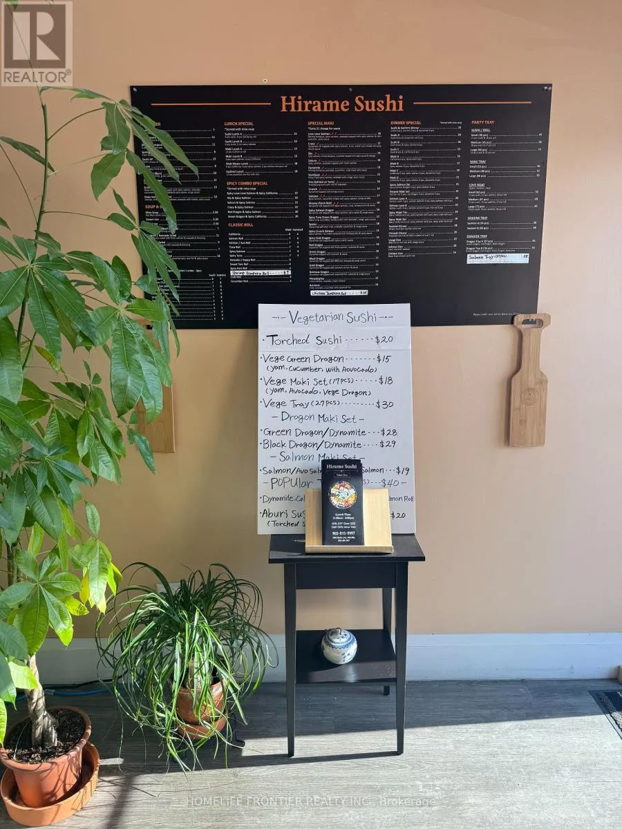 Cross Streets: Sixth Line & River Oaks Blvd E. ** Directions: 0. Highly rated Hirame Sushi with Google 4.9-star reviews is now offered for sale. Well-established sushi takeout restaurant with a strong local reputation and repeat clientele. Indoor seating + outdoor patio seating available. Attractive monthly rent: $1,923.15 (incl. TMI & HST). Water and gas are included in the lease. Great opportunity for an owner-operator or experienced restaurateur to step into an operating business in a desirable neighborhood. Confidential sale-do not approach staff. All showings by appointment only. Financials and lease details are available for qualified buyers upon signing an NDA. (id:27476)