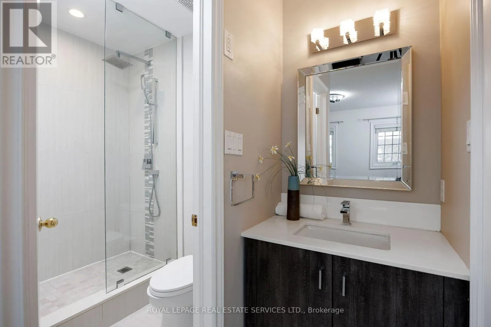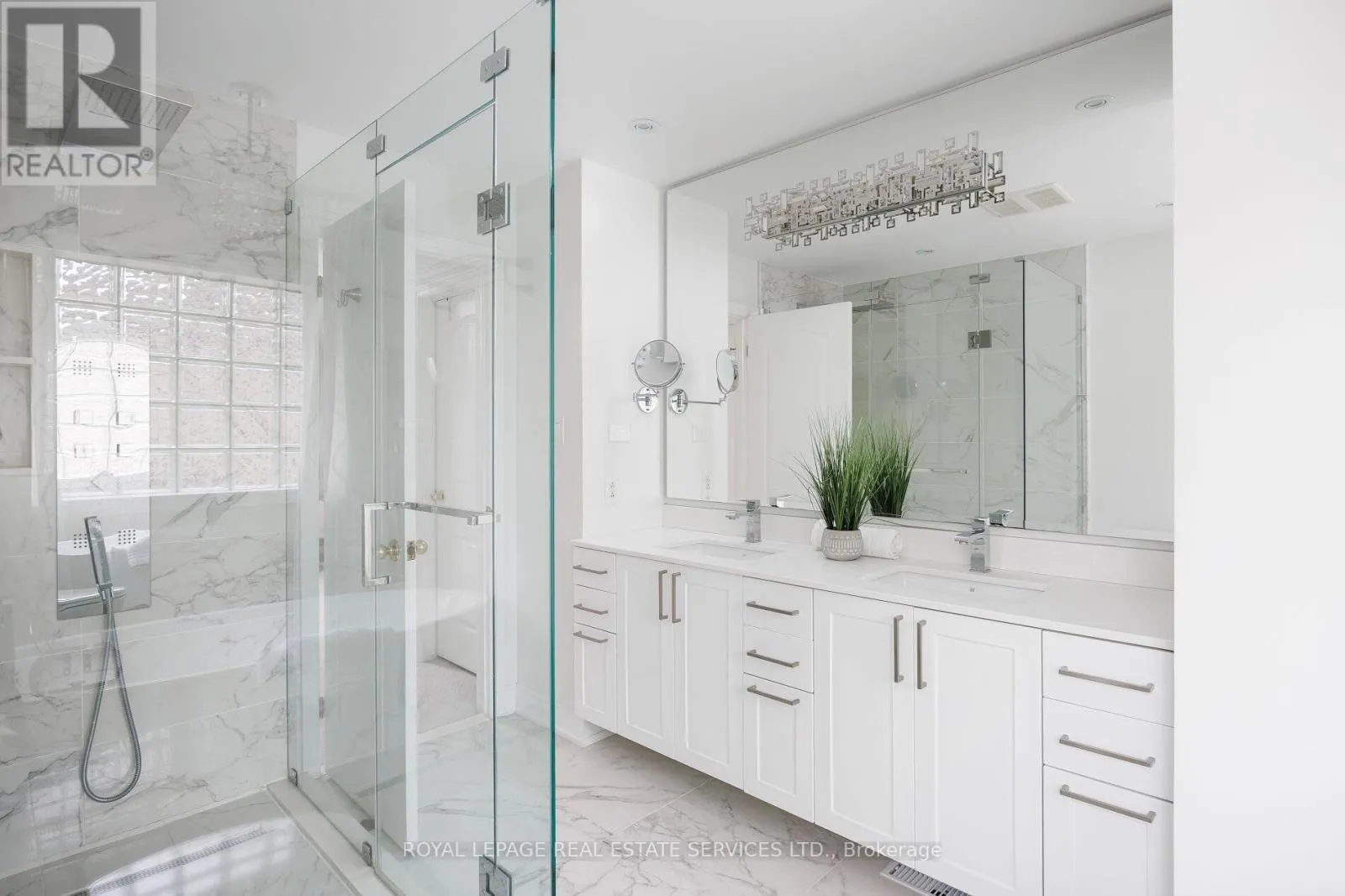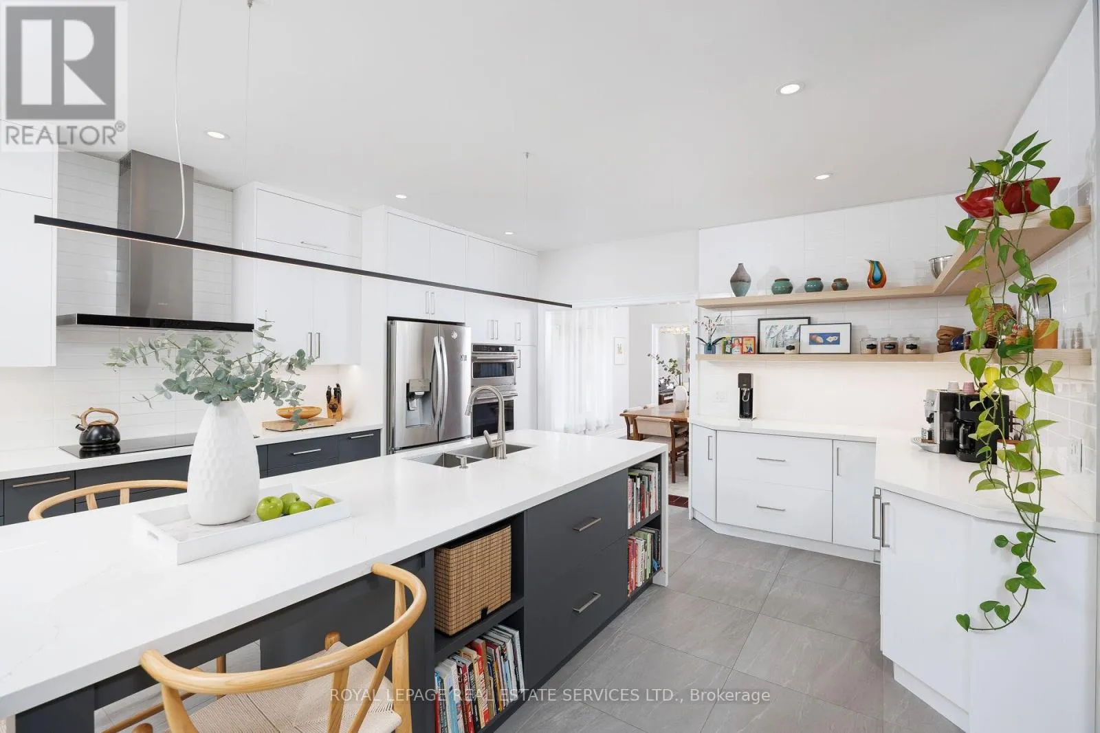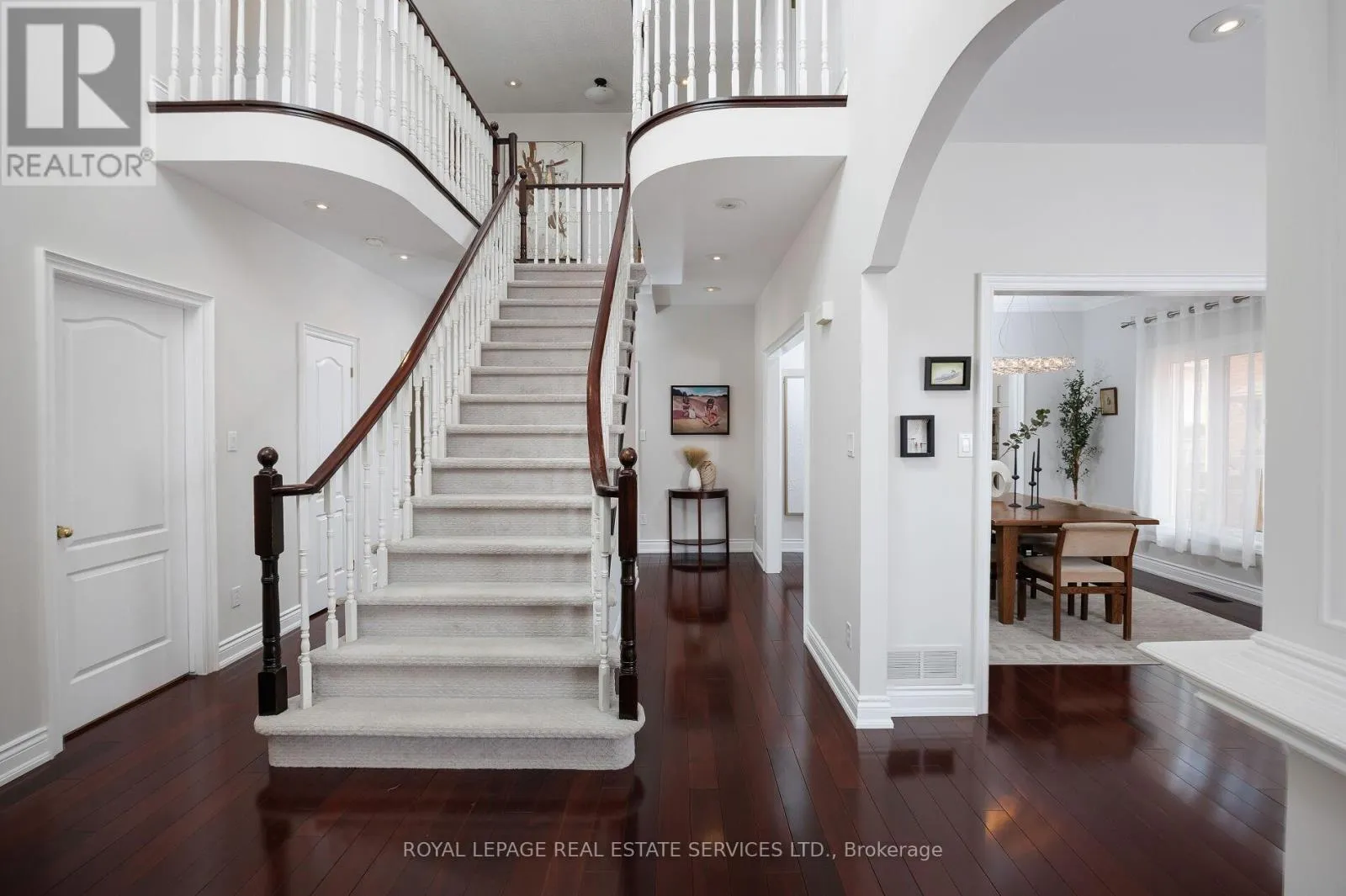 Cross Streets: Summit Ridge & Westoak Trails. ** Directions: Upper Middle - Westoak Trails- Summit Ridge. Experience the pinnacle of refined living in one of West Oak Trails most sought-after enclaves of executive homes blending upscale comfort with the tranquillity of nature. Embraced by the lush woodlands of the 16 Mile Creek ravine & within walking distance to the Glen Abbey Golf Club, highly-ranked schools, neighbourhood parks & just minutes from the Oakville Hospital, shopping, restaurants & highways, making the perfect balance of serenity & convenience. Curb appeal abounds with mature, professional landscaping, and an expansive interlocking stone driveway leading to a rarely offered 3-car garage with inside entry. The sun-soaked backyard, perfect for outdoor entertaining, features a brand-new stone patio (2024) & provides a serene retreat. Step inside this beautifully updated 4+2 bedroom, 4.5-bathroom home, where timeless elegance meets modern design. Highlights include hardwood flooring, 9 main floor ceilings, & a stunning Scarlet OHara staircase that sets the tone for the entire home. The formal living room, with its soaring cathedral ceiling, flows effortlessly into a sophisticated dining area with classic crown mouldingsideal for hosting elegant dinner parties. The stunning renovated kitchen (2022) boasts sleek modern cabinetry, quartz countertops, premium stainless steel appliances, & a walkout to the private patio. The spacious family room offers a cozy haven to relax, while the dedicated home office makes working remotely a breeze. Upstairs, the luxurious primary suite is a private sanctuary featuring a spa-inspired 5-piece ensuite complete with a freestanding soaker tub & a frameless glass shower. The professionally finished basement adds incredible versatility, featuring a generous recreation room with a gas fireplace, a vast open-concept area ideal for configuring to suit your lifestyle, a fifth bedroom with access to a 3-piece bath, & a home gym or potential sixth bedroom. (id:27476)