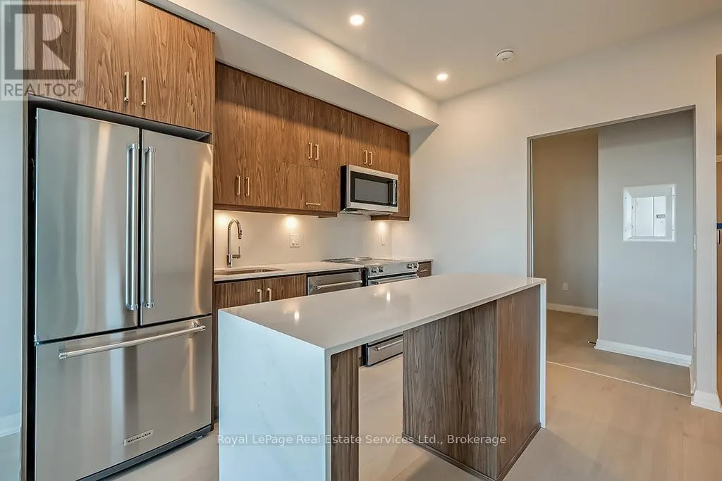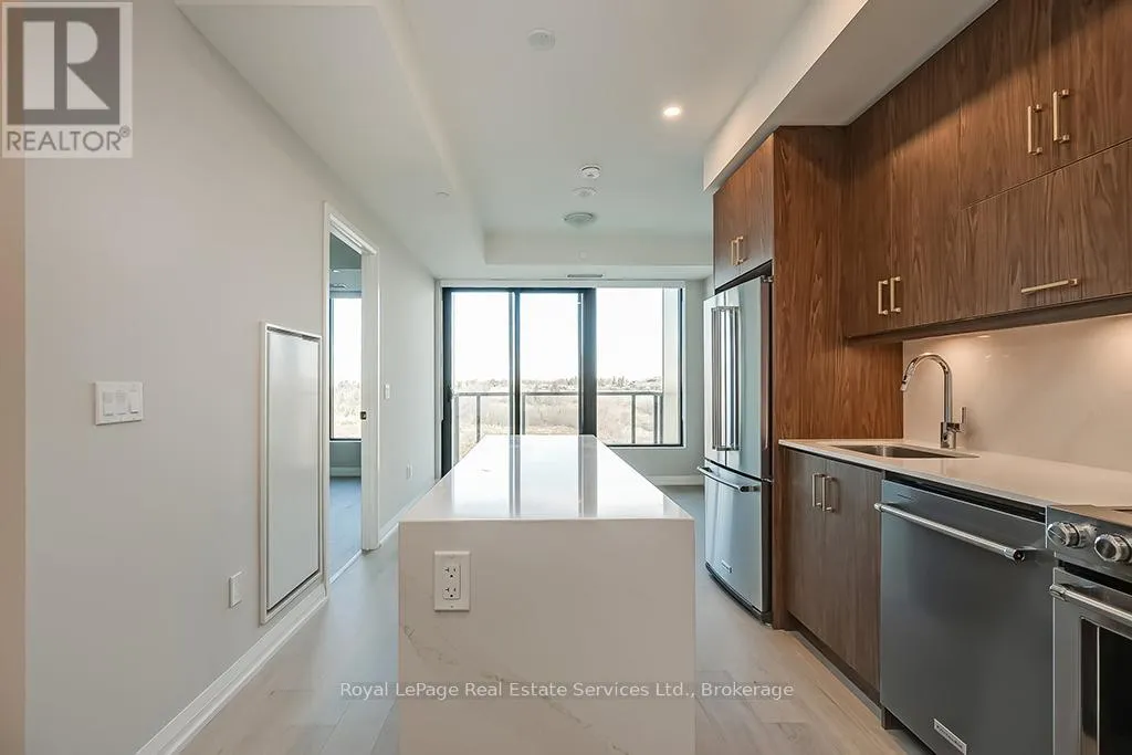 Dundas St E, West of Ninth Line Beautiful 2 Bed, 2 Bath Condo in Mattamys Clockwork. Discover Modern Living in this Stunning Condo with almost $50k in Upgrades. Featuring an open-concept layout with hardwood flooring throughout, custom window treatments, soaring 9 ft ceilings, and an abundance of natural light. The sleek kitchen boasts contemporary cabinetry, stainless steel appliances, granite countertops, and a center island with storage and seating. Step into the living room, which opens to a private balcony overlooking a serene pond. The spacious primary bedroom is a retreat with large windows, ample closet space, and a luxurious 3-piece ensuite with a glass-enclosed shower. The unit also includes a second bedroom, a 4-piece bath, and a convenient in-suite laundry with stackable washer and dryer. Access to top tier building amenities including a state-of-the-art home smart home system (1VALET), Gym, Party/Meeting Room, Pet Spa + Rooftop Patio. 1 Underground Parking Spot + 1 Locker included! Tenant only responsible for Hydro + Water- internet is included in the rent! Located just minutes from highways, Oakville Hospital, trails, parks, shopping, and other amenities, this condo offers unparalleled convenience. (id:27476)