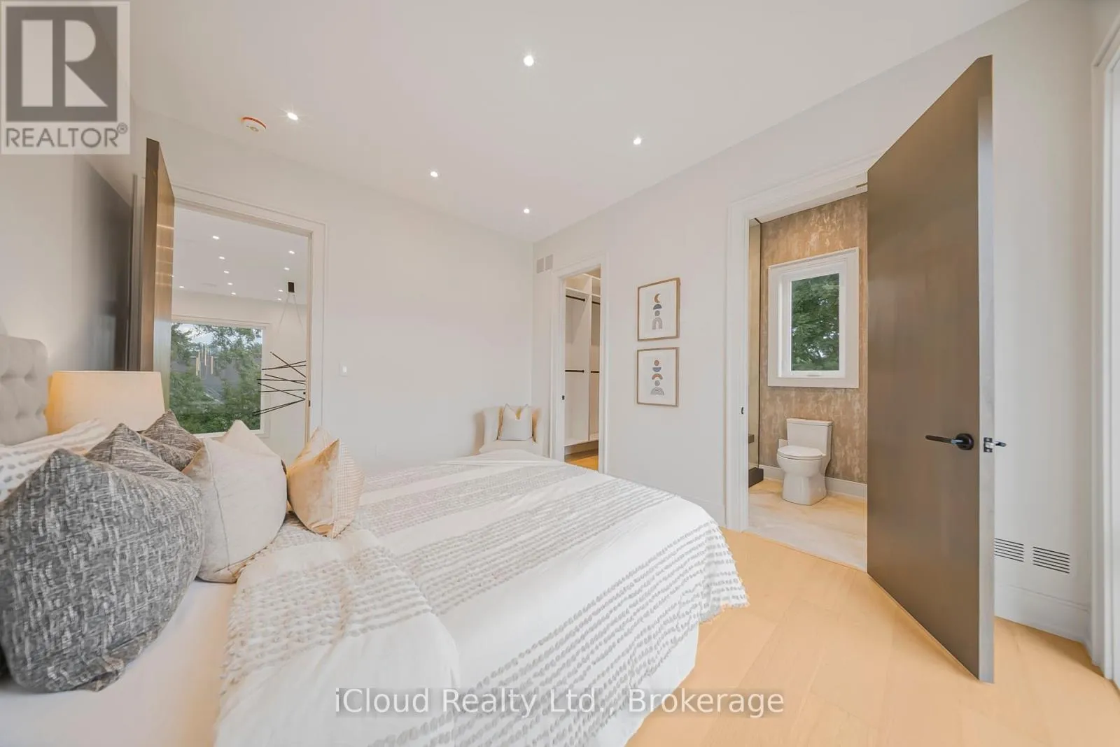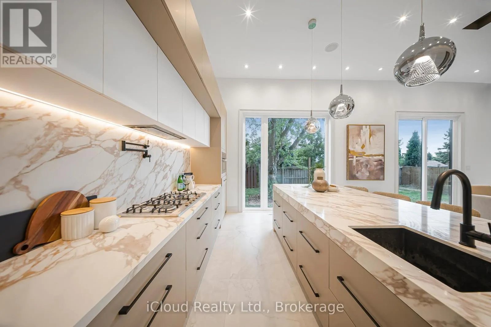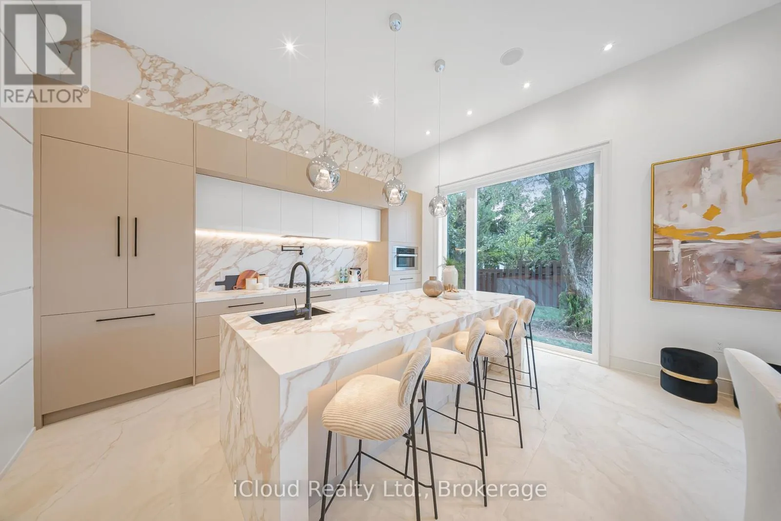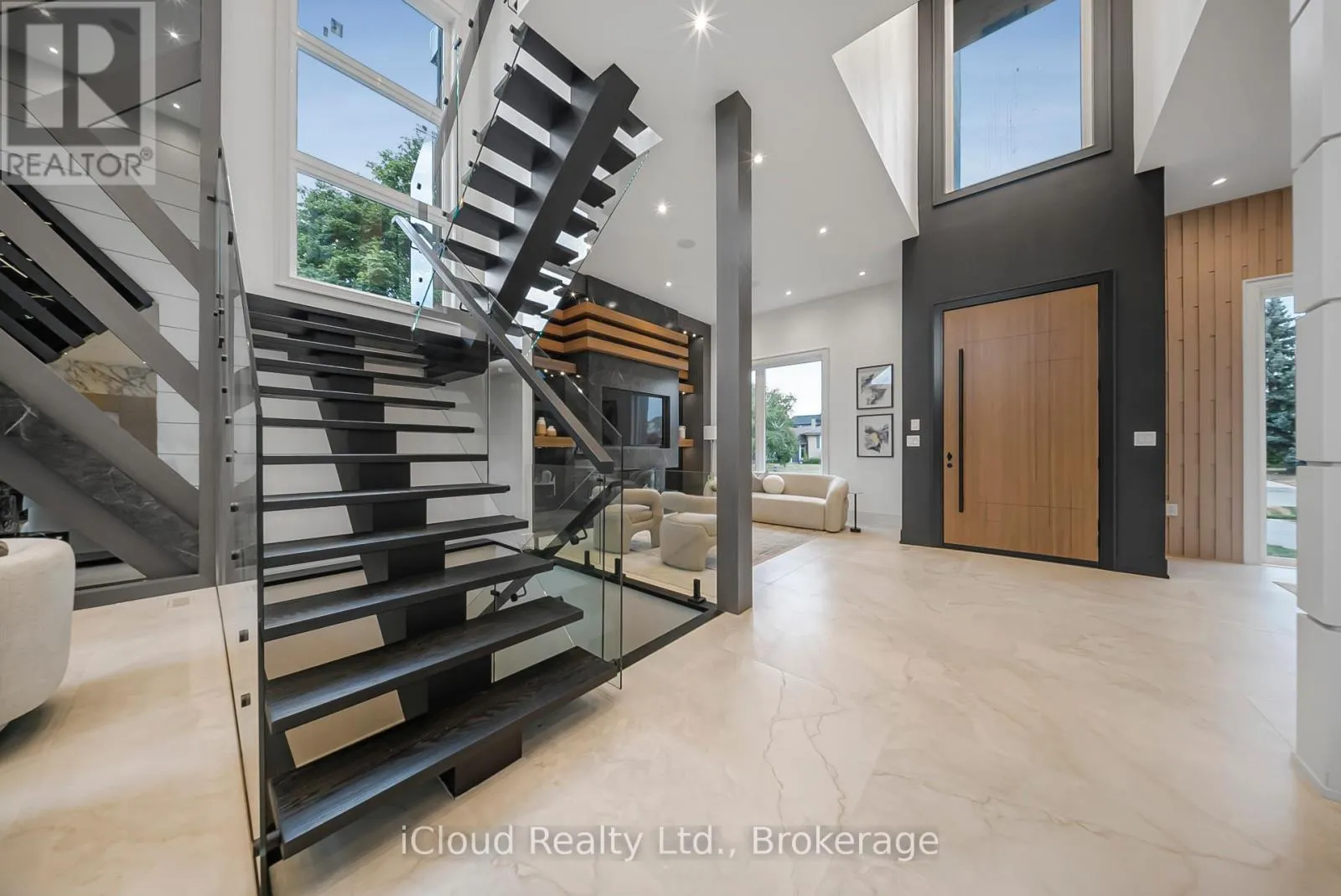 Rebecca And Sherin This newly built modern custom home offers over 5000 sqft. of lavish living space. Whether you're commuting, enjoying the outdoors, or raising a family, this location on a quiet street of Oakville offers the perfect balance of convenience and lifestyle. This elite modern home is design and built by Zarina Construction. As you step through the oversized front door, you're welcomed by a dramatic 23-ft foyer with heated Italian tile flooring that flows through the main level. The main level features a private home office, an elegant living room with a stunning marble, wood, and mirror accent wall, and a breathtaking open-to-above family room. Anchored by a custom diamond-pattern feature wall and a double-sided Dimplex fireplace, large windows, this space is the heart of the home -open, bright, and welcoming.The gourmet kitchen is a chefs dream, offering a spacious island, custom cabinetry, and built-in Miele appliances. A separate spice kitchen keeps bold flavors contained and the main kitchen spotless. The layout flows seamlessly into a formal dining area with a walkout to the fully fenced backyard.Upstairs, you will find four generous bedrooms, each with its own ensuite bathroom featuring custom floating vanities, integrated sinks, heated tile flooring, and calming finishes. The primary suite is a luxurious retreat with a custom walk-in closet and a spa-like 5-piece ensuite with a freestanding tub, curbless shower, and dual vanities. A laundry room on this floor adds convenience.The finished basement offers 11.5-ft ceilings, a bright open rec area, a second kitchen, two bedrooms with a shared bath, and for the ultimate movie night experience, there's a dedicated theatre room fully equipped with 4 dedicated speakers for a true cinematic experience. This home also includes 16 built-in speakers throughout. With a basement walkout and large windows bringing in natural light. This home is a reflection of modern luxury tailored to your lifestyle. (id:27476)