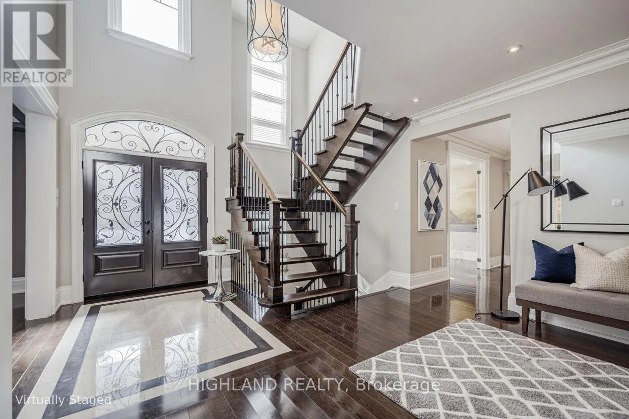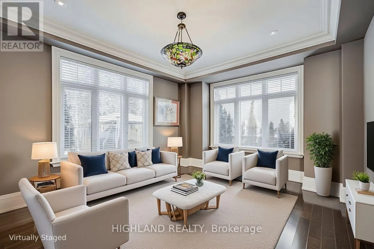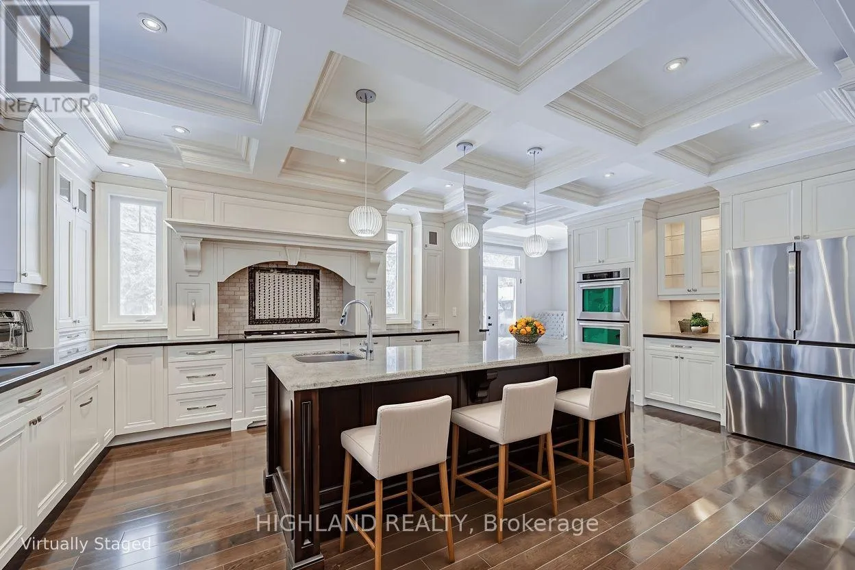 Lakeshore Road W & Third Line STEPS TO LAKE * Distinguished custom-built two-storey residence offering over 5,000 sq. ft. of luxurious living space (approx. 3,700 sq. ft. above grade plus professionally finished lower level) in one of Bronte East's most sought-after enclaves. Grand double-door entry opens to a dramatic two-storey foyer with soaring 20-ft ceilings, open gallery overlook, and striking floating hardwood staircase with wrought-iron railings. Elegant open-concept main level showcases hardwood floors, custom millwork, vaulted and recessed ceilings, French doors, and oversized windows that flood the home with natural light. Impressive family room features a 14-ft vaulted ceiling and floor-to-ceiling fireplace, creating a sophisticated focal point. Gourmet chef's kitchen offers custom cabinetry, premium built-in appliances, and an expansive centre island-perfect for both daily living and entertaining. Upper level hosts 4 spacious bedrooms, including a serene primary retreat overlooking mature gardens with a spa-inspired 5-pc ensuite featuring glass shower and jetted tub. Two bedrooms feature graceful vaulted ceilings. Professionally finished lower level extends living space with rec room, theatre or 5th bedroom, home office, above-grade windows, and 3-pc bath-ideal for guests or multi-generational living. Beautifully landscaped backyard oasis with gazebo and lush greenery provides privacy and tranquility. Dual laundry (main + upper). Exceptional craftsmanship, abundant natural light, and timeless design throughout. (id:27476)