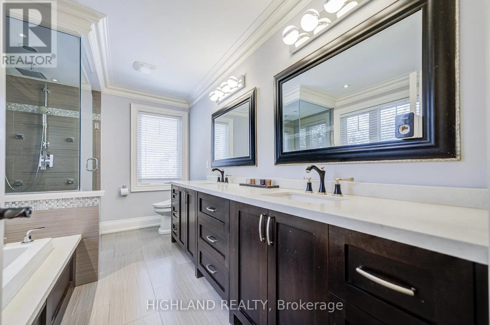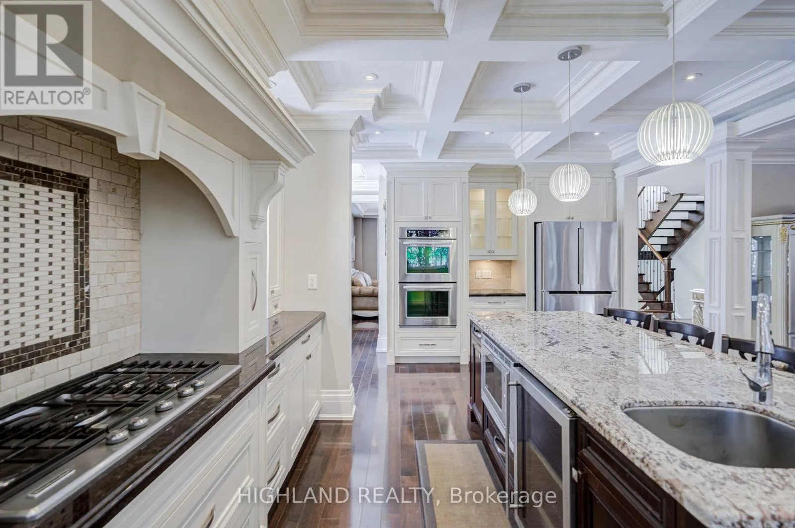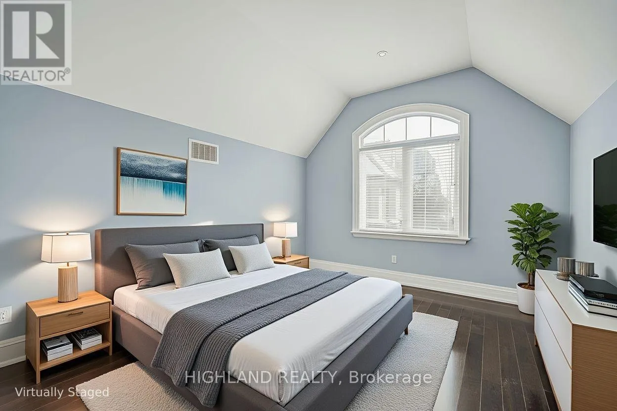 Lakeshore Road W & Third Line STEPS TO LAKE * Distinguished custom-built two-storey residence offering over 5,000 sq. ft. of luxurious living space (approx. 3,700 sq. ft. above grade plus professionally finished lower level) in one of Bronte East's most sought-after enclaves. Grand double-door entry opens to a dramatic two-storey foyer with soaring 20-ft ceilings, open gallery overlook, and striking floating hardwood staircase with wrought-iron railings. Elegant open-concept main level showcases hardwood floors, custom millwork, vaulted and recessed ceilings, French doors, and oversized windows that flood the home with natural light. Impressive family room features a 14-ft vaulted ceiling and floor-to-ceiling fireplace, creating a sophisticated focal point. Gourmet chef's kitchen offers custom cabinetry, premium built-in appliances, and an expansive centre island-perfect for both daily living and entertaining. Upper level hosts 4 spacious bedrooms, including a serene primary retreat overlooking mature gardens with a spa-inspired 5-pc ensuite featuring glass shower and jetted tub. Two bedrooms feature graceful vaulted ceilings. Professionally finished lower level extends living space with rec room, theatre or 5th bedroom, home office, above-grade windows, and 3-pc bath-ideal for guests or multi-generational living. Beautifully landscaped backyard oasis with gazebo and lush greenery provides privacy and tranquility. Dual laundry (main + upper). Exceptional craftsmanship, abundant natural light, and timeless design throughout. (id:27476)