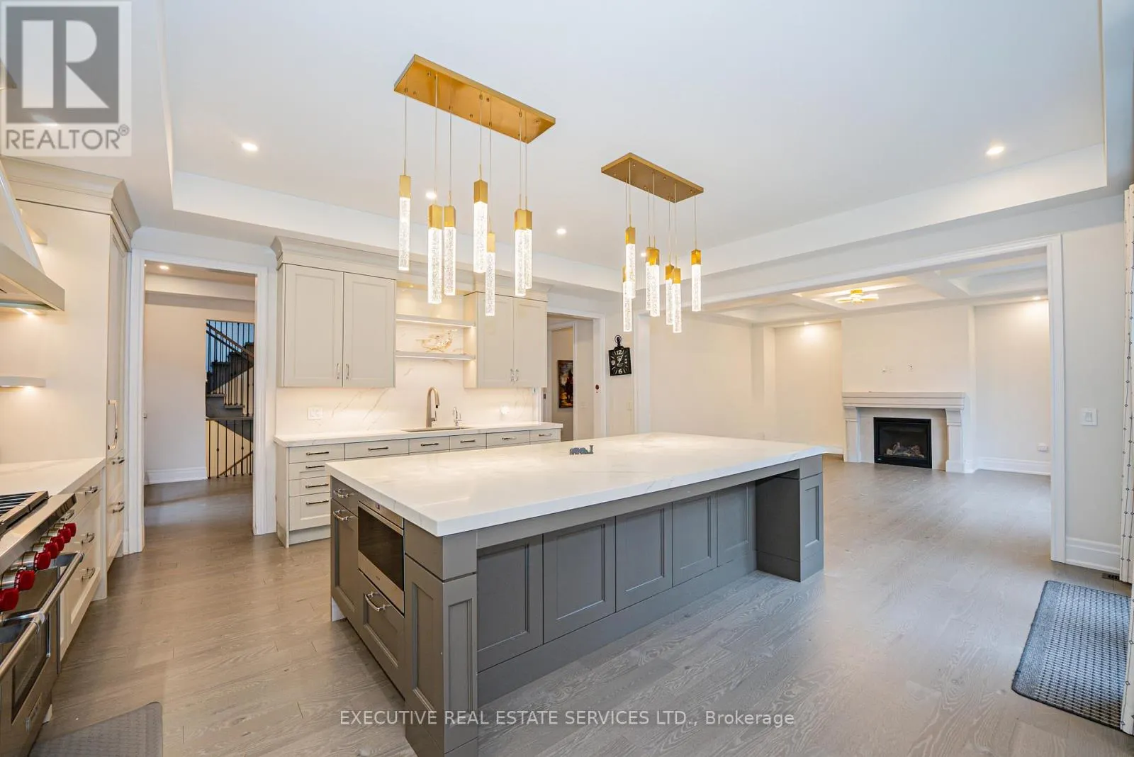 Bronte Rd/Charles Cornwall Ave Welcome to an exceptional luxury residence in the prestigious Glen Abbey community, offering approximately 5,500+ sq. ft. of refined living space as per builder's plans. Thoughtfully designed for both comfort and sophistication, this stunning home features 4+1 bedrooms and 6 bathrooms, with every bedroom enjoying its own private ensuite. Rich hardwood flooring flows throughout the home-no carpet-enhancing its timeless elegance. The main level is an entertainer's dream, highlighted by a grand foyer, formal living room, elegant dining area, and powder room. The inviting family room showcases coffered ceilings and a gas fireplace, seamlessly connecting to one of the largest gourmet kitchens in the neighbourhood. The chef-inspired kitchen is equipped with premium appliances, built-in cabinetry, a statement centre island, quartz countertops, custom cabinetry, and a striking quartz backsplash. A sun-filled breakfast area opens to a beautifully landscaped, fully fenced backyard, perfect for indoor-outdoor living. Upstairs, the lavish primary retreat features a double-door entry, walk-in closet, and a spa-inspired 5-piece ensuite complete with a glass shower and luxurious soaker tub. The professionally finished basement extends the living space with an additional bedroom, Jacuzzi, expansive recreation area, and a games room with a snooker table-ideal for entertaining and family enjoyment. Ideally located minutes from top-rated schools, major highways, Oakville Trafalgar Memorial Hospital, Glen Abbey Community Centre, library, shopping, parks, downtown Oakville, and the lake, this residence offers unparalleled convenience in one of Oakville's most sought-after neighbourhoods. A rare opportunity to own a move-in-ready luxury home in an elite setting experience elevated living at its finest. (id:27476)