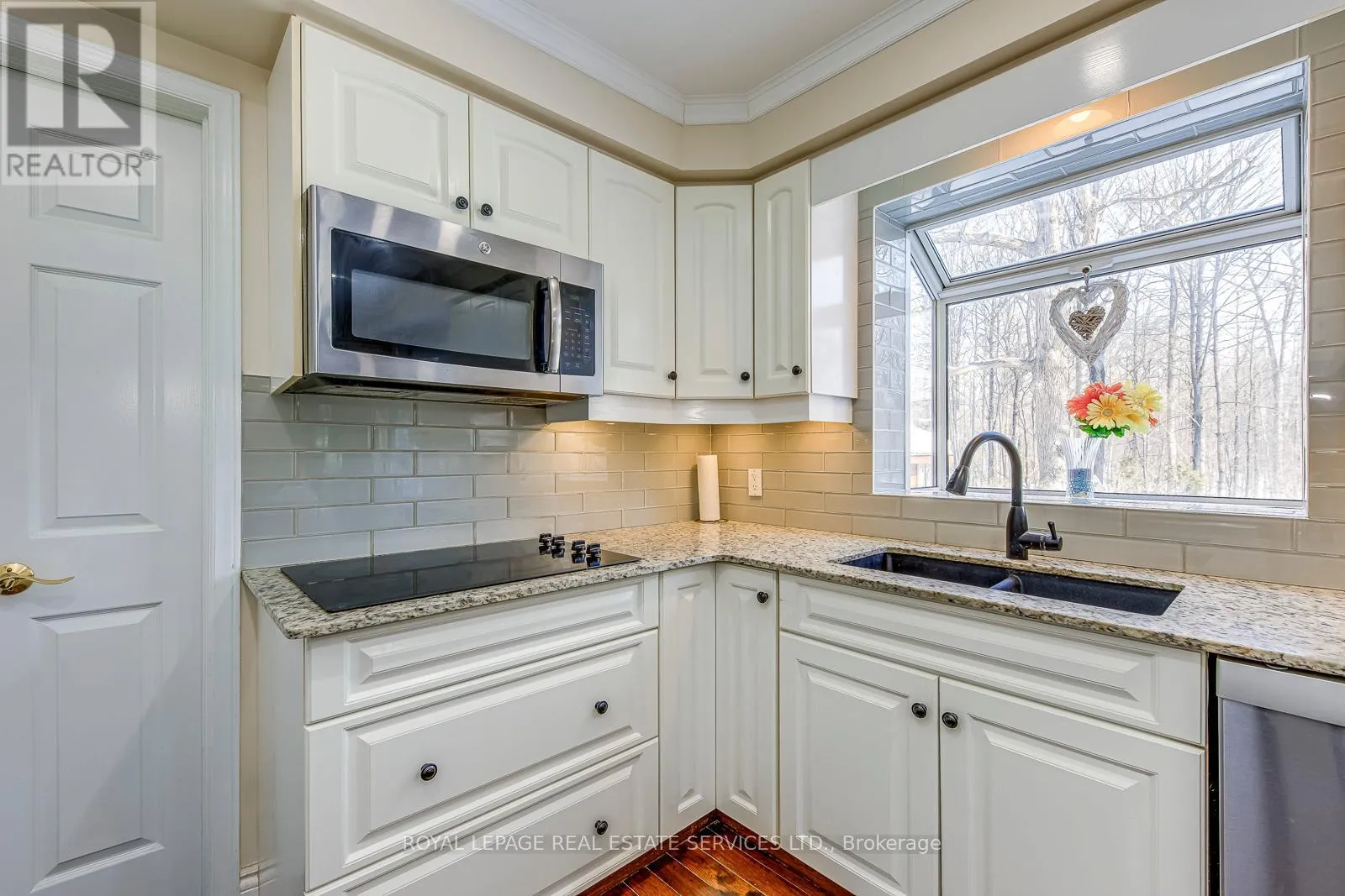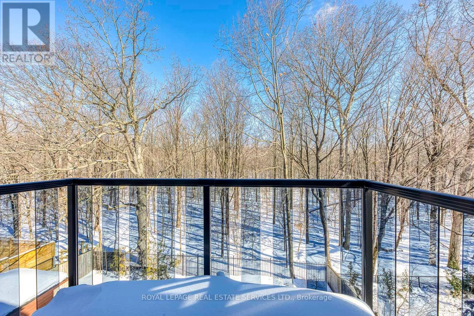 Cross Streets: Grand and Upper Middle. ** Directions: South Of Upper Middle. True ravine lot with a dense forest backdrop, offering exceptional privacy for those who value lush natural surroundings. This impressive home features a unique third-level primary retreat with a sitting area, romantic balcony, spa-like ensuite, and double walk-in closets. The second level offers four spacious bedrooms and two full bathrooms. The main floor showcases a bright white kitchen with built-in appliances, and elegant living spaces. Two gas fireplaces .A finished basement adds versatility. Enjoy outdoor living with a walk-in inground saltwater pool and spa. Ideally located within walking distance to schools and scenic nature trails. (id:27476)