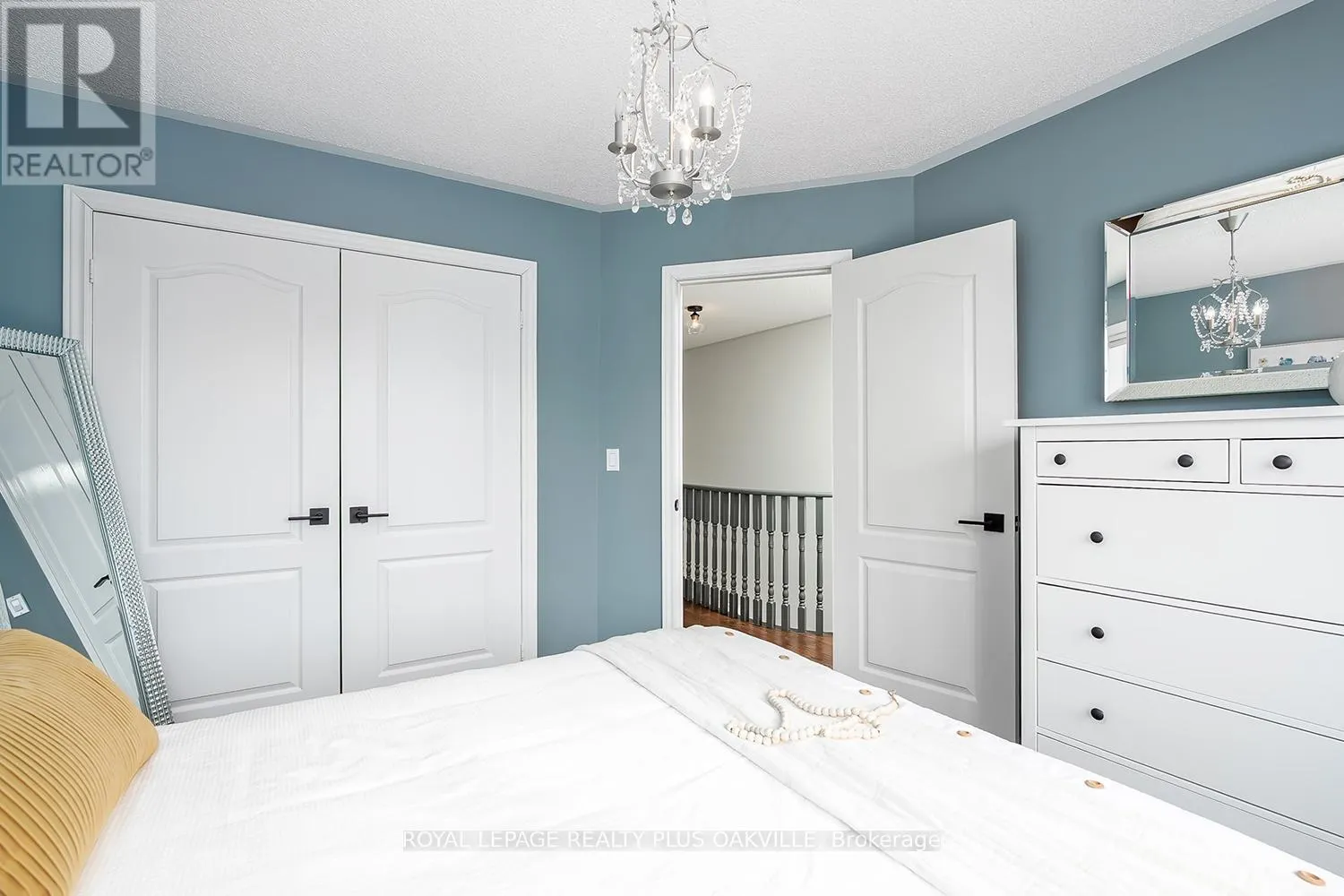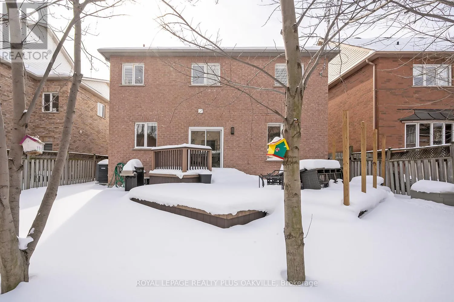 Bronte Rd & Upper Middle Rd W Beautifully upgraded two-storey detached home in the highly sought-after, family-friendly West Oak Trails community. Thoughtfully renovated and filled with natural light, this home offers the perfect blend of style, comfort, and functionality.Curb appeal shines with professionally installed interlock stonework and modern LED pot lights guiding you to the front entrance. Inside, enjoy 9-foot ceilings, upgraded hardwood floors, premium paint, extra-wide crown moulding, and stylish lighting throughout the main level. The open-concept layout is ideal for everyday living and entertaining.The heart of the home is the modern kitchen (2021) featuring quartz countertops and backsplash, top-of-the-line stainless steel appliances, and a bright breakfast area with a walkout to an impressive two-level Trex deck-a low-maintenance outdoor space perfect for hosting or relaxing. The main floor also includes a cozy gas fireplace, upgraded powder room, convenient laundry with new washer and dryer, and custom Hunter Douglas roller shades.Upstairs, you'll find four spacious and sun-filled bedrooms, including a luxurious primary retreat with a spa-inspired 5-piece ensuite offering heated floors, a standalone soaker tub, walk-in glass shower, and upgraded double vanity.The basement provides excellent future potential with a rough-in for a full bathroom and an extra-large cold room. Additional features include owned furnace and air conditioner, central vacuum, interlock stone in both the front and backyard, and exceptional backyard privacy during the spring, summer, and fall.Ideally located close to top-rated schools, parks, public transit, major highways, and the new hospital, this move-in-ready home delivers elegance, comfort, and convenience in one of Oakville's most desirable neighbourhoods. (id:27476)
