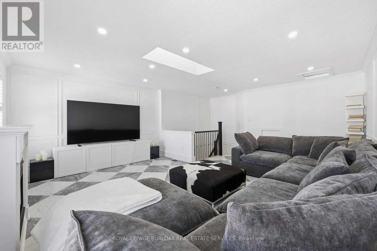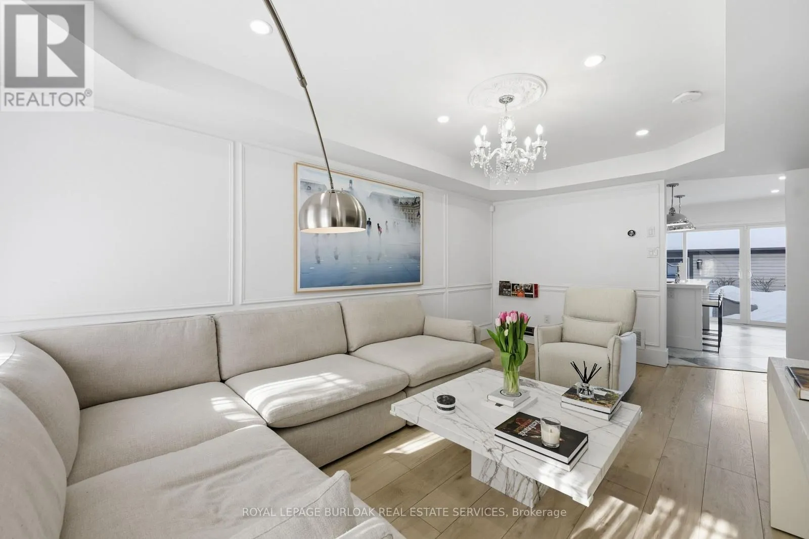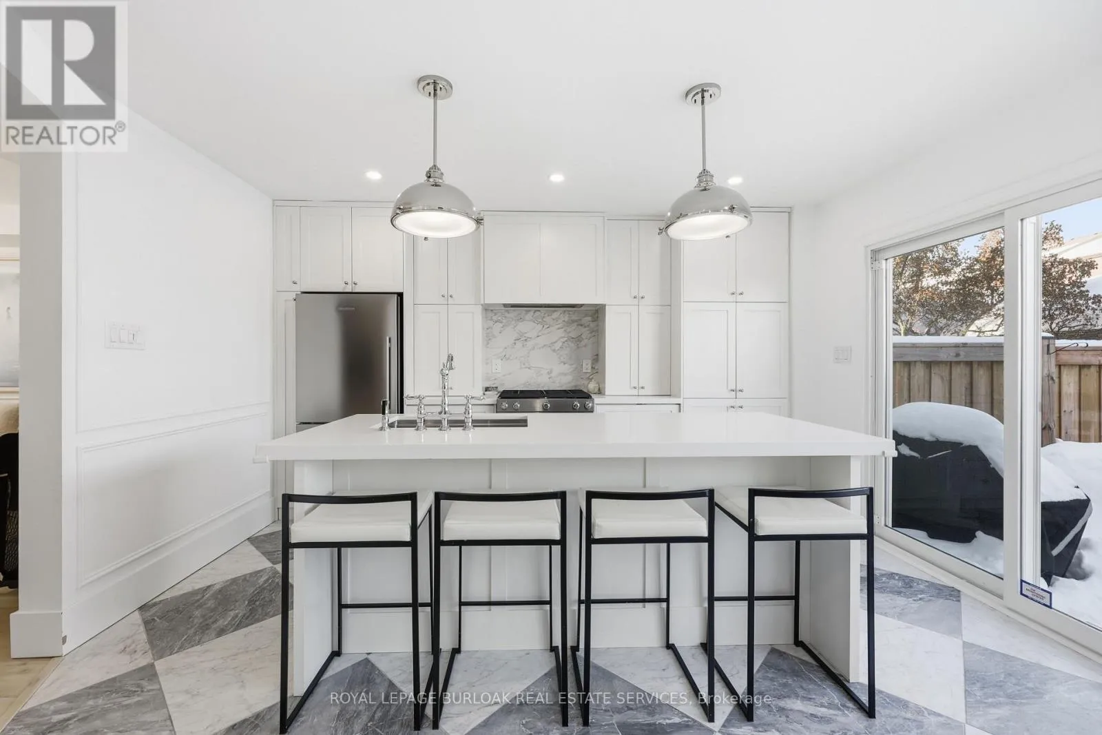 Cross Streets: Glenashton Dr. ** Directions: From Trafalgar Road, head west on Glenashton Drive. Turn north onto Windfield Terrace, then turn left onto Gatwick Drive. No stone has been left unturned in this impeccably renovated, move-in ready semi-detached home offering 3 bedrooms and 2.5 bathrooms, combining refined finishes, extensive upgrades, and a prime Oakville location. Every detail has been carefully curated, including entirely new flooring and baseboards, smooth ceilings on the main level, brand-new staircases throughout, and a fully renovated basement with built-in storage, with cohesive character across all levels. The chef-inspired kitchen has been beautifully updated with quartz countertops, a centre island with sink and breakfast bar, checkered ceramic tile flooring, and all new appliances, flowing seamlessly into an inviting eat-in area ideal for everyday family meals. The living room features an elegant coffered ceiling, while the third-floor loft offers exceptional versatility as a family room, playroom, office, or loft-style bedroom, complete with cove moulding, a gas fireplace, and skylight. All bathrooms have been luxuriously renovated with Carrara marble, and the home is enhanced with a smart home system, alarm system with additional motion detectors, an updated hot water heater, and washer and dryer, providing both comfort and peace of mind. Step outside your sliding patio doors to a private, professionally landscaped backyard courtyard designed for family BBQs and entertaining, featuring interlocking, hydrangeas trees, and new fencing on both sides completed in 2022 and 2025. The front yard is equally impressive with interlocking and a professionally painted porch, offering exceptional curb appeal. A two-car garage with a new garage door installed in 2025 and laneway access completes the package. Ideally located in the heart of Oak Park, just steps to shopping, dining, parks, and elementary and high schools. This is turnkey family living at its finest in a one-of-a-kind home! (id:27476)