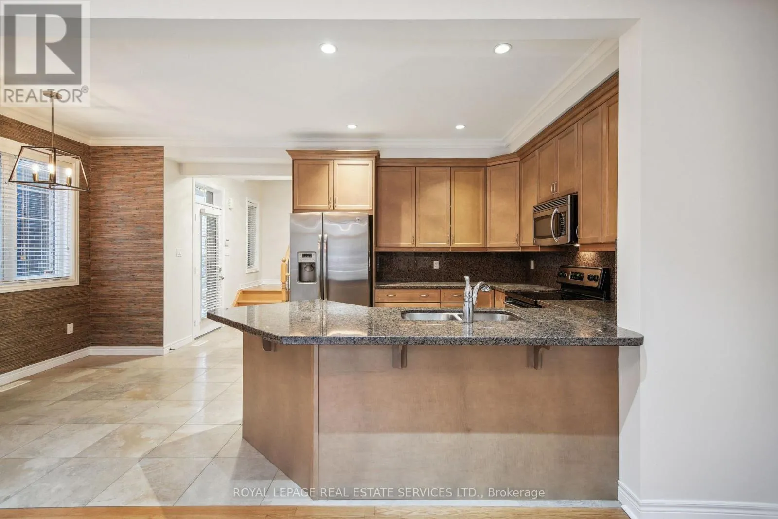 Cross Streets: Third Line/Dundas St. W. ** Directions: Third Line/Pine Glen/Whistling Springs. This beautiful end unit townhouse in Westmount is sure to please. 3 bedrooms, 4 washrooms, bright and spacious open concept layout. Features include double car garage with inside entry, eat in kitchen with granite counter tops, backsplash and breakfast bar. The family room boasts gas fireplace and walk out to private backyard with deck. This home has hardwood floors, laminate and crown molding throughout, carpet free. 4 bedrooms, converted into 3 bedrooms, with one oversize bedroom and could be used as a second family room. Large primary bedroom with walk in closet and spa like en-suite. Fully finished basement with laundry room, 3-piece washroom and rec room with wet bar. Great location near shopping, indoor soccer arena, hospital and much more. Say YES to the address! (id:27476)