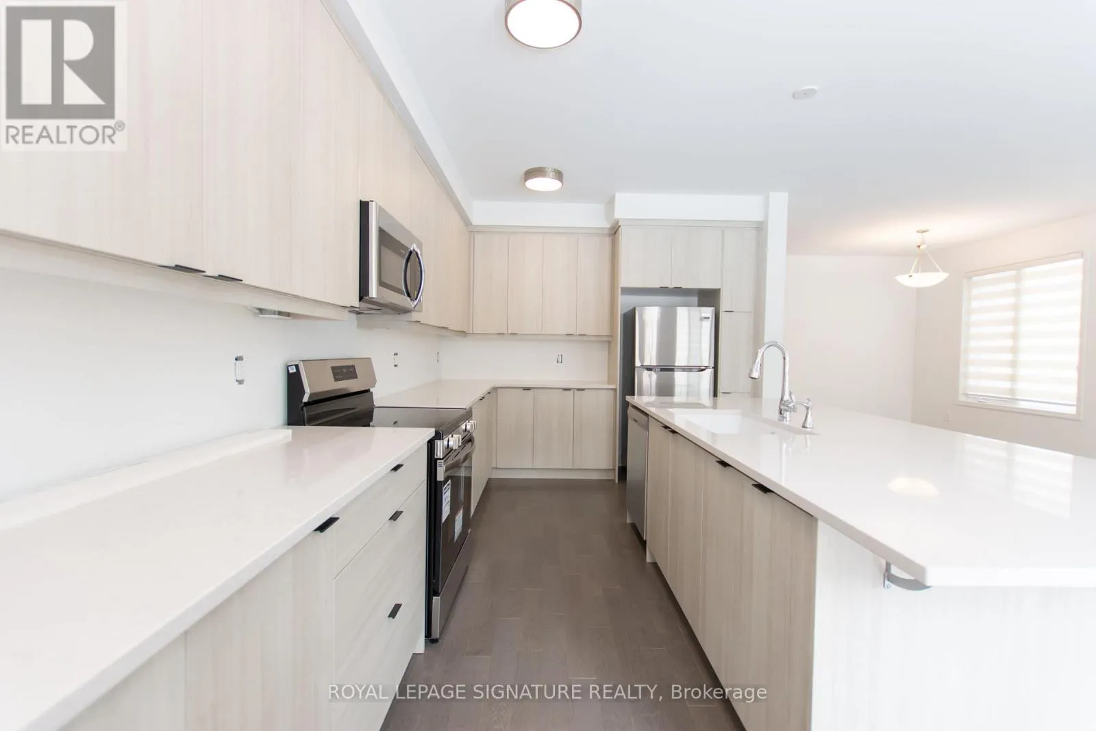 Dundas & Meadowridge Welcome to one of the largest townhomes built by Mattamy Homes in Joshua Creek, offering 2,316 sq. ft. above ground. This bright and spacious 4-bedroom end-unit features a generous primary suite complete with a 4-piece ensuite and a large walk-in closet. Enjoy 9-ft ceilings on both the main and second levels, hardwood flooring throughout, and abundant natural light from numerous large windows. The home also offers a second 4-piece bathroom, convenient second-floor laundry, an elegant electric fireplace, and an upgraded kitchen with granite countertops, stainless steel appliances, ample cabinetry, and a dedicated service area. Includes one year of free internet. Ideally located close to shopping, schools, and many other amenities. (id:27476)