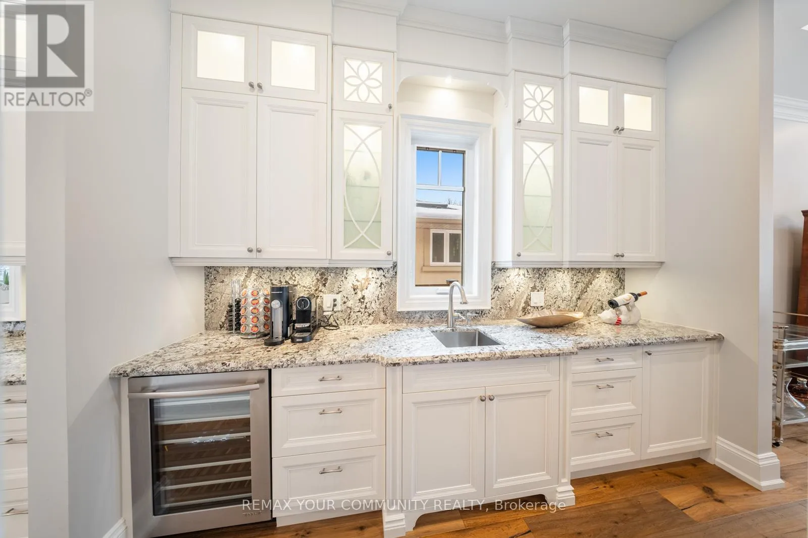 LAKESHORE/WESTMINSTER/WARLAND Welcome to 1551 Warland Rd, a stunning custom-built bungaloft in the heart of highly sought-after South Oakville. Nestled just a 5-minute walk from Coronation Park and the serene shores of Lake Ontario, this exceptional residence offers over 5,700 square feet of meticulously finished living space, blending luxury, comfort, and modern convenience. Step inside to discover an inviting main floor where primary rooms exude elegance with coffered ceilings, expansive picture windows flooding the space with natural light, and rich hardwood flooring. The gourmet kitchen is a chefs dream, featuring top-of-the-line JennAir appliances, including dual dishwashers, a gas stove with a custom hoodfan, side-by-side fridge, built-in oven, and microwave. A butlers pantry and servery seamlessly connect the kitchen to the dining room, perfect for effortless entertaining. The bathrooms elevate luxury with quartz countertops, undermount sinks, sleek glass shower enclosures, and heated flooring for year-round comfort. The primary suite, conveniently located on the main level, offers a tranquil retreat with sophisticated finishes and ample space. Downstairs, the lower level impresses with a custom wet bar and wine room, ideal for hosting guests, alongside a dedicated exercise room for your wellness needs. Every detail has been thoughtfully designed to enhance your lifestyle. Step outside to the backyard oasis, where an outdoor patio steals the show with a custom pizza oven, built-in barbecue, and a covered area featuring a cozy fireplace perfect for al fresco dining or relaxing evenings under the stars. Located in one of Oakville's most desirable neighborhoods, this bungaloft combines timeless craftsmanship with modern amenities, all just steps from parks, lakefront trails, and the vibrant South Oakville community. (id:27476)