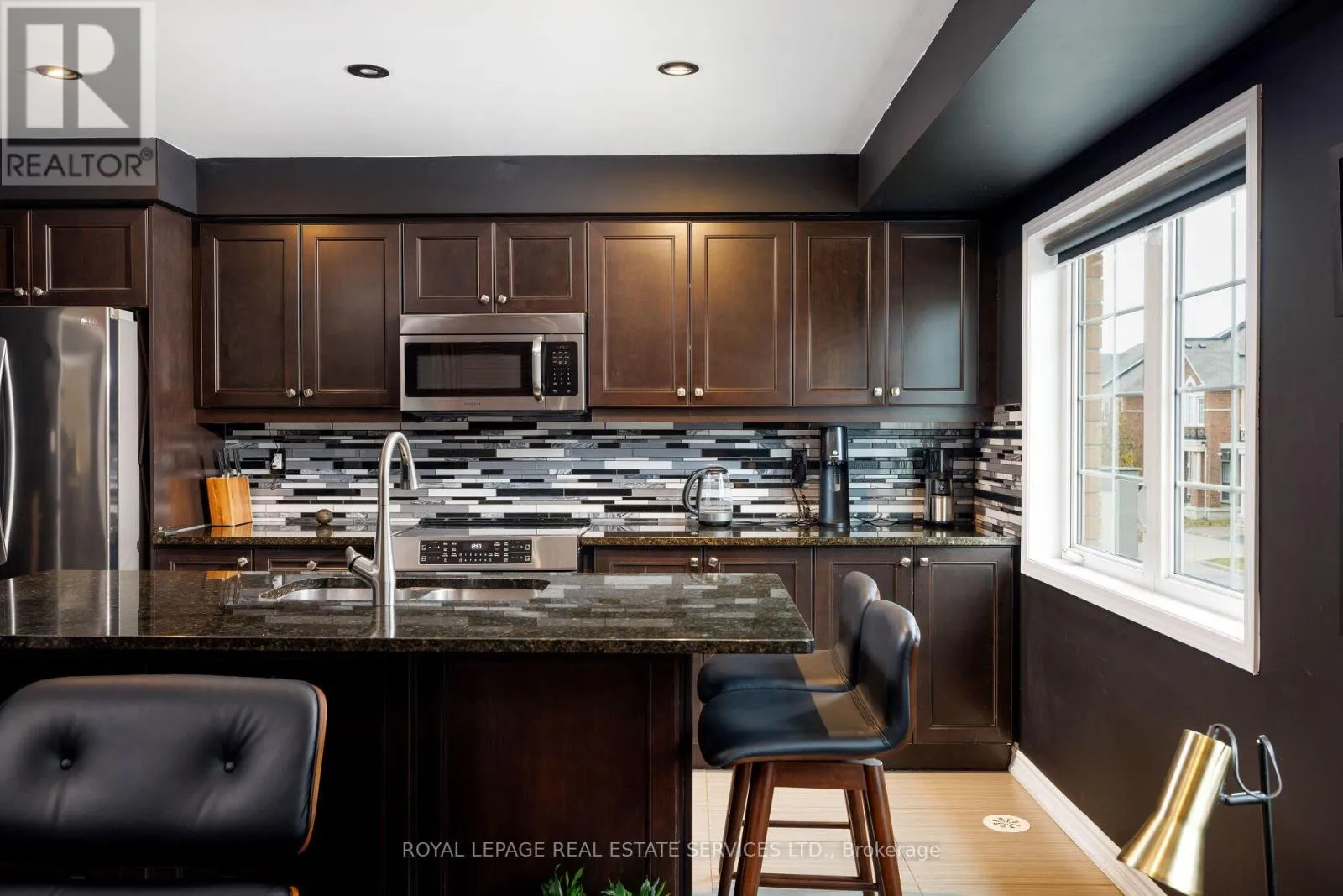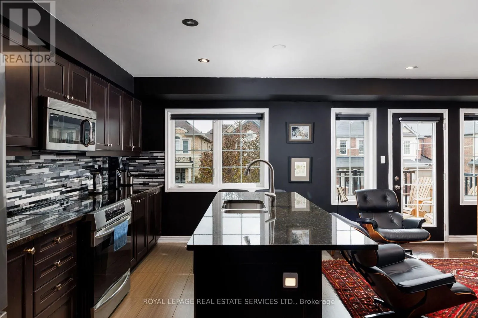 Cross Streets: Sarah Cline & Preserve. ** Directions: Dundas- Preserve- Sarah Cline. Dramatic luxury awaits in Oakville's highly sought-after Preserve community. Freshly painted in neutral colours, this immaculate Mattamy-built 3-bedroom, 2.5-bathroom end-unit townhome with approximately 1,541 sq. ft. delivers contemporary elegance with upscale finishes at every turn. A brilliant blend of materials creates distinctive flair and exceptional comfort-fresh designer paint colours highlight crisp white trims, wood-slat accent walls introduce warmth and texture, and beautiful hardwood floors, designer tile selections, and a solid oak staircase with iron pickets establish a refined foundation. The flexible main floor is bright and inviting, enhanced by pot lights, stylish light fixtures, large windows, and a walkout to the deck. The living room and dining room can be arranged interchangeably to suit your lifestyle. The upgraded kitchen stands out with dark shaker-style cabinetry, granite counters, an elongated mosaic tile backsplash, a functional island with a wraparound breakfast bar, pot lights, and quality stainless steel appliances. This level also includes a chic powder room and a convenient laundry room. Upstairs, three sunlit bedrooms and two full bathrooms provide comfort for the whole family. One bedroom boasts a dramatic cathedral ceiling, while the spacious primary suite offers a private 4-piece ensuite with dark cabinetry and a relaxing soaker tub/shower combination. The ground level features an inviting foyer with a double mirrored closet, stone-look tiles, and inside access to the attached single garage with epoxy flooring-adding both durability and style. Close to the Oakville Hospital, schools, Fortino's, restaurants, the Uptown Core, and highways for commuters. Credit check & references. Prefer no pets & no smokers. (id:27476)